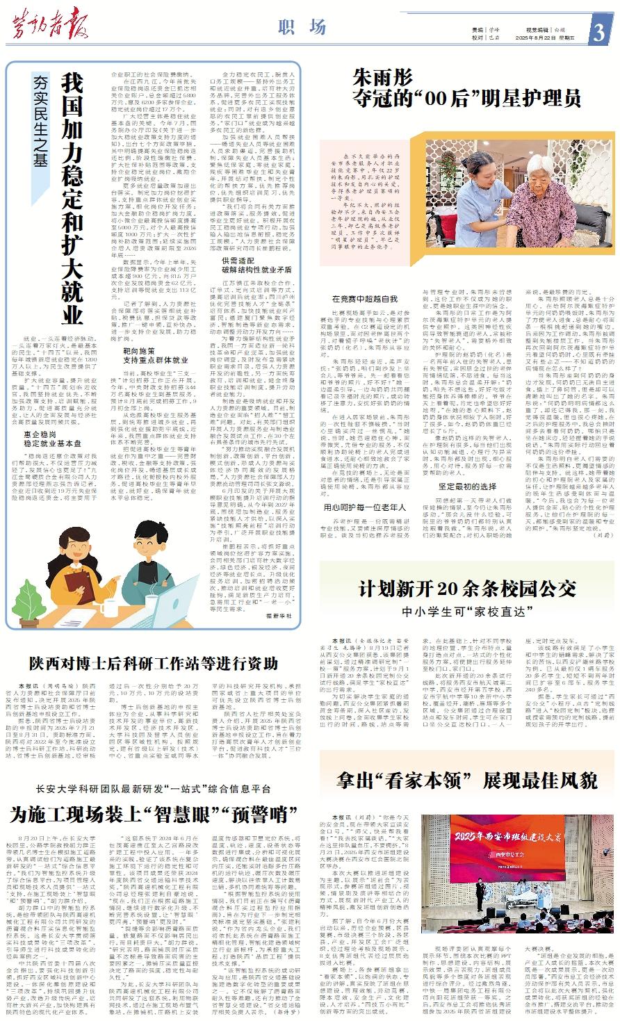 就业,一头连着经济脉动,一头连着万家灯火,是最基本的民生。“十四五”以来,我国每年城镇新增就业稳定在1200万人以上,为民生改善提供了基础支撑。 扩大就业容量,提升就业质量。“十四五”规划临近收官,我国坚持就业优先,不断加强政策支持、培训赋能、服务助力,促进高质量充分就业,让人的全面发展与经济社会高质量发展同频共振。 惠企稳岗 稳定就业基本盘 “稳岗返还惠企政策对我们帮助很大,不仅运营压力减轻了,发展信心也更足了!”九江金鹭硬质合金有限公司人力资源部经理燕志强告诉记者,企业近日收到近19万元失业保险稳岗返还资金,将主要用于企业职工的社会保险费缴纳。 在江西九江,今年首批失业保险稳岗返还资金已抵达相关企业账户,总金额超过5800万元,惠及6200多家参保企业,稳定就业岗位超过17万个。 广大经营主体是稳住就业基本盘的关键。今年7月,国务院办公厅印发《关于进一步加大稳就业政策支持力度的通知》,出台七个方面政策举措,其中明确提高失业保险稳岗返还比例、阶段性缓缴社保费、扩大社保补贴范围等政策,支持企业稳定就业岗位,激励企业扩岗吸纳就业。 更多就业增量政策加速出台落实。制定加力岗位挖潜扩容、支持重点群体就业创业实施方案,细化岗位开发任务;加大金融助企稳岗扩岗力度,将小微企业最高授信额度提高至5000万元,对个人最高授信额度1000万元;扩大一次性扩岗补助政策范围;延续实施国企增人增资政策期限至2026年底…… 数据显示,今年上半年,失业保险降费率为企业减少用工成本超900亿元,向81.5万户次企业发放稳岗资金62亿元,支持培训等促就业支出113亿元。 记者了解到,人力资源社会保障部将落实落细就业补贴、税费优惠、担保贷款等政策,推广一键申领、直补快办,进一步支持企业发展,助力稳岗扩岗。 靶向施策 支持重点群体就业 当前,高校毕业生“三支一扶”计划招募工作正在开展。今年,中央财政支持招募3.44万名高校毕业生到基层服务。预计8月底前完成招募工作,9月初全部上岗。 从选派高校毕业生服务基层,到统筹推进城乡就业,再到强化就业援助兜牢底线,近年来,我国重点群体就业支持体系不断完善。 把促进高校毕业生等青年就业作为重中之重——完善财政、税收、金融等支持政策,强化岗位开发,畅通基层成长成才路径,优化衔接校内校外服务,促进高校毕业生等青年早就业、就好业,确保青年就业水平总体稳定。 全力稳定农民工、脱贫人口务工规模——坚持外出务工和就近就业并重,培育壮大劳务品牌,完善外出务工服务体系,促进更多农民工实现技能就业;同时,对有返乡创业意愿的农民工靠前提供创业服务,“家门口”就业成为越来越多农民工的新选择。 加强就业困难人员帮扶——畅通失业人员等就业困难人员求助渠道,完善援助机制,保障失业人员基本生活;聚焦低保家庭、零就业家庭、残疾等困难毕业生和失业青年,开展结对帮扶,制定个性化的帮扶方案,优先推荐岗位、优先组织培训见习、优先提供职业指导。 “我们将会同有关方面推进政策落实、服务提效,促进毕业生更好就业。积极开展农民工稳岗就业专项行动,加强输入输出地信息衔接,稳定务工规模。”人力资源社会保障部政策研究司司长崔鹏程说。 供需适配 破解结构性就业矛盾 江苏镇江采取校企合作、订单式、定向式培训等方式,提高培训后就业率;四川泸州优化完善技能人才“全链条”培育体系,加快技能就业兴产富民;福建厦门聚焦数字经济、智能制造等新业态需求,动态调整劳动力开发方向…… 为着力缓解结构性就业矛盾,我国一方面适应新一轮科技革命和产业变革,加强就业岗位调查,及时发布急需紧缺职业需求目录,增强人力资源开发的前瞻性,另一方面统筹教育、培训和就业,健全终身职业技能培训制度,提升劳动者就业能力。 制造业是吸纳就业和开发人力资源的重要领域。目前,制造业企业面临“招人难”“留工难”问题。对此,有关部门组织开展人力资源服务业与制造业融合发展试点工作,在30个左右具备条件的城市先行先试。 “努力推动实现融合发展机制创新、政策创新、平台创新、模式创新,形成人力资源与实体经济协同高效的发展格局。”人力资源社会保障部人力资源流动管理司司长张文淼说。 6月印发的关于开展大规模职业技能提升培训行动的指导意见明确,从今年到2027年底,围绕增加制造业、服务业紧缺技能人才供给,以深入实施“技能照亮前程”培训行动为牵引,广泛开展职业技能提升培训。 崔鹏程表示,将抓好重点领域岗位挖潜扩容方案实施,会同相关部门培育壮大数字经济、绿色经济、银发经济、夜间经济等就业增长点。升级优化服务培训,加密招聘活动频次,推动培训和就业增收更好挂钩,满足新质生产力培育、急需用工行业和“一老一小”等民生需求。 据新华社
