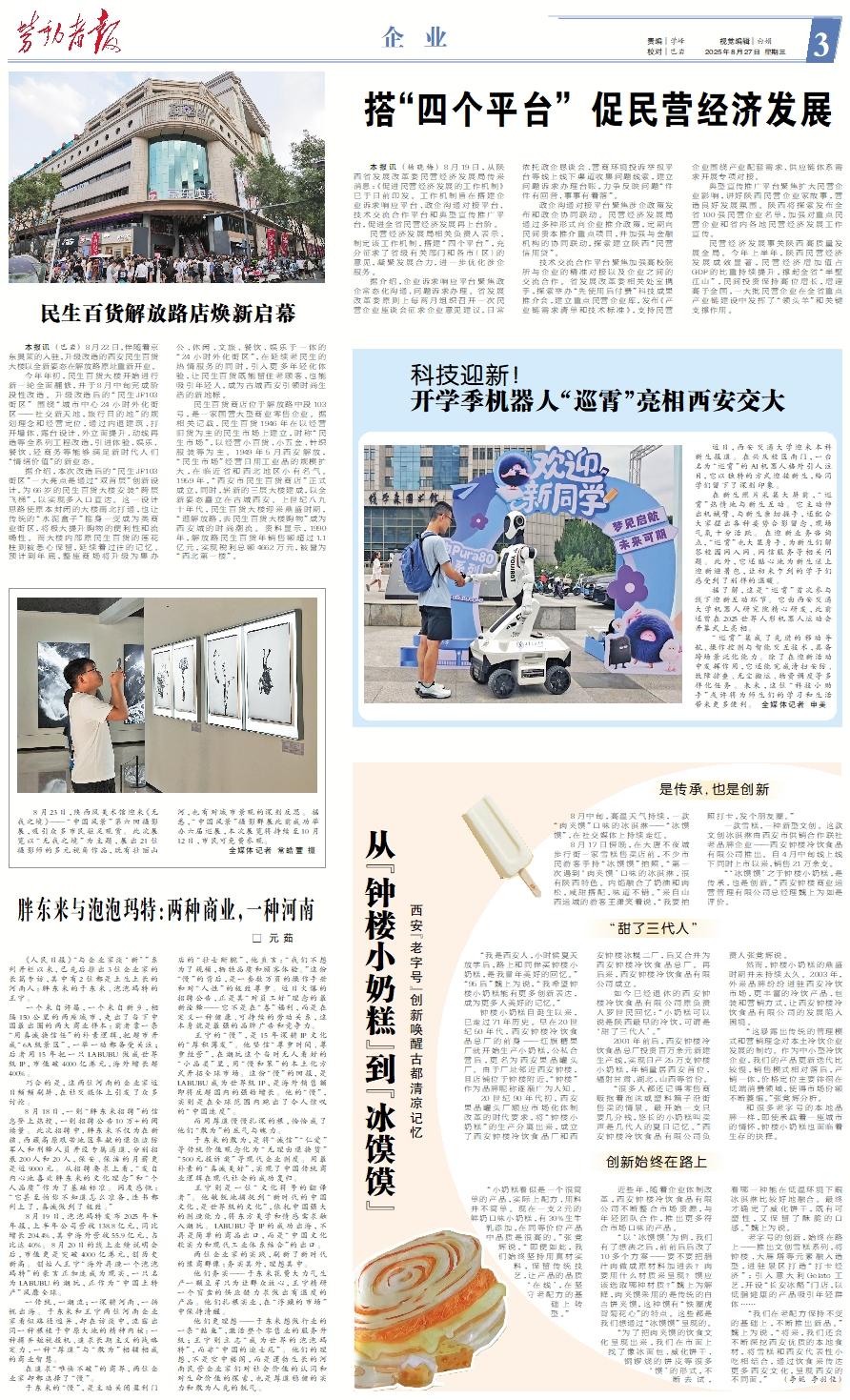 本报讯 (巴岩) 8月22日,伴随着京东奥莱的入驻,升级改造的西安民生百货大楼以全新姿态在解放路原址重新开业。 今年年初,民生百货大楼开始进行新一轮全面翻修,并于8月中旬完成阶段性改造。升级改造后的“民生JF103街区” 围绕“城市中心24小时外化街区——社交新天地,旅行目的地”的规划理念和经营定位,通过内退建筑、打开墙体、露台设计、外立面提升、动线再造等全系列工程改造,引进体验、娱乐、餐饮、轻商务等能够满足新时代人们“情绪价值”的新业态。 据介绍,本次改造后的“民生JF103街区”一大亮点是通过“双首层”创新设计,为66岁的民生百货大楼安装“跨层飞梯”,以实现多入口直达。这一设计思路使原本封闭的大楼南北打通,也让传统的“水泥盒子”摇身一变成为类商业街区,将极大提升购物的便利性和流畅性。而大楼内部原民生百货的莲花柱则被悉心保留,延续着过往的记忆。预计到年底,整座商场将升级为集办公、休闲、文旅、餐饮、娱乐于一体的“24小时外化街区”,在延续老民生的热情服务的同时,引入更多年轻化体验,让民生百货既能留住老顾客,也能吸引年轻人,成为古城西安引领时尚生活的新地标。 民生百货商店位于解放路中段103号,是一家国营大型商业零售企业。据相关记载,民生百货1946年在以经营旧货为主的民生市场上建立,时称“民生市场”,以经营小百货、小五金、针织服装等为主。1949年5月西安解放,“民生市场”经营日用工业品的规模扩大,在临近省和西北地区小有名气。1959年,“西安市民生百货商店”正式成立,同时,崭新的三层大楼建成,以全新姿态矗立在古城西安。上世纪八九十年代,民生百货大楼迎来鼎盛时期,“逛解放路,去民生百货大楼购物”成为西安城的时尚潮流。资料显示,1990年,解放路民生百货年销售额超过1.1亿元,实现税利总额4662万元,被誉为“西北第一楼”。