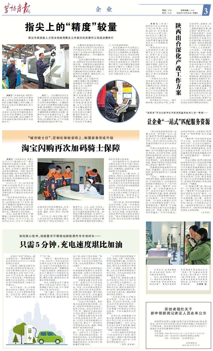 根据国家新闻出版署《新闻记者证管理办法》和有关规定,我单位对符合新闻记者证申领的采编人员资格进行了严格审核。现将拟申领新闻记者证人员名单公示如下,接受社会各界监督和群众举报。 陈永斌 公示时间:2025年10月21日—10月30日(共10天) 举报电话:029—85223101(陕西省新闻出版局) 029—87280208 (劳动者报社) 劳动者报社 2025年10月21日