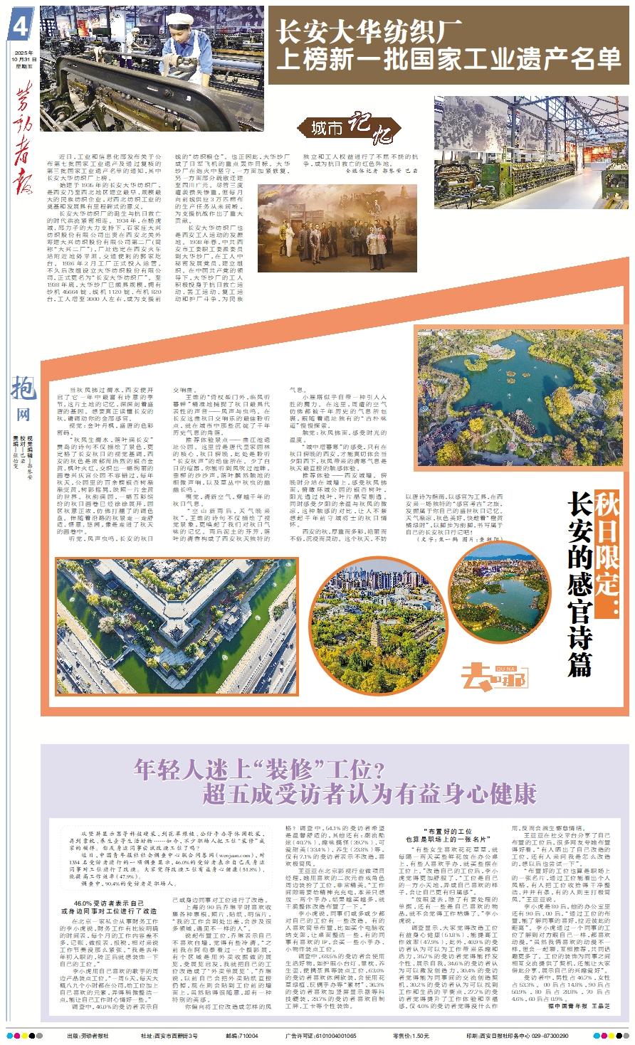 从竖屏显示器等科技硬装,到花草绿植、公仔手办等休闲软装,再到靠枕、养生壶等生活好物……如今,不少职场人把工位“装修”成家的模样。你或身边同事尝试改造工位了吗? 近日,中国青年报社社会调查中心联合问卷网(wenjuan.com),对1334名受访者进行的一项调查显示,46.0%的受访者表示自己或身边同事对工位进行了改造。大家觉得改造工位有益身心健康(51.8%)、能提高工作效率(47.9%)。 调查中,90.4%的受访者是职场人。46.0%受访者表示自己或身边同事对工位进行了改造 在北京一家私企从事财务工作的李小虎说,财务工作有比较明确的时间表,每个月的工作内容差不多,记账、做报表、报税,相对来说工作节奏没那么紧张。“我是去年年初入职的,转正后就想装饰一下自己的工位。” 李小虎用自己喜欢的歌手的周边产品装点工位。“一周5天,每天大概八九个小时都在公司,给工位加上自己喜欢的元素,弄得稍微整洁一点,能让自己工作时心情好一些。” 调查中,46.0%的受访者表示自己或身边同事对工位进行了改造。 上海的90后乔琳平时喜欢收集各种票根、照片、贴纸、明信片,“我的工作会到处出差,会涉及很多领域,遇见不一样的人”。 说起布置工位,乔琳表示自己不喜欢白墙,觉得有些冷清。“之前我在阿勒泰看过一个摄影展,有个区域是用外卖收据做的展览,受展览启发,我就把自己的工位改造成了‘外卖单展览’。”乔琳说,以前自己会把外卖贴纸直接扔掉,现在则会贴到工位前的墙面上,虽然贴得很随意,却有一种特别的美感。 你偏向将工位改造成怎样的风格?调查中,54.1%的受访者希望是温馨舒适的,其他还有:潮流酷炫(40.7%)、趣味搞怪(39.7%)、可爱甜美(33.4%)、养生(23.8%)等,仅有7.1%的受访者表示不改造,喜欢极简风。 王亚亚在北京影视行业做项目经理,她用喜欢的二次元游戏角色周边装扮了工位,非常精美。“工作间隙需要给精神充充电,本来只想放一两个手办,结果越买越多,就干脆整体改造布置了一下。” 李小虎说,同事们或多或少都对自己的工位有一些改造。有的人喜欢简单布置,比如买个电脑收纳支架,让桌面整洁一些,有的同事有喜欢的IP,会买一些小手办、小物件装点工位。 调查中,68.5%的受访者会使用生活好物,如护眼小台灯、靠枕、养生壶、便携茶具等装点工位,63.0%的受访者喜欢休闲软装,会使用花草绿植、玩偶手办等“素材”,36.3%的受访者喜欢加竖屏显示器等科技硬装,29.7%的受访者喜欢自制工牌、工卡等个性装饰。“布置好的工位也算是职场上的一张名片” “有些女生喜欢花花草草,就每隔一两天买些鲜花放在办公桌上,有些人喜欢手办,就买些摆在工位上。”改造自己的工位后,李小虎觉得更加舒服了,“工位是自己的一方小天地,弄成自己喜欢的样子,会让自己更有归属感”。 “放眼望去,除了有要处理的单据,还有一些是自己喜欢的物品,就不会觉得工作枯燥了。”李小虎说。 调查显示,大家觉得改造工位有益身心健康(51.8%)、能提高工作效率(47.9%),此外,40.9%的受访者认为可以为工作带来乐趣和活力,35.7%的受访者觉得能抒发个性、展示自我,34.6%的受访者认为可以激发创造力,30.4%的受访者觉得能为同事间的交流创造契机,30.2%的受访者认为可以找到工作和生活的平衡点,27.7%的受访者觉得提升了工作体验和幸福感,仅4.0%的受访者觉得没什么作用,反而会滋生懈怠情绪。 王亚亚在社交平台分享了自己布置的工位后,很多网友夸她布置得好看,“有人晒出了自己改造的工位,还有人来问我是怎么改造的,想以后也尝试一下”。 “布置好的工位也算是职场上的一张名片,通过工位能看出个人风格,有人把工位收拾得干净整洁、井井有条,有的人则主打极简风。”王亚亚说。 李小虎是80后,他的办公室里还有90后、00后,“通过工位的布置,能了解同事的喜好,拉近彼此的距离”。李小虎通过一个同事的工位了解到对方跟自己一样,都喜欢动漫,“虽然我俩喜欢的动漫不一样,但会一起聊、互相推荐,共同话题更多了。工位的装饰为同事之间相互交流提供了契机,还能让大家借此分享、展示自己的兴趣爱好”。 受访者中,男性占46.7%,女性占53.3%。00后占14.8%,90后占50.9%,80后占28.8%,70后占4.6%,60后占0.9%。 据中国青年报 王品芝