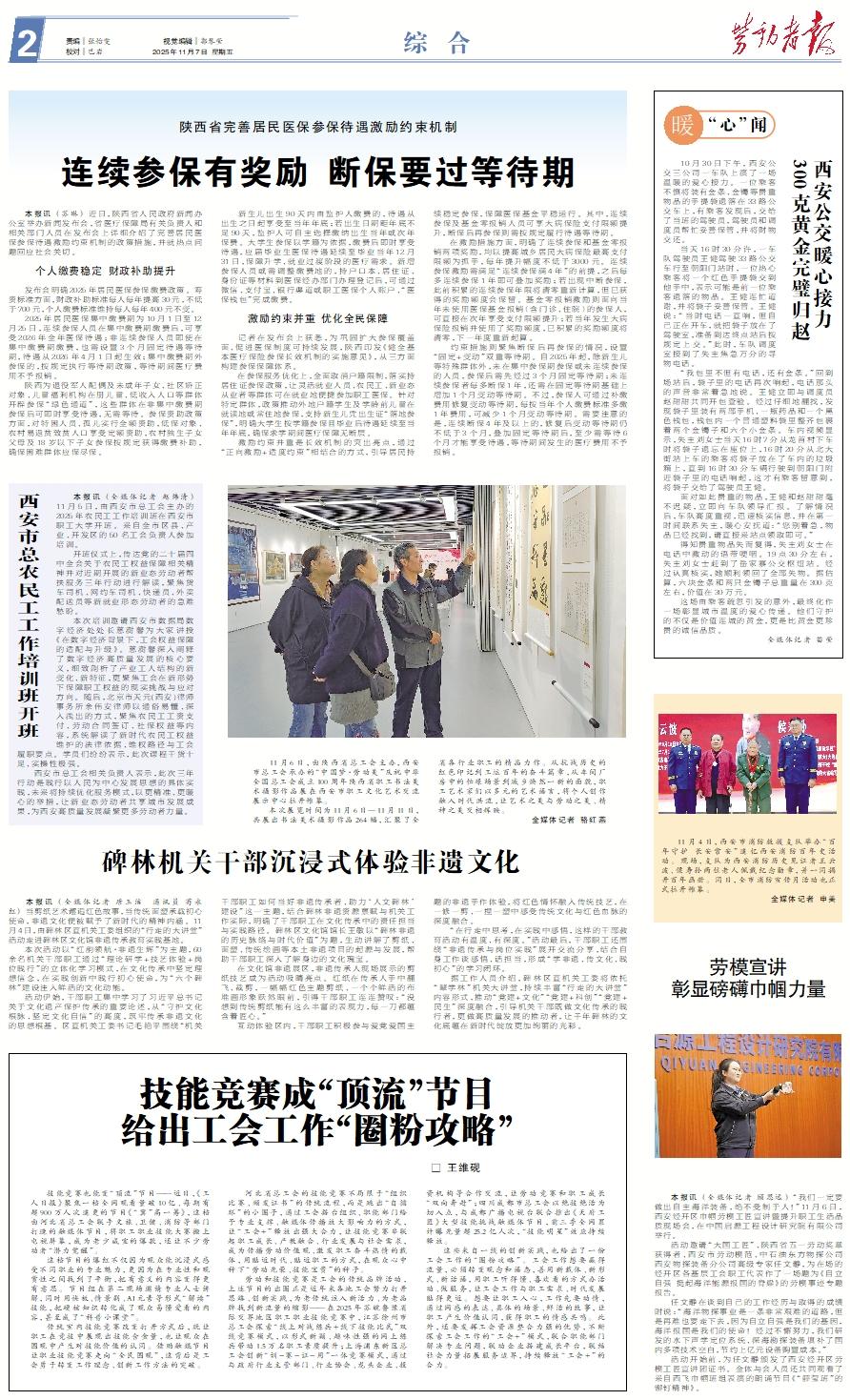 本报讯 (全媒体记者 赵炜清) 11月5日,由西安市总工会主办的2025年农民工工作培训班在西安市职工大学开班。来自全市区县、产业、开发区的50名工会负责人参加培训。 开班仪式上,传达党的二十届四中全会关于农民工权益保障相关精神并对近期开展的新业态劳动者帮扶服务三年行动进行解读,聚焦货车司机、网约车司机、快递员、外卖配送员等新就业形态劳动者的急难愁盼。 本次培训邀请西安市数据局数字经济处处长慈澍馨为大家讲授《在数字经济背景下,工会权益保障的适配与升级》。慈澍馨深入阐释了数字经济高质量发展的核心要义,细致剖析了产业工人结构的新变化、新特征,更聚焦工会在新形势下保障职工权益的现实挑战与应对方向。随后,北京市天元(西安)律师事务所余伟安律师以通俗易懂、深入浅出的方式,聚焦农民工工资支付、劳动合同签订、社保权益等内容,系统解读了新时代农民工权益维护的法律依据、维权路径与工会履职要点。学员们纷纷表示,此次课程干货十足、实操性极强。 西安市总工会相关负责人表示,此次三年行动是践行以人民为中心发展思想的具体实践,未来将持续优化服务模式,以更精准、更暖心的举措,让新业态劳动者共享城市发展成果,为西安高质量发展凝聚更多劳动者力量。