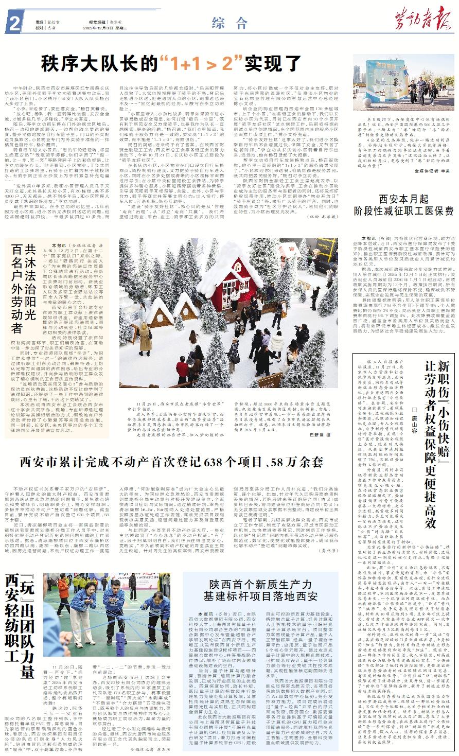 本报讯 (全媒体记者 唐玉洁) 12月2日,在第十二个“国家宪法日”来临之际,一场以“驿路同行 法润人心”为主题的宪法宣传周暨工会驿站普法行活动,在新城区长乐西路便民服务中心工会驿站门前启动。新就业形态领域的劳动者、环卫工人以及多家工会驿站站长等百余人齐聚一堂,共赴法治与关爱的暖心之约。 西安市总工会特邀专业律师为职工群众献上法律法规知识讲座。讲座用通俗易懂的语言解读宪法原则、阐释与劳动就业、社会保障等密切相关的法律条款。 活动特别设置了法律知识有奖问答环节,职工们踊跃抢答,在互动中进一步加深了对法律知识的理解。 同时,专业律师团队现场“坐诊”,为职工群众提供“一对一”的法律咨询服务。通过倾听职工们在劳动合同、薪酬待遇、工伤认定等方面遇到的法律困惑,给出专业的分析和维权建议,并向参与活动的职工群众发放了精心编制的工会普法宣传资料。 “这场活动既实用又暖心!”参与活动的保洁员赵秋香说,这场活动不仅让他学到了法律知识,还解决了一些工作中遇到的法律疑问,心里有了底,干活这下更踏实了。 本次活动由西安市总工会联合西安市红十字会共同举办。现场,专业讲师通过理论讲解与实操相结合的方式,细致地向户外劳动者传授了心肺复苏等常用急救技能。同一时间,长安区、未央区等地的多个工会驿站同步开展普法宣传活动。