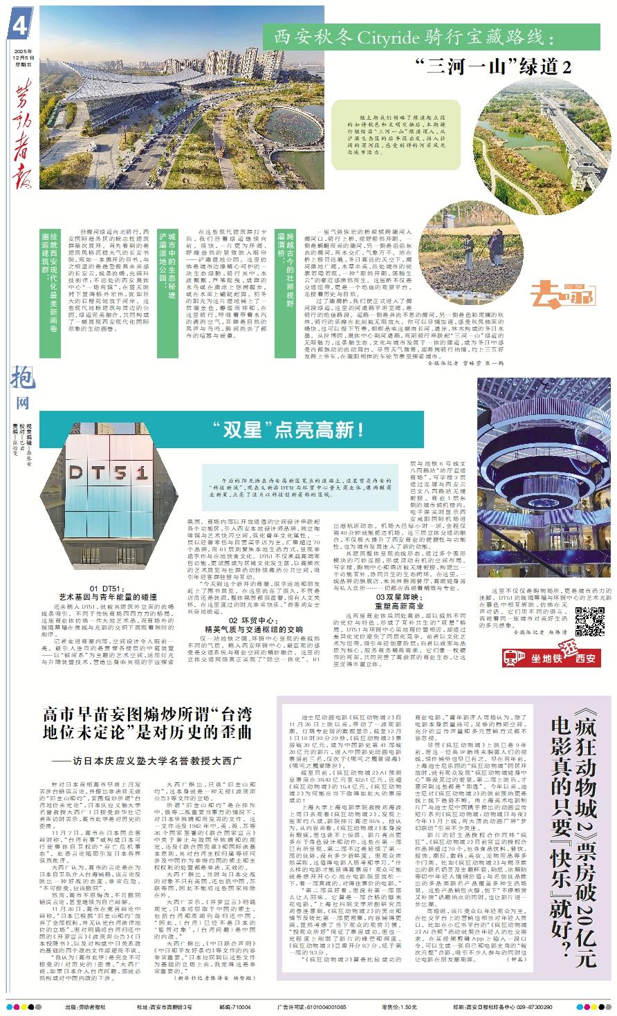 继上期我们领略了绿道起点段的如诗秋色和文明交融后,本期骑行继续沿“三河一山”绿道深入,从浐灞生态区的后半段出发,拐入壮阔的渭河段,感受别样的河岸风光与城市活力。邂逅建筑群:绘就西安现代化最美新画卷 沿渭河绿道向北骑行,西安国际港务区的标志性建筑群渐次展开。首先看到的是建筑风格沉稳大气的长安书院,宛如一本摊开的巨书,与之相望的是造型极具未来感的长安云,线条流畅,充满科技韵律;不远处的西安奥体中心“一场两馆”,在蓝天映衬下显得格外宏伟,犹如巨大的石榴花绽放于河岸。这些现代地标建筑与周边的公园、绿道完美融合,共同构成了一幅展现西安现代化国际形象的生动画卷。浐灞湿地公园:城市中的生态秘境 在这些现代建筑群打卡后,我们沿着绿道继续向前。很快,一片更为开阔、野趣盎然的景致映入眼帘——浐灞湿地公园。这里仿佛是城市边缘精心呵护的一块生态绿肺,骑行其中,水波粼粼,芦苇摇曳,成群的水鸟或在滩涂上悠闲踱步,或在水面上翩跹起舞。初冬的阳光为这片湿地铺上了一层暖金色,静谧而祥和,在这里骑行,呼吸着带着水汽的清冽空气,耳畔是自然的风声与鸟鸣,瞬间洗去了都市的喧嚣与疲惫。灞渭桥:跨越古今的壮丽视野 一座气势恢宏的桥梁横跨灞河入渭河口,骑行上桥,视野豁然开朗。一侧是蜿蜒而来的灞河,另一侧是滔滔东去的渭河,两水交汇,气象万千。站在桥上极目远眺,冬日高远的天空下,渭河滩地广阔,水草丰美,远处城市的轮廓若隐若现,一种“豁然开朗,荡胸生云”的豪迈感油然而生。这座桥不仅是交通纽带,更是一个绝佳的观景平台,连接着历史与自然。 过了灞渭桥,我们便正式进入了渭河段绿道,这里的河堤路平坦宽阔,是骑行的绝佳路段。道路一侧是奔流不息的渭河,另一侧是色彩斑斓的秋林,骑行的乐趣在此刻被无限放大。你可以尽情加速,感受秋风拂面的畅快,也可以慢下节奏,细细品味这幅由长河、堤岸、林木构成的冬日水墨。从世博园、奥体中心到河堤路,两期骑行串联起“三河一山”绿道的无限魅力,这条融生态、文化与城市发展于一体的廊道,成为冬日中感受古都脉动的流动舞台。尽管天气微寒,却难掩骑行热情,约上三五好友跨上单车,在暖阳相伴的车轮节奏里探索城市。 全媒体记者 常皓萱 焦一鹤