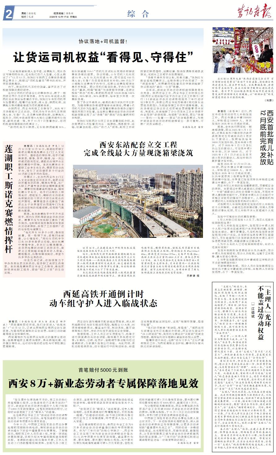 “以前跑货最怕准入金不退、运费拖欠,现在协议写得明明白白,还有我们自己人监督,心里太踏实了!”12月12日,快狗打车陕西工会集体协商成果宣贯会上,刚接过“司机监督员”聘书的刘钊,声音里满是激动。 台下,货运司机代表纷纷鼓掌,掌声表达了对权益保障的真切期待。 这份让司机们倍感安心的集体协议,源于一场历时近四个月的平等协商。作为2015年就进入陕西的主流货运信息撮合平台,快狗打车采用司机带车加盟模式,随着行业发展,准入金、抽佣比例、运费拖欠等问题逐渐成为司机高频诉求。 在陕西省、西安市两级工会指导下,2025年7月协商程序正式启动。司机方与平台方代表围绕准入金、车身广告、会员费与抽佣比例、运费拖欠、服务分、司机申诉效率等六大核心议题开诚布公沟通,最终达成一致,并于11月7日签署协议,将司机权益保障落到白纸黑字上。 “新司机首月0抽佣,无车贴抽佣最高16%,贴车贴最高15%!”司机代表刘钊在现场详细解读集体协商的成果。协议明确,小车司机7天内完成15单、大车15天内完成15单,即可返还150元准入金;车身广告自愿张贴且有补贴;300元以下小额拖欠运费由平台垫付,还推出运费险和货主黑名单制度。更让司机们振奋的是,平台公开“服务分”算法,明确“距离”为首要接单因素,还建立投诉“即办”机制,承诺陕西地区12328热线100%响应、90%解决、90%满意率,每年至少开展一次集体协商。 签了协议不是终点,最难的是日常执行不打折扣。为确保集体协商成果能够有效落地,聘请5名司机代表作为监督员,对签署的集体协商协议履行情况开展日常监督,这也标志着新就业形态劳动者权益保障实现了从“协商”到“落地”的监督闭环初步构建。 快狗打车陕西分公司工会主席曹艳妮介绍,此次受聘的5名监督员均从一线推选,熟悉接单、运输、结算全流程,将以“自己人”视角,利用工作间隙紧盯抽佣透明、运费结算、投诉反馈等关键条款落实,定期向工会和平台反馈情况。 “协商不是单方面让利,而是共赢。”快狗打车副总裁钱民峰坦言,这场协商让平台完成了一次“深度体检”,而聘请司机监督员的举措则破解了协议落地的“最后一公里”难题。 近年来,新就业形态劳动者权益保障备受社会关注。陕西省总工会、西安市总工会陆续出台《陕西省交通运输行业平台企业工会工作指引(试行)》《新就业形态劳动者维权服务三年行动计划》等文件,并推出西安市地方标准《网约货车运营服务规范》,为权益保障工作筑牢政策根基。此次协商通过协议形式将区域运营调整事项书面化、制度化,有效破解了分公司及其工会在协调平台总部时“话语权弱、沟通难”的困境,更以“协商——签约——监督——落实”的全链条模式,为维护新就业形态劳动者权益探索出一条可复制、可推广的务实路径。 全媒体记者 苗莹