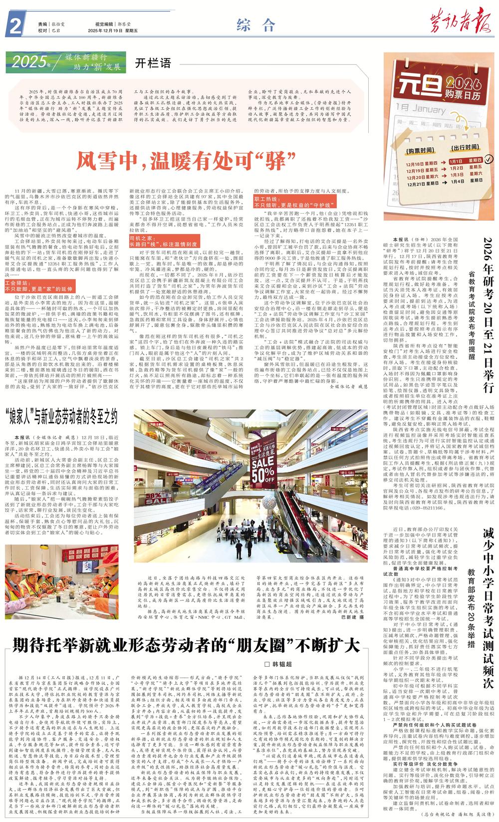 2025年,时值新疆维吾尔自治区成立70周年、中华全国总工会成立100周年,新疆维吾尔自治区总工会主办、工人时报社承办了2025年“媒体新疆行 助力‘新’发展”主题宣传采访活动。劳动者报社记者受邀,走进这片辽阔壮美的土地,深入一线,聆听并记录了新疆职工与工会组织的奋斗故事。 通过此次主题采访活动,真切感受到了新疆各族职工扎根边疆、建功立业的火热实践,见证了各级工会组织在强化思想政治引领、提升职工生活品质、维护职工合法权益等方面取得的扎实成效。我们走访了勇于担当的先进企业,聆听了爱岗敬业、无私奉献的先进个人事迹,深受教育与鼓舞。 作为兄弟地市工会媒体,《劳动者报》特开辟专栏,广泛传播新疆工会工作的创新经验与动人故事,凝聚奋进力量,共同为谱写中国式现代化新疆篇章贡献工会组织的智慧和力量。 11月的新疆,大雪已落,寒意渐浓。摄氏零下的气温里,乌鲁木齐市沙依巴克区的街道依然井然有序,车流不息。 这有序的背后,是一个个身影在寒风中穿梭,环卫工、外卖员、货车司机、快递小哥,这些城市运行的毛细血管,正在为城市运转不停努力着。而遍布街巷的工会服务站点,正成为他们奔波路上温暖的“加油站”和坚实的“避风港”。 风雪中的暖流正悄然改变着城市的温度。 工会驿站里,外卖员匆匆来过,电动车后备箱里装有热气腾腾的餐食,给电动车换好电后,立刻奔赴他的下一站;货车司机范在刚停好车,走进了暖气充足的司机之家,准备歇歇脚再出发;快递小哥艾合买提拨通“12351职工服务热线”,工作人员接通电话,他一直头疼的欠薪问题也得到了解决……工会驿站:不只歇脚,更是“家”的延伸 位于沙依巴克区南昌路上的八一街道工会驿站,是外卖员小李常去的地方。因为在这里,温暖是具体的——一杯随时可取的热水、一个可以加热饭菜的微波炉、一排供手机、满墙的政策书籍和电瓶恢复能量的充电接口……这天,小李匆匆来到驿站外的换电站,熟练地为电动车换上满电池,后备箱里餐食的热气仿佛也为他注入了新的动力。对他来说,这几分钟的停留,意味着一上午的高效运转。 虽然户外温度已是零下,但驿站里常年温度适宜。一楼的区域明亮而整洁,几张方桌旁坐着正在休息的骑手和环卫工人,空气中飘着淡淡的茶香,那是从角落的自助饮水机散发出来的。沿着楼梯来到二楼,整面落地玻璃透过冬日的暖阳,洒在书架前,一旁依托驿站开展活动的照片被照亮…… “这座驿站为周围的户外劳动者提供了歇脚休息的去处,受到了大家的一致好评。”依沙巴克区新就业形态行业工会联合会工会主席王小印介绍,像这样的工会驿站全区共建有97家,其中全国最美工会驿站2家,除了能提供基本的生活服务外,还提供法律咨询、心理健康服务、劳动权益保护宣传等工会特色服务活动。 “很多环卫工把这里当自己家一样爱护,经常来都舍不得开空调,说想省省电。”工作人员米克拉依说。司机之家:长路归“栈”,标注温情刻度 对于货车司机范在刚来说,以前拉完一趟货,只能窝在车里,和“老伙计”方向盘挤在一处,囫囵歇上一觉。跑车时,车是唯一的依靠,却是移动的牢笼。冷风灌进来,梦都是冷的、硬的。 而现在,一切都不同了。2025年8月,依沙巴克区总工会携手新疆新筑友混凝土有限公司工会共同打造了货车“司机之家”,为常年奔波货车司机提供了一处宽敞舒适的休憩港湾。 如今的范在刚在企业卸完货,给工作人员交完货单,就一头钻进“司机之家”。这里,6张单人床依次排开,干净整洁的被褥定时更换,房间里配有暖气、饮用水,书柜里不仅摆满了图书,还有棋牌、急救医药箱和常用工具设备。身体舒展开,心情也舒展开了,暖意包裹全身,驱散骨头缝里积攒的寒气。 像范在刚这样的货车司机还有很多,“司机之家”这四个字,给了他们在外奔波一种久违的踏实感。锁上车门,身后是与他日夜兼程的“铁马”;推门而入,眼前是属于他这个“人”的片刻人间。 截至目前,沙区总工会建设“司机之家”共2家,根据货车司机需求设置的桌椅板凳、休息床铺、急救药箱等为货车司机提供了像“家”一般的灯火,虽不足以照亮所有路途,却标志着一种系统化关怀的开端——它衡量着一座城市的温度,不仅在于其楼宇的高度,更在于它对那些托举城市运转的劳动者,所给予的支撑力度与人文刻度。职工热线:不只倾听,更是权益的“守护线” “我辛辛苦苦跑一个月,他(企业)凭啥说扣钱就扣钱,我都离职了还拖着不给我发工资……”沙区总工会法权工作负责人于明燕接起“12351职工服务热线”,对方略带口音抱怨着,她在本子上一一记录下来。 经过了解得知,打电话的艾合买提是一名外卖小哥,曾因旷工被平台罚了款,后来与企业协商不畅选择了离职。离职后,艾合买提却一直拿不到他应得的9000多元工资,于是他拨通了职工服务热线。 于明燕了解了情况后,与企业沟通得知,按照合同约定,每月25日是薪资发放日,艾合买提离职前的工资要在下一个薪资发放日核算后才能发放。这一点,艾合买提并不认可。于是,于明燕找来艾合买提和企业,来到沙区“工会+法院”劳动争议调解工作室,大家坐在一起协商。经过不懈努力,最终双方达成一致。 这个劳动争议调解室,位于沙依巴克区社会治安综合治理中心,沿一楼右侧走廊走到尽头,便是“工会+法院
