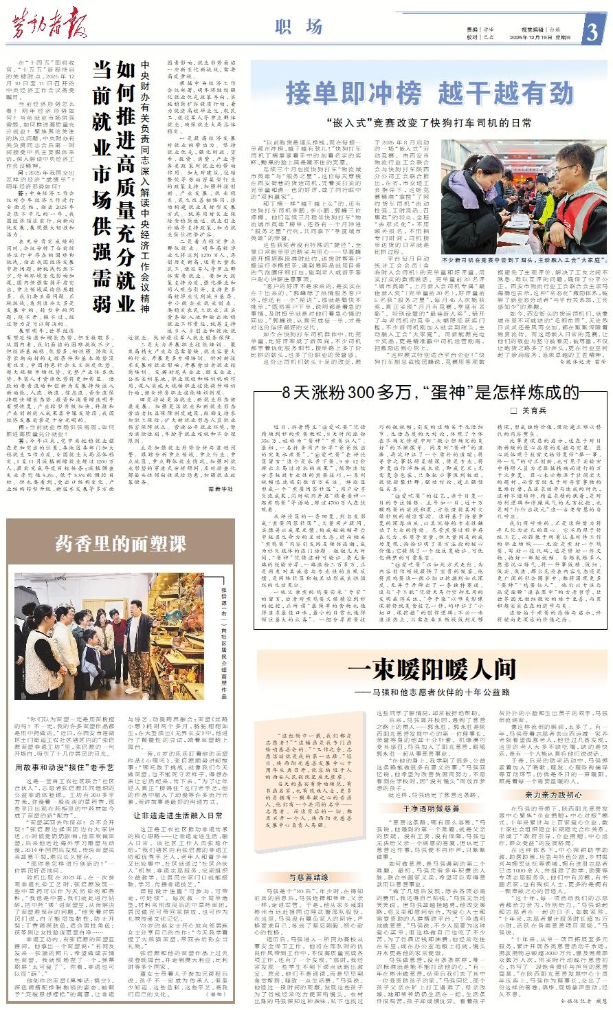 在“十四五”即将收官、“十五五”新程待启的关键时点,2025年12月10日至11日召开的中央经济工作会议备受瞩目。 当前经济形势怎么看?明年经济形势如何?当前就业市场供强需弱,如何推进高质量充分就业?聚焦舆论关注的热点问题,中央财办有关负责同志会后第一时间接受中央主要媒体采访,深入解读中央经济工作会议精神。 问:2025年我国交出怎样的经济“成绩单”?明年经济形势如何? 答:中央经济工作会议对今年经济工作进行全面总结,指出2025年是很不平凡的一年,我国经济顶压前行、向新向优发展,展现强大韧性和活力。 在充分肯定成绩的同时,会议分析了当前经济运行中存在的困难和挑战,指出我国经济发展中老问题、新挑战仍然不少,外部环境变化影响加深,国内供强需弱矛盾突出,重点领域风险隐患较多。我们要直面问题、正视挑战,看到这些大多是发展中的、转型中的问题,绕不开、躲不过,经过努力是可以解决的。 展望明年,世界经济有望延续温和增长态势,但变数较多。从国内看,我们面临的困难挑战不少,但经济基础稳、优势多、韧性强、潜能大等长期向好的支撑条件和基本趋势没有改变,中国特色社会主义制度优势、超大规模市场优势、完整产业体系优势、丰富人才资源优势将更加彰显。活跃的要素流动和创新为发展持续注入新动能,人流、物流、信息流、资金流保持较快增长态势,投资和消费增速明年有望恢复,产业转型升级加快,科技和产业创新进入成果集中爆发阶段,我国经济发展前景是十分光明的。 问:当前就业市场供强需弱,如何推进高质量充分就业? 答:今年以来,党中央把稳就业摆在更加突出的位置,各地区各部门加大稳就业工作力度,全国就业大局总体稳定,1至11月城镇新增就业超过1200万人,提前完成年度目标任务;城镇调查失业率均值5.2%,低于5.5%的调控目标。但也要看到,受出口结构变化、产业结构转型升级、新技术发展等多方面因素影响,就业形势面临一些新变化新挑战,需要高度重视。 根据中央经济工作会议部署,明年将继续强化就业优先政策导向,实施稳岗扩容提质行动,着力促进高校毕业生、农民工、退役军人等重点群体就业,确保就业大局总体稳定。 一是提高经济发展对就业的带动力。坚持就业优先,强化财政、货币、投资、消费、产业等各类政策对就业的带动作用。加大对建筑、住宿餐饮等劳动密集型行业的政策支持,加强科技创新、产业发展、就业稳定、民生改善相协同,推动构建就业友好型发展方式。统筹用好失业保险金稳岗返还、就业创业补贴等支持政策,加力就业岗位挖潜扩容。 二是着力稳定重点群体就业。明年高校毕业生将达到1270万人,再创历史新高,还有大量农民工、退役军人等重点群体需要就业。要加大政策支持力度,强化择业和用人观念引导,支持更多高校毕业生到城乡基层、中小微企业就业创业。要稳定农民工就业,压实劳务输入地和输出地稳就业工作责任,统筹支持返乡入乡创业和就地就近就业。做好退役军人就业服务保障。 三是大力开展职业技能培训。聚焦高精尖产业与急需紧缺、就业容量大的行业,开展更多专项培训。针对新技术发展对就业影响,开展劳动者就业转岗培训。发挥好龙头企业、链主企业、公共实训基地、职业院校和培训机构作用,深入实施大规模职业技能提升培训行动,健全终身职业技能培训制度。 四是推动灵活就业、新就业形态健康发展。加强灵活就业和新就业形态劳动者权益保障制度建设,鼓励支持参加职工保险,扩大新就业形态人员职业伤害保障试点。营造公平就业环境,努力消除性别、年龄等就业歧视和不合理限制。 五是加强就业形势分析与监测预警。跟踪分析重点领域、重点行业、重点地区、重点群体就业情况,加强对就业形势的穿透式分析研判,及时排查化解苗头性倾向性风险隐患,加强就业政策储备。 据新华社