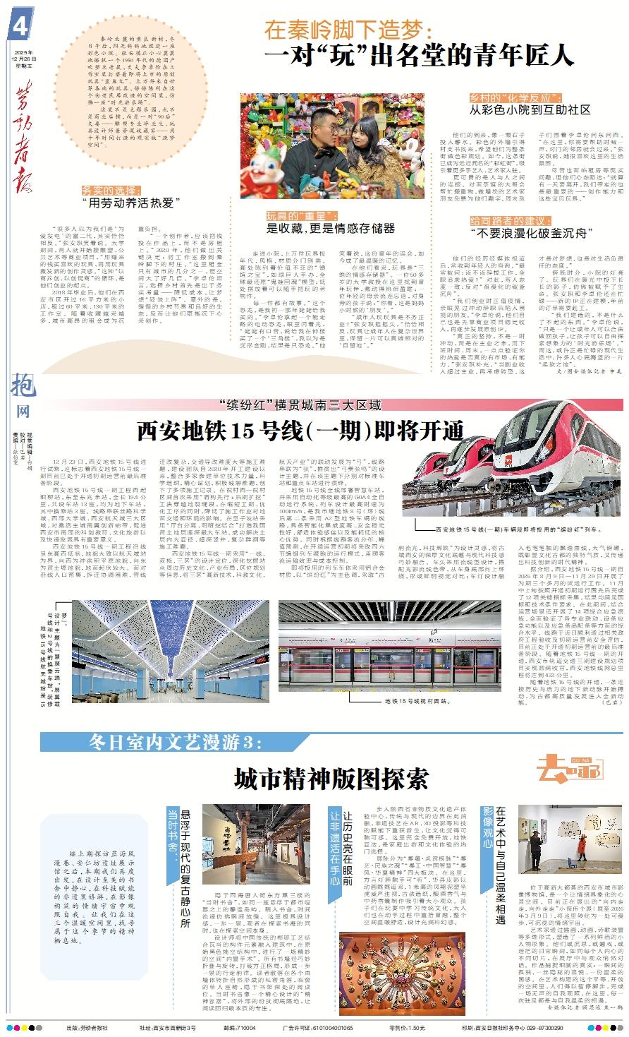 西安地铁15号线(一期)车辆段即将投用的“缤纷红”列车。地铁15号线航天城站是15号线和2号线的换乘车站,装修设计主题为“慧聚云端,展翼载梦”。地铁15号线祝村西站。 12月23日,西安地铁15号线进行试乘,这标志着西安地铁15号线一期目前已处于开通初期运营前最后准备阶段。 西安地铁15号线一期工程西起细柳站,东至东兆余站,全长19.4公里,共设车站13座,均为地下车站,其中换乘站3座。线路串联丝路科学城、西部大学城、西安航天城三大区域,对激活主城南翼创新轴带,促进西安市南部的科创教育、文化旅游以及快速发展具有重要意义。 西安地铁15号线一期工程沿线呈东高西低状,地貌大致以航天城站为界,向西为冲洪积平原地貌,向东为黄土塬地貌,地面起伏较大。面对沿线人口密集、拆迁协调困难、管线迁改复杂、交通导改难度大等施工难题,建设团队自2020年开工建设以来,整合多家参建单位技术力量,科学组织,精心谋划,积极破解难题,创下了多项施工记录。在祝村西—祝村区间首次采用“盾构先行+后期扩挖”工法穿越地裂缝段,在缩短工期、优化工序的同时,降低了施工作业对地面交通和环境的影响。在皇子坡站采用“厅台分离、明暗挖结合”打造我国黄土地层埋深最大车站,成功解决土层内大直径、超深竖井、复杂群洞等施工难题。 西安地铁15号线一期采用“一线、双核、三区”的设计定位,深化挖掘站点周边历史文化、产业布局、区位规划等信息,将三区“高新技术、科教文化、航天产业”的联动发展为“弓”,线路串联为“弦”,推演出“弓奏弦鸣”的设计主题,并在该主题下分别对标准车站和重点车站进行演绎。 地铁15号线全线部署智慧车站,并采用自动化等级最高的G0A4全自动运行系统,列车设计最高时速为100km/h,是我市继地铁8号(环)线后第二条采用A2型地铁车辆的线路,具备智能化集成度高、安全稳定性好、舒适体验感佳以及能耗低的核心优势。同时根据线路客流分布、峰值预测,在开通运营初期将采取四六节编组列车混跑的运行模式,兼顾客流运输效率与成本控制。 即将投用的列车车体采用铝合金材质,以“缤纷红”为主色调,采取“古韵流光,科技辉映”为设计灵感,将古城西安的深厚文化底蕴与现代科技感巧妙融合。车头采用流线型设计,搭配光影流线色带,从车身底部向上环绕,形成鲜明视觉对比;车灯设计融入毛笔笔触的飘逸曲线,大气磅礴,既彰显文化古都的独特气质,又传递出科技创新的时代精神。 据介绍,西安地铁15号线一期自2025年8月9日—11月29日开展了为期三个多月的试运行工作。11月中上旬按照开通初期运行图先后完成了12项关键指标采集,结果均满足国标和技术条件要求。在此期间,结合运营场景还开展了14项综合应急演练,全面验证了各专业联动、设备应急功能以及应急备品配备等方面的综合水平。线路于近日顺利通过相关政府工程验收及初期运营前安全评估,目前正处于开通初期运营前的最后准备阶段。随着地铁15号线一期的开通,西安市轨道交通三期建设规划项目实现圆满收官,西安地铁线网总里程将达到422公里。 随着地铁15号线的开通,一条连接历史与活力的地下新动脉开始搏动,为古都高质量发展注入全新动能。 (巴岩)