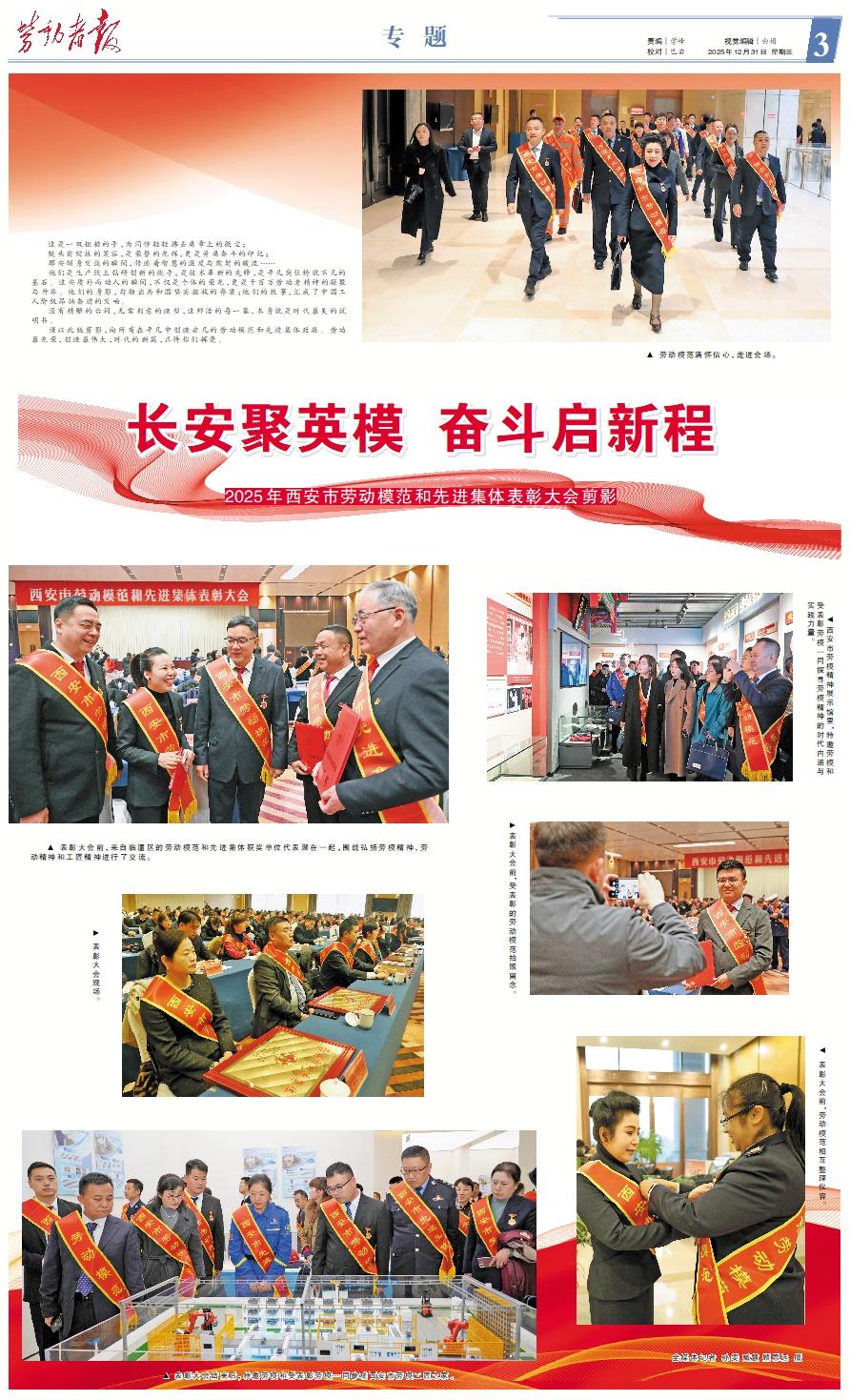 这是一双粗糙的手,为同伴轻轻拂去肩章上的微尘; 镜头前绽放的笑容,是荣誉的光辉,更是并肩奋斗的印记; 那些倾身交谈的瞬间,传递着智慧的温度与默契的暖流…… 他们是生产线上钻研创新的能手,是技术革新的先锋,是平凡岗位铸就不凡的基石。这些质朴而动人的瞬间,不仅是个体的荣光,更是千百万劳动者精神的凝聚与升华。他们的身影,勾勒出共和国坚实挺拔的脊梁;他们的故事,汇成了中国工人阶级昂扬奋进的交响。 没有精雕的台词,无需刻意的造型,这鲜活的每一幕,本身就是时代最美的说明书。 谨以此版剪影,向所有在平凡中创造非凡的劳动模范和先进集体致敬。劳动最光荣,创造最伟大,时代的新篇,正待你们挥毫。 ▲ 劳动模范满怀信心,走进会场。 ▲ 表彰大会前,来自临潼区的劳动模范和先进集体获奖单位代表聚在一起,围绕弘扬劳模精神、劳动精神和工匠精神进行了交流。 ▲ 西安市劳模精神展示馆里,特邀劳模和受表彰劳模一同探寻劳模精神的时代内涵与实践力量。 ▲ 表彰大会前,受表彰的劳动模范拍照留念。 ▲ 表彰大会现场。 ▲ 表彰大会结束后,特邀劳模和受表彰劳模一同参观西安市劳模工匠之家。 ▲ 表彰大会前,劳动模范相互整理仪容。全媒体记者 孙雯 臧慧 顾思远 摄