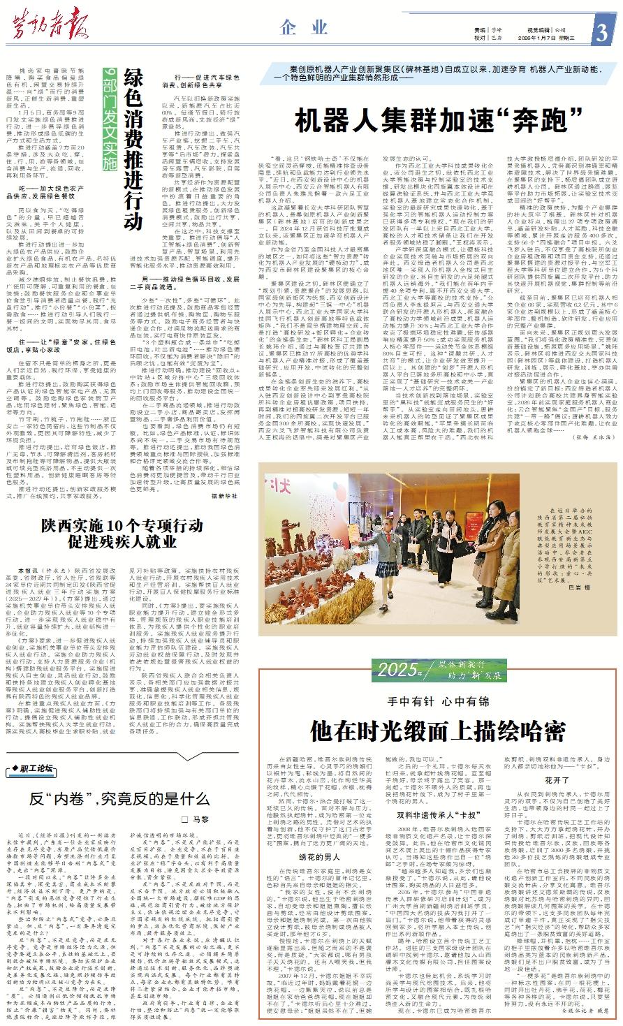 本报讯 (仵永杰) 陕西省发展改革委、省财政厅、省人社厅、省残联等24家单位近期共同制定印发《陕西省促进残疾人就业三年行动实施方案(2025—2027年)》。《方案》提出,通过实施机关事业单位带头安排残疾人就业、企业助力残疾人就业等10个专项行动,进一步实现残疾人就业稳中有升、就业容量持续扩大,就业结构进一步优化。 《方案》要求,进一步促进残疾人就业创业,实施机关事业单位带头安排残疾人就业行动。实施企业助力残疾人就业行动,支持人力资源服务企业(机构)搭建助残就业服务平台。实施促进残疾人自主创业、灵活就业行动,鼓励和扶持各地建立残疾人创业孵化基地等残疾人就业创业服务平台,创新打造具有陕西特色的残疾人就业品牌。 在推进重点残疾人就业方面,《方案》明确,实施促进残疾人辅助性就业行动,提倡设立残疾人辅助性就业机构。实施帮扶残疾人大学生就业行动,落实残疾人高校毕业生求职补贴、就业见习补贴等政策。实施扶持农村残疾人就业行动,开展农村残疾人实用技术和生产经营培训。实施帮扶盲人就业行动,开展盲人保健按摩服务行业标准化建设。 同时,《方案》提出,要实施残疾人职业能力提升行动,建立健全形式多样、管理规范的残疾人职业技能培训体系,为残疾人提供个性化的职业培训服务。实施残疾人就业服务提升行动,持续加强残疾人就业辅导员和职业能力评估师队伍建设。实施残疾人劳动就业权益保障行动,及时发现并依法依规处置侵害残疾人就业权益的行为。 陕西省残疾人联合会相关负责人表示,各相关部门应加强数据对接共享,准确掌握残疾人就业相关信息,规范化、信息化、科学化管理残疾人就业服务和职业技能培训等工作。各级残联部门将持续加强与有关部门单位的信息联通、工作联动,形成齐抓共管残疾人就业工作的合力,确保高质量完成各项任务。