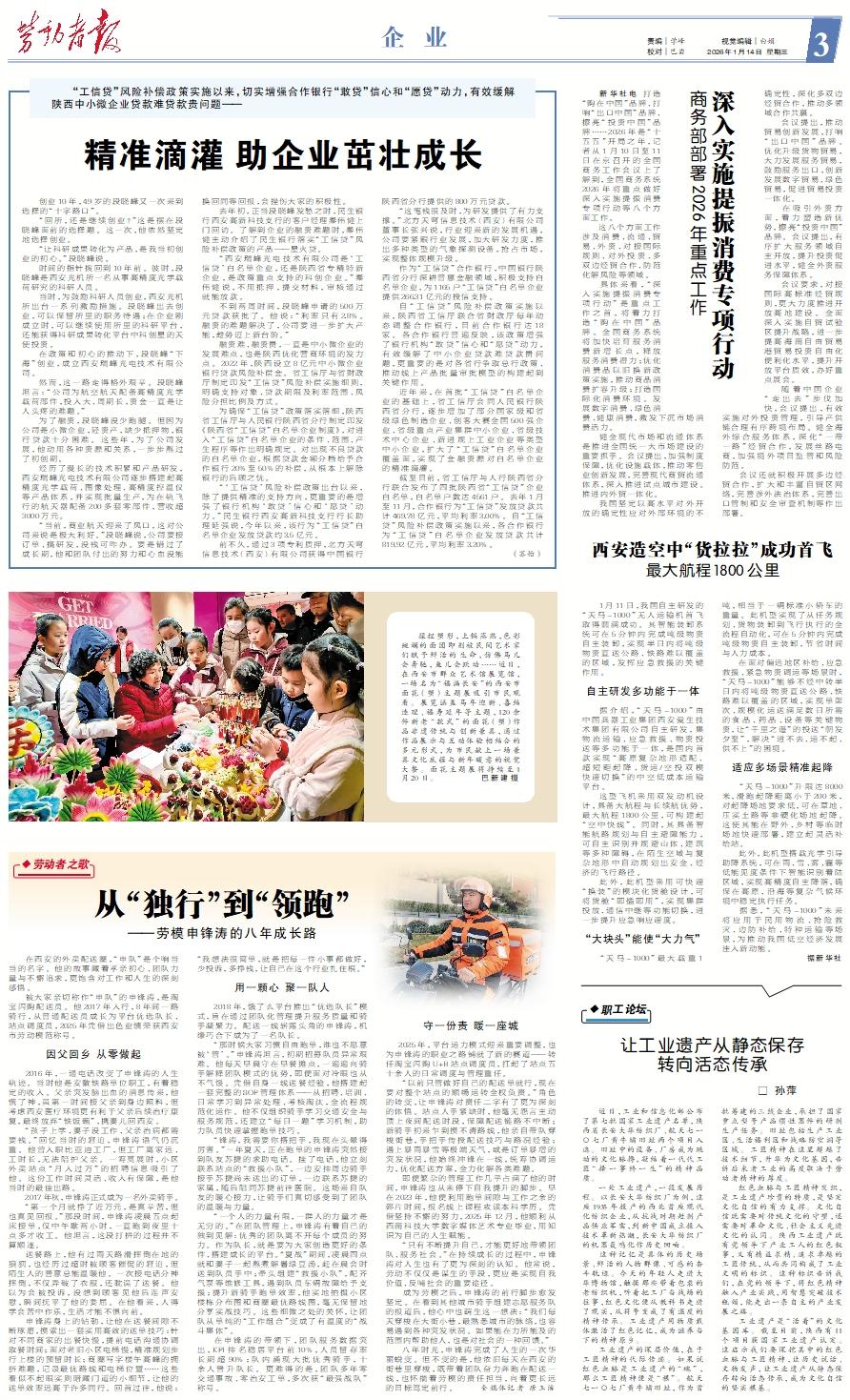 创业10年,49岁的段晓峰又一次来到选择的“十字路口”。 “回所,还是继续创业?”这是摆在段晓峰面前的选择题。这一次,他依然坚定地选择创业。 “让科研成果转化为产品,是我当初创业的初心。”段晓峰说。 时间的指针拨回到10年前。彼时,段晓峰是西安光机所一名从事高精度光学载荷研究的科研人员。 当时,为鼓励科研人员创业,西安光机所出台一系列激励措施。段晓峰出去创业,可以保留所里的职务待遇;在企业刚成立时,可以继续使用所里的科研平台,还能获得科研成果转化平台中科创星的天使投资。 在政策和初心的推动下,段晓峰“下海”创业,成立西安瑞峰光电技术有限公司。 然而,这一路走得格外艰辛。段晓峰坦言:“公司为航空航天配备高精度光学载荷部件,投入大、周期长,资金一直是让人头疼的难题。” 为了融资,段晓峰没少跑腿。但因为公司是小微企业,轻资产,缺少抵押物,银行贷款十分困难。这些年,为了公司发展,他动用各种资源和关系,一步步熬过了初创期。 经历了漫长的技术积累和产品研发,西安瑞峰光电技术有限公司逐步搭建起高精度光学载荷、图像处理、高精度控温仪等产品体系,并实现批量生产,为在轨飞行的航天器配备200多套零部件,营收超3000万元。 “当前,商业航天迎来了风口,这对公司来说是极大利好。”段晓峰说,公司要接订单、搞研发,没钱可咋办。要是错过了成长期,他和团队付出的努力和心血没能换回同等回报,会挫伤大家的积极性。 去年初,正当段晓峰发愁之时,民生银行西安高新科技支行的客户经理秦伟健上门回访。了解到企业的融资难题时,秦伟健主动介绍了民生银行落实“工信贷”风险补偿政策的产品——星火贷。 “西安瑞峰光电技术有限公司是‘工信贷’白名单企业,还是陕西省专精特新企业,是政策重点支持的科创企业。”秦伟健说,不用抵押,提交材料,审核通过就能放款。 不到两周时间,段晓峰申请的500万元贷款获批了。他说:“利率只有2.8%。融资的难题解决了,公司要进一步扩大产能,趁势迈上新台阶。” 融资难、融资贵,一直是中小微企业的发展难点,也是陕西优化营商环境的发力点。2022年,陕西设立8亿元中小微企业银行贷款风险补偿金。省工信厅与省财政厅制定印发“工信贷”风险补偿实施细则,明确支持对象、贷款期限及利率范围、风险分担比例及方式。 为确保“工信贷”政策落实落细,陕西省工信厅与人民银行陕西省分行制定印发《陕西省“工信贷”白名单企业制度》,对进入“工信贷”白名单企业的条件、范围、产生程序等作出明确规定。对出现不良贷款的白名单企业,根据贷款金额分档给予合作银行20%至50%的补偿,从根本上解除银行的后顾之忧。 “‘工信贷’风险补偿政策出台以来,除了提供精准的支持方向,更重要的是增强了银行机构‘敢贷’信心和‘愿贷’动力。”民生银行西安高新科技支行行长助理延强说,今年以来,该行为“工信贷”白名单企业发放贷款约3.5亿元。 前不久,通过3项专利质押,北方天穹信息技术(西安)有限公司获得中国银行陕西省分行提供的800万元贷款。 “这笔钱很及时,为研发提供了有力支撑。”北方天穹信息技术(西安)有限公司董事长张兴说,行业迎来新的发展机遇,公司要紧跟行业发展,加大研发力度,推出多种类型的气象探测设备,抢占市场,实现整体规模升级。 作为“工信贷”合作银行,中国银行陕西省分行深耕普惠金融领域,积极支持白名单企业,为1165户“工信贷”白名单企业提供266.31亿元的授信支持。 自“工信贷”风险补偿政策实施以来,陕西省工信厅联合省财政厅每年动态调整合作银行,目前合作银行达18家。各合作银行普遍反映,该政策增强了银行机构“敢贷”信心和“愿贷”动力,有效缓解了中小企业贷款难贷款贵问题,更重要的是对各省行争取总行政策、推动线上产品批量审批模型的构建起到关键作用。 近年来,在首批“工信贷”白名单企业的基础上,省工信厅会同人民银行陕西省分行,逐步增加了部分国家级和省级绿色制造企业、创客大赛全国500强企业、省级重点产业集群中小企业、省级技术中心企业、新进规上工业企业等类型中小企业,扩大了“工信贷”白名单企业覆盖面,实现了金融资源对白名单企业的精准滴灌。 截至目前,省工信厅与人行陕西省分行联合发布了四批陕西省“工信贷”企业白名单,白名单户数达4561户。去年1月至11月,合作银行为“工信贷”发放贷款共计469.78亿元,平均利率3.00%。自“工信贷”风险补偿政策实施以来,各合作银行为“工信贷”白名单企业发放贷款共计819.92亿元,平均利率3.20%。 (苏怡)