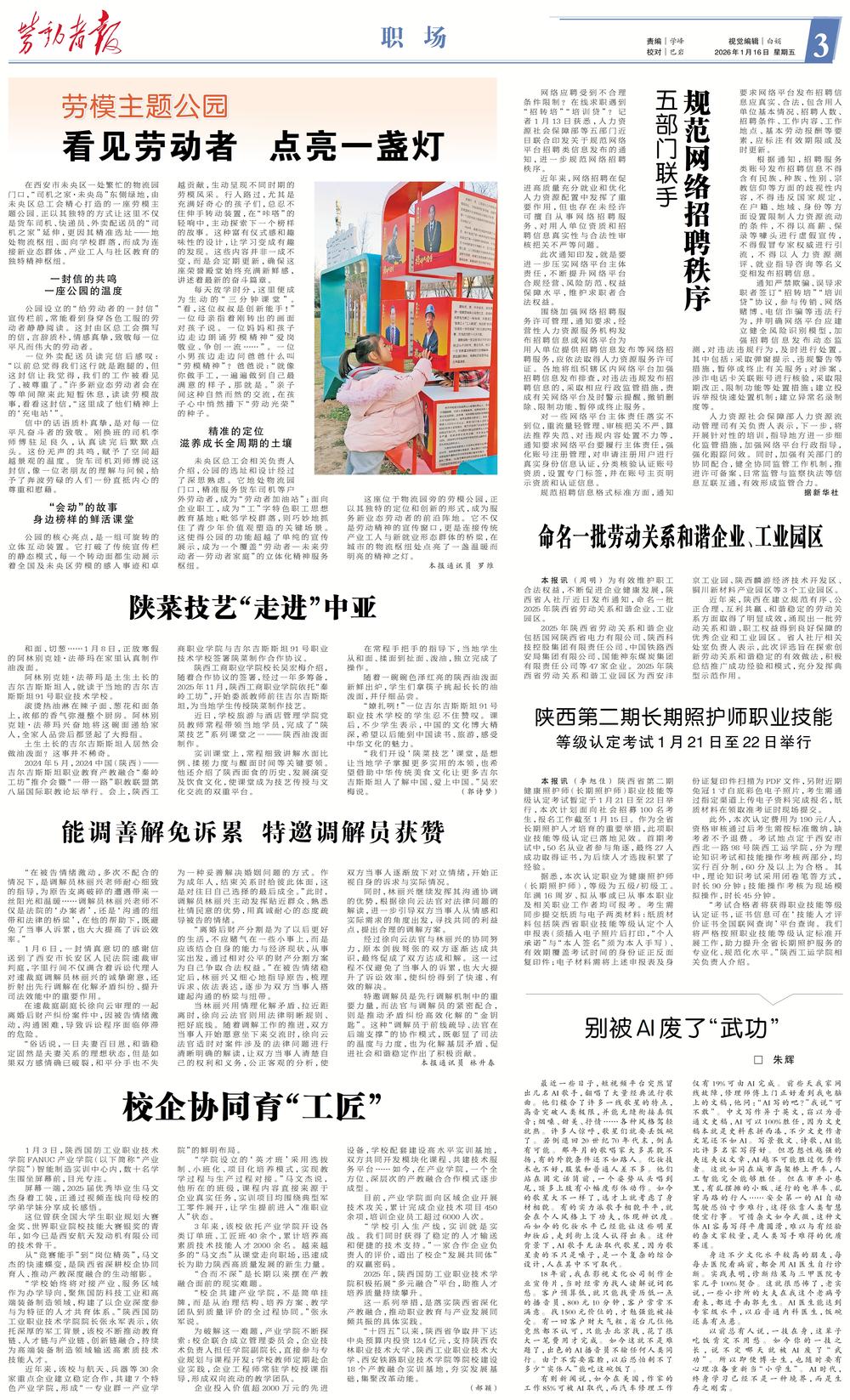 本报讯 (周明) 为有效维护职工合法权益,不断促进企业健康发展,陕西省人社厅近日发布通知,命名一批2025年陕西省劳动关系和谐企业、工业园区。 2025年陕西省劳动关系和谐企业包括国网陕西省电力有限公司、陕西科技控股集团有限责任公司、中国铁路西安局集团有限公司、国能神东煤炭集团有限责任公司等47家企业。2025年陕西省劳动关系和谐工业园区为西安沣京工业园、陕西麟游经济技术开发区、铜川新材料产业园区等3个工业园区。 近年来,陕西在建立规范有序、公正合理、互利共赢、和谐稳定的劳动关系方面取得了明显成效,涌现出一批劳动关系和谐、职工权益得到良好保障的优秀企业和工业园区。省人社厅相关处室负责人表示,此次评选旨在探索创新劳动关系和谐稳定的有效做法,积极总结推广成功经验和模式,充分发挥典型示范作用。