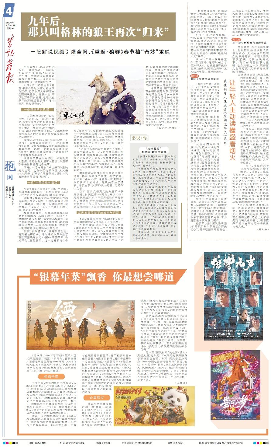 在流量为王、热点速朽的今天,一条短视频让一部沉寂九年的纪录电影“起死回生”,并一举冲进全年竞争最激烈的春节档——这听起来很不可思议,却真实发生了。 2月2日,纪录电影《重返·狼群》通过其官方社交平台宣布,将于农历大年初三在全国院线重映。消息一出,不仅让万千网友沸腾,也让从业多年的影院经理感慨:“这个世界,真的很奇妙。”一条爆款解说视频 一切的起点,源于一段短视频。1月8日,一条讲述《重返·狼群》故事的自媒体解说视频上线,文案中那句“它学会了像人一样去爱,但它能活下来,却是因为学会了怕人”,精准击中当代都市人内心深处对纯粹情感与自由生命的共鸣。 视频迅速引爆全网,单在其中一个平台上,点赞量就突破千万,评论高达21.7万条,#重返狼群##狼王格林#等话题多次登上热搜。无数网友在评论区“泪目”,更发出集体呼声:“求重映!”“想寒假带孩子去看!” 汹涌的民意被片方接收。相关负责人透露,近期收到大量家长留言,希望带孩子去影院感受这个故事。 于是,一场由网友“喊出来”的重映就此出现。这在中国电影市场,尤其是排片历来“打破头”的春节档,堪称一次前所未有的温情“逆袭”。一部“中国版格林童话” 电影《重返·狼群》于2017年上映,其故事本身就如同一则现实童话,记录了世界首例个人成功放归野狼的传奇。 2010年,成都女画家李微漪在若尔盖草原写生时,听闻一只母狼被毒杀,留下一窝幼崽。她耗费三天时间寻找,最终救活了仅存的一只、出生才5天的公狼,给它起名“格林”。 故事从此展开。李微漪将格林带回成都公寓喂养,小狼上演了一系列令人捧腹的“都市奇遇”:被家中小狗欺负,自己开电视看《动物世界》学抓鱼,深夜狼嚎惊扰四邻……这些珍贵影像,记录了一段不可思议的跨物种共同生活。 然而,李微漪深知,狼是群居动物,需要领地和自由。她与搭档亦风做出了艰难而正确的决定:将格林带回草原,助其野化,重返狼群。这一过程长达7个月,充满艰辛,也流淌着最动人的温情——李微漪生病时,格林送来自己捕猎的野兔;她脚踝扭伤无法行走时,格林竟会牵来一匹马,用头推她上马…… 这些超越物种本能的行为,构建了影片最坚实的情感基石。 “还有什么比活命更重要?”“自由。”影片中最催人泪下的,是格林首次回归狼群失败、伤痕累累返回时,李微漪与亦风的这段对话。最终,格林成功融入狼群,成为了真正的狼。而当李微漪再次在山头与它相遇时,格林站在远处,眼神复杂,有欣喜有犹豫,最终转身,再也没有回头。 据李微漪在后续出版的同名书籍中透露,格林后来成了狼王,有了家庭。2020年,格林10岁,她最后一次见到它,依然没有上前打扰。这段关系始于拯救,终于放手,其间的爱与尊重,让无数人动容。 当年,影片凭借真实的力量和诚挚的情感,收获豆瓣8.4高分,并以3298.9万元票房成为2017年国产纪录片票房季军。没想到,9年后通过新的媒介,其再次触动了一代人的心。很多网友表示,要去电影院补上欠格林的那张电影票。反思流量浪潮下的感动与问题 不过,爆款短视频让感动蔓延,促使电影重映的同时,也带来了不少问题。 先是李微漪早年出版的同名书籍《重返狼群》,在部分二手平台被炒至数百元甚至上千元。如今,大量自媒体博主涌入若尔盖草原。李微漪在社交平台上发布了手写信,她说,2020年若尔盖狼生态保护监测站成立后,她的使命已完成,但如今草原的宁静却被打破。湿地保护区周边涌入大量直播网红、探险者,甚至有人筹划开发旅游,严重干扰了野生动物在严冬和繁殖季的关键生存,也让保护区工作人员疲于应付。 她呼吁道,眼下正值新草未萌的荒芜时节,苦熬严冬的野生动物觅食本就艰难,“我深刻记得2013年旅游季时野生动物们逃亡藏匿的情景、记得《重返·狼群》‘鹤之殇’篇章中那只被游客追撵至死的小黑颈鹤。还望大家与动物们保持远观的距离。”她理解大家的关切,但强调虽到春荒,也不必投喂,那是他们曾走过的弯路。 (孔小平 李昀格)多说1句“格林故事” 期待最美好的番外 《重返·狼群》这一故事的再度风靡,让野生动物保护议题获得了空前关注,这或许是“格林故事”最美好的“番外篇”。 李微漪的举动已经为我们示范了何为“真正的保护”:不是占有,不是驯化,而是尊重其天性,守护其家园。她推动建立了中国首个狼生态保护监测站,将个人的情感升华为科学持久的守护行动。 当然了,泼天的流量与野生动物保护并不矛盾,但流量一定是把双刃剑:如果善用,可以让保护理念广植人心,汇聚社会力量;如果滥用,则可能演变成对脆弱生态的粗暴侵扰,最终背离保护的初心。 在万千网友确认“格林可能不在了”时,大家表示,我们可以去保护更多的“格林”。然而,真正的保护,源于克制而恒久的爱,而非一时狂热。让每一个“格林”都能在属于自己的天地里安然生活,才是对这段传奇最好的致敬。这需要自媒体守住底线、公众关注保持理性,相关部门则应有效引导。 唯有如此,流量才能成为野生保护的助推器,而非消耗初心、破坏生态的负担。