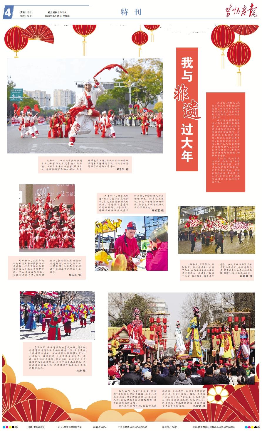 正月里,闹红火,我们不再止步于餐桌上的团圆,而是将目光投向那些流淌在岁月长河中的文化瑰宝,赴一场非遗之约。 我们看安塞腰鼓在遂宁街头敲响生命的律动,在清涧县城听陕北说书道尽世间百态,赏清涧道情婉转深情。我们在街头巷尾的喧闹里,观社火巡游祈愿平安;我们在童趣与匠心间,瞧手艺人吹出栩栩如生的吹糖人;我们更在长安夜色下,看徽州瞻淇鱼灯起伏翻腾,祈福年年有余。 这一路,我们虽多为旁观,却在“看”中读懂了传承的重量。非遗不仅仅是技艺的展演,更是年味的灵魂。且随我们的视角,看非遗、过大年,在传统中寻回那份最质朴、最热烈的中国年味。 大年初二,四川遂宁金街热闹非凡,安塞腰鼓非遗表演火热开演。鼓手们身着红白盛装,腰系红鼓,伴随铿锵节奏腾跃挥槌,红色绸带凌空飞舞,将陕北民俗的豪迈激情展现得淋漓尽致,为遂宁新春增添了浓郁的非遗年味。 郑乐乐 摄 大年初六,2026年陕北榆林过大年秧歌展演正式启幕。神木市代表队带来的百人陕北说书惊艳亮相。艺人身着喜庆红装、头戴白羊肚手巾,以铿锵鼓点、豪迈唱腔生动演绎非遗魅力,磅礴气势点燃全场氛围,为新春佳节增添了浓郁厚重的陕北民俗风情。 郑乐乐 摄 大年初一,西安昆明池·七夕公园沐浴在暖阳中,空气里弥漫着糖人的甜香。非遗匠人身着中式传统服饰,巧手翻飞,将融化的糖液塑成灵动的形象,身旁的糖人作品栩栩如生。游客驻足围观,非遗与年味交融的瞬间,老手艺在新春里焕发出鲜活的光彩。 常皓萱 摄 大年初七,夜幕降临,华灯初上。徽州瞻淇鱼灯来到了西安,在西安万象城一展非遗中国年味。瞻淇鱼灯起源于南宋,形似鲤鱼,寓意年年有余。在晚上的巡游活动中更是热闹非凡,伴随着鼓乐声,巨大的鱼灯在手中起伏翻腾,熠熠生辉,独具地方特色。 赵炜清 摄 春节期间,榆林清涧街头喜气融融,国家级非遗清涧道情与陕北秧歌轮番上演,为市民献上地道年味盛宴。婉转唱腔与铿锵锣鼓交织,彩扇翻飞、舞步豪迈,让非遗焕发新活力。现场,市民们驻足观赏、掌声不断,在浓浓的乡土风情里感受非遗魅力,处处洋溢着喜庆祥和、热闹温馨的新春气息,尽显传统年俗与地方文化的独特风采。 刘蔚 摄 马年春节,西安“皇城里·民乐园”步行街上锣鼓声阵阵,非遗社火热闹上演,演员脚蹬高跷,扮成戏曲人物,在高空踏着鼓点翩然起舞,与市民游客热情互动。 社火源于商周时期,旨在祈求风调雨顺、五谷丰登,后演变为民间娱乐形式,唐宋时盛行。据悉,正月初一到正月十五,“皇城里·民乐园”每天12场非遗社火表演,有高跷社火、芯子社火、舞龙舞狮社火、击鼓祈福等丰富多彩的活动。 巴新建 摄