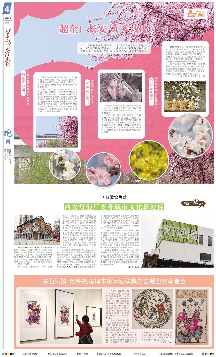 三月最要紧的事,就是赏春!今年西安暖春,花期比往年提前了一周左右,眼下桃花、玉兰已到最佳观赏期。现在就出发,追随春风的脚步,走进西安三月最动人的画卷。 桃花潭公园:开往春天的地铁与水岸桃林 西安春天最浪漫的打开方式,就是去桃花潭公园走一走。这里被誉为“开往春天的地铁”打卡点,当现代感的地铁列车从花海中穿行而过,都市的浪漫感瞬间拉满。 公园以浐河河道为轴,广阔面积让游人丝毫不觉拥挤。岸边柳树抽新芽,嫩黄点点如烟如雾。山桃花开得最为热烈,沿着潭岸肆意铺展,深红的、浅红的、雪白的,层层叠叠,将枝干裹成绚烂的花云 澄澈的潭水倒映着桃红柳绿,波光粼粼,行走在亲水栈道上,才能真正见识到“人面桃花相映红”的大场景。最佳观赏期从现在一直持续到4月上旬,是春日治愈大片的绝佳拍摄地。 兴庆宫公园:宫殿下的百花盛宴 兴庆宫公园的春天,是宫殿下的春天。这里承载着盛唐园林的气韵,飞檐斗拱因满目繁花而柔化了棱角,大气中透着温婉。 惊蛰过后,园内便热闹起来。早樱是瘦美人,花朵偏尖瘦轻盈;杏花圆润可人,花瓣白里透红;隆冬时节的蜡梅、梅花依然不败。花影摇曳,人声鼎沸,尽显皇家园林的春日雅致。穿梭花间身着唐装汉服的游客,从“旁观者”变为“画中人”,衣袂翩跹与春色相融,成为最动人的风景。 西安卧龙禅寺:邂逅满树玉兰的禅意瞬间 如果你想寻觅一处闹中取静的赏花地,那一定是卧龙禅寺。这座始建于东汉汉灵帝时期的古刹大隐隐于市,第四进院落大悲殿前,两株白玉兰静静绽放,青砖黛瓦为底,玉兰洁白如雪,阳光洒落,玉兰的影子落在经文墙上,花影与经文交错,满院都是说不尽的禅意。 古寺紧邻西安碑林博物馆,沿着城墙根儿还可漫步书院门,是一条极具人文气息的春游线路。喧嚣被挡在门外,花因古寺而更显灵动,寺因玉兰而愈发清幽。静立花前,便能与春天对坐。 全媒体记者 常皓萱 焦一鹤