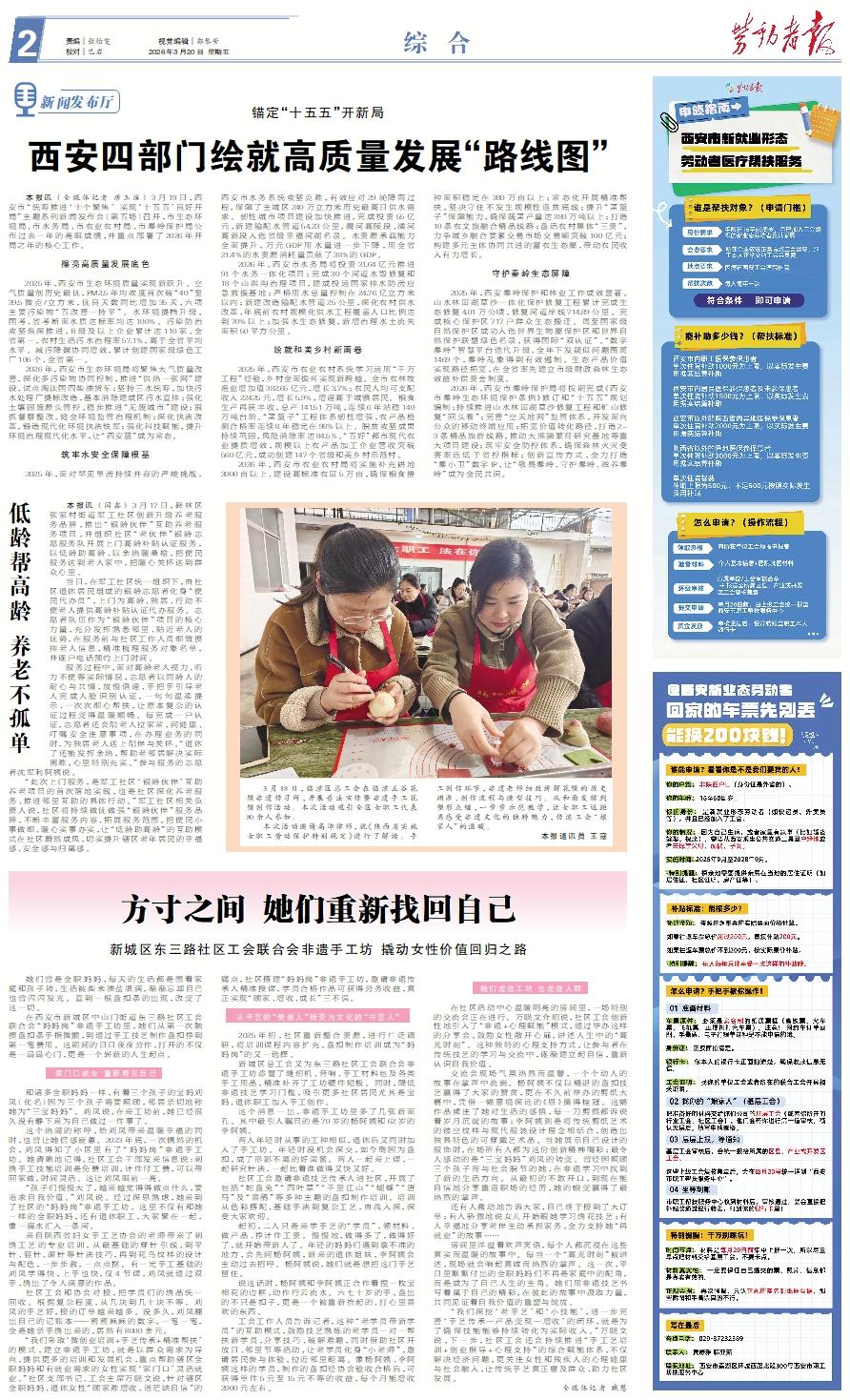 她们曾是全职妈妈,每天的生活都是围着家庭和孩子转,生活被柴米油盐填满,渐渐忘却自己也曾闪闪发光。直到一根盘扣条的出现,改变了这一切。 在西安市新城区中山门街道东三路社区工会联合会“妈妈岗”非遗手工坊里,她们从第一次触摸盘扣条手指微颤,到通过手工技艺制作盘扣挣到第一笔费用。这期间的日日夜夜劳作,打开的不仅是一扇扇心门,更是一个崭新的人生起点。家门口就业 重新看见自己 和诸多全职妈妈一样,有着三个孩子的宝妈刘凤(化名)因为三个孩子需要照顾,邻居亲切地称她为“三宝妈妈”。刘凤说,在来工坊前,她已经很久没有静下来为自己做过一件事了。 这个热闹的称呼,给刘凤带来温暖幸福的同时,也曾让她倍感疲惫。2023年底,一次偶然的机会,刘凤得知了小区里有了“妈妈岗”非遗手工坊。她清晰地记得,社区工会联合会干部发来信息说:刺绣手工技能培训是免费培训,计件付工费,可以带回家做,时间灵活。这让刘凤眼前一亮。 “孩子们慢慢大了,越来越觉得得做点什么,要追求自我价值。”刘凤说。经过深思熟虑,她来到了社区的“妈妈岗”非遗手工坊。这里不仅有和她一样的全职妈妈,还有退休职工,大家聚在一起,像一滴水汇入一条河。 来自陕西省妇女手工艺协会的老师带来了刺绣工艺的专业培训,从最基础的穿针引线,到平针、套针、滚针等针法技巧,再到花鸟纹样的设计与配色,一步步教,一点点抠。有一定手工基础的刘凤学得快,上手也快,仅4节课,刘凤就通过双手,绣出了令人满意的作品。 社区工会联合会和协会对接,把学员们的绣品统一回收。根据复杂程度,从几块到几十块不等。刘凤的手艺好,接的订单越来越多。没多久,刘凤翻出自己的记账本——密密麻麻的数字,一笔一笔,全是她亲手绣出来的,居然有8000余元。 “我们采取‘微创业培训+手艺传承+精准帮扶’的模式,建立非遗手工坊,就是以群众需求为导向,提供更多的培训和发展机会,重点帮助辖区全职妈妈和有就业需求的女性实现‘家门口’灵活就业。”社区支部书记、工会主席万晓文说,针对辖区全职妈妈、退休女性“顾家难增收、迷茫缺自信”的痛点,社区搭建“妈妈岗”非遗手工坊,邀请非遗传承人精准授课,学员合格作品可获得劳务收益,真正实现“顾家、增收、成长”三不误。从手艺的“受益人”转变为文化的“守艺人” 2025年初,社区重新整合资源,进行广泛调研,将培训课程内容扩充,盘扣制作培训成为“妈妈岗”的又一选择。 新城区总工会又为东三路社区工会联合会非遗手工坊添置了缝纫机、音响、手工材料包及各类手工用品,精准补齐了工坊硬件短板。同时,降低非遗技艺学习门槛,吸引更多社区居民尤其是宝妈、退休职工加入手工创作。 这个消息一出,非遗手工坊里多了几张新面孔。其中最引人瞩目的是70岁的杨阿姨和62岁的李阿姨。 两人年轻时从事的工种相似,退休后又同时加入了手工坊。年轻时没机会深交,如今倒因为盘扣,成了形影不离的好闺蜜。两人一起来上课,一起研究针法,一起比着谁做得又快又好。 社区工会联合会邀请非遗技艺传承人进社区,开展了包括“蛇盘兔”“四叶草”“千里江山”“蝴蝶”“唐马”及“喜鹊”等多种主题的盘扣制作培训。培训从色彩搭配、基础手法到复杂工艺,由浅入深,深受大家欢迎。 起初,二人只是来学手艺的“学员”,领材料、做产品、挣计件工资。慢慢地,做得多了,做得好了,就开始带新人了。年轻的妈妈们遇到拿不准的地方,会先问杨阿姨,新来的退休姐妹,李阿姨会主动过去招呼。杨阿姨说,她们就是想把这门手艺留住。 说这话时,杨阿姨和李阿姨正合作着捏一枚宝相花的边框,动作行云流水。六七十岁的手,盘出的不只是扣子,更是一个被重新拾起的、打心里喜欢的东西。 社区工会联合会工作人员告诉记者,这种“老学员带新学员”的互助模式,鼓励技艺熟练的老学员一对一帮扶新学员,分享技巧、破解难题,同时借助社区开放日、邻里节等活动,让老学员化身“小老师”,邀请居民参与体验,拉近邻里距离。像杨阿姨、李阿姨这样的学员,制作的盘扣经协会验收合格后,可获得单件5元至15元不等的收益,每个月能增收2000元左右。她们走进工坊 也走进人群 在社区活动中心温暖明亮的房间里,一场特别的交流会正在进行。万晓文介绍说,社区工会联合会创新性地引入了“非遗+心理赋能”模式,通过举办这样的分享会,鼓励女性敞开心扉,讲述人生中的“高光时刻”。这种独特的心理支持方式,让参与者在传统技艺的学习与交流中,逐渐建立起自信,重新认识自我价值。 交流会现场气氛热烈而温馨,一个个动人的故事在掌声中流淌。杨阿姨不仅以精湛的盘扣技艺赢得了大家的赞赏,更在不久前举办的剪纸大赛中,凭借一幅意境深远的《思》摘得桂冠。这幅作品倾注了她对生活的感悟,每一刀剪痕都诉说着岁月沉淀的故事;李阿姨则是将传统剪纸艺术的镂空纹样与现代服装设计理念相结合,创造出独具特色的可穿戴艺术品。当她展示自己设计的服饰时,在场所有人都为这份创新精神喝彩;最令人感动的是“三宝妈妈”刘凤的转变。曾经因照顾三个孩子而与社会脱节的她,在非遗学习中找到了新的生活方向。从最初的不敢开口,到现在能自信地分享重返职场的经历,她的蜕变赢得了最热烈的掌声。 还有人激动