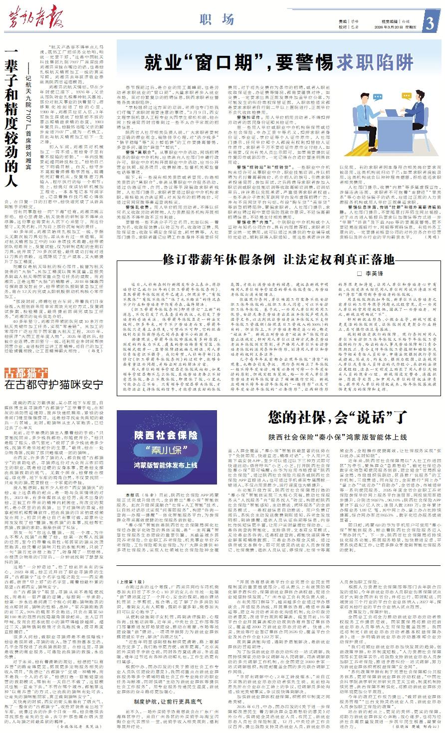 本报讯 (任奢) 目前,陕西社会保险APP鸿蒙版正式完成升级迭代,全新推出“秦小保”智能体服务。此次升级深度融合“社保+人工智能”技术,以自然对话形式实现“问答即服务”,构建“咨询—查询—办理—提醒”一体化智能服务平台,为参保群众带来高效便捷的社保服务新体验。 “秦小保”智能体是陕西省社会保障局深化社保经办数字化转型的具体实践,是“一主两翼”智慧社保服务生态建设的重要引擎。其涵盖城乡居民养老保险、企业职工养老保险、机关事业单位养老保险、工伤保险和失业保险,为广大群众提供40多项社保服务,实现人社领域社会保险险种全覆盖、人群全覆盖。“秦小保”智能体最显著的优势在于“免装即用、快速直达、精准对话”。个人用户无需下载安装APP,至少可以通过以下三种方式即可快速启动:语音呼叫“小艺、小艺,打开陕西社会保险秦小保”即可唤醒;在华为应用市场搜索“陕西社会保险”,通过陕西社会保险元服务或陕西社会保险APP直接进入;也可通过手机桌面专属图标一键进入,不仅占用资源少,运行速度也大幅提升。 在功能升级方面,陕西省社会保障局打造的“秦小保”智能体实现三大核心突破,推动社保服务从“人找服务”向“服务找人”转变,构建起陕西社会保险“智能感知、主动推送、闭环服务”的全新服务模式。一是权益信息自动推送。用户免费订阅后,系统会主动发送缴费到账通知、养老金发放明细、到龄提醒、退休人员认证临期等信息,内容比传统短信更丰富,让用户实时掌握社保动态。二是咨询查询智能化。支持语音、文本双交互模式,无论是业务咨询,还是权益查询,都能快速获得专业解答和精准数据。三是业务办理全天候。通过语音或文本指令,即可完成灵活就业人员参保登记、社保缴费、退休人员认证、停续保、社保卡等高频业务,全程操作便捷高效,让社保服务实现“张口就办、实时知晓”。 近年来,陕西省社会保障局以“人社工作进园区”为牵引,聚焦群众“急难愁盼”,锚定社保经办数字化转型和便民服务创新,建立健全“省局抓总谋全局、市级组织强联动、区县推广优服务”的工作机制,三级贯通,同向发力,全面推行“网上办”“掌上办”“就近办”“自助办”,全省通办、市域通审等一系列便民服务。2025年度全省企业职工养老保险参保单位网上服务平台注册率、网报使用率稳步提升,分别达98.67%、96.10%;陕西社会保险APP累计下载5.7亿人次,注册人数2269万;全年累计办理业务1.88亿 笔,其中网上办、掌上办占比持续提高,综合网办率达86.53% ,数字化经办服务成效显著。 即日起,鸿蒙6.0的华为手机用户可使用“秦小保”智能体服务,标志着陕西社会保险服务迈入“智办时代”。下一步,陕西省社会保障局将持续优化服务功能,拓展服务场景,加快推进安卓、苹果系统适配工作,让更多群众享受到智能社保服务的便利。