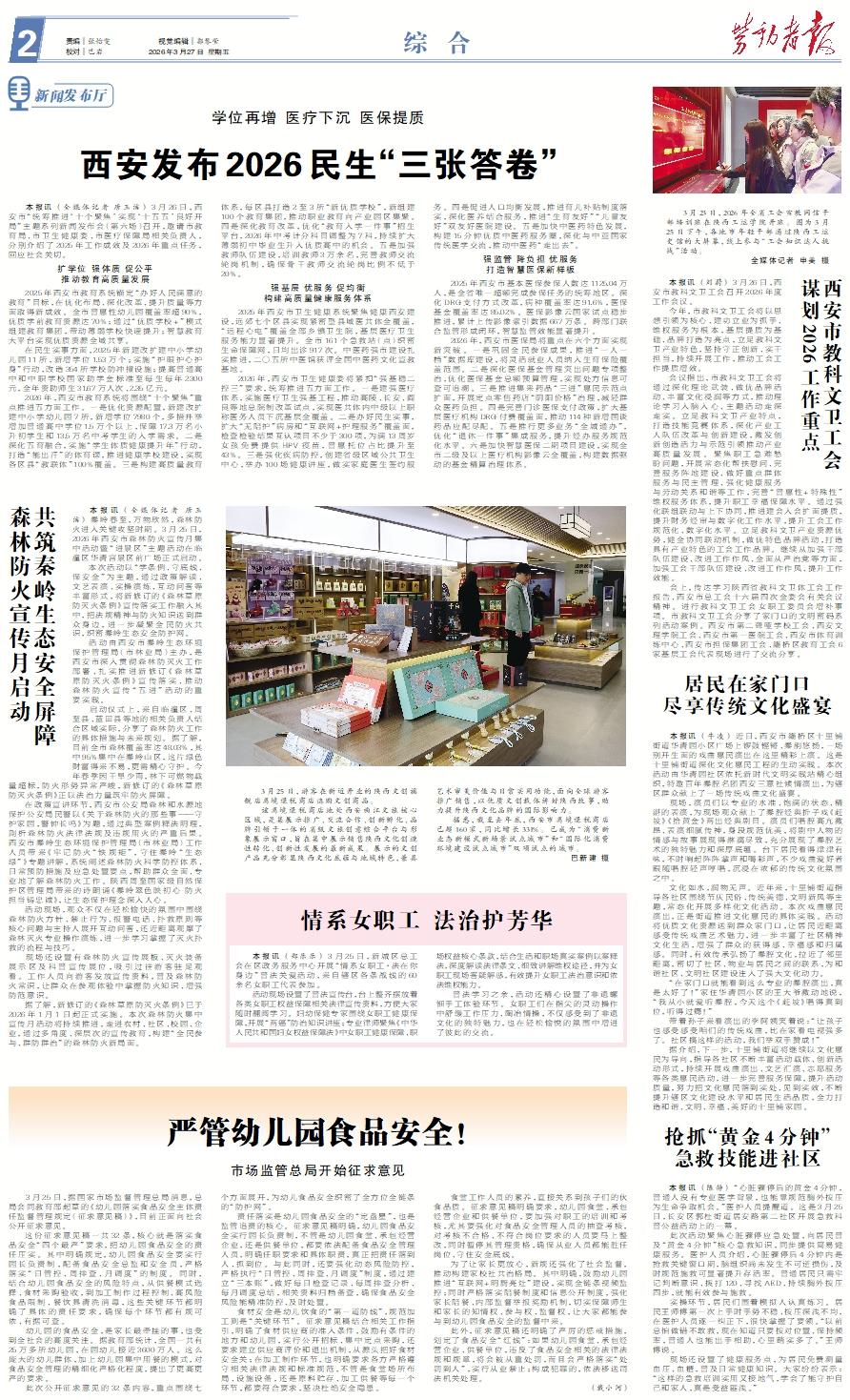 本报讯 (全媒体记者 唐玉洁) 3月26日,西安市“统筹推进‘十个聚焦’实现‘十五五’良好开局”主题系列新闻发布会(第六场)召开,邀请市教育局、市卫生健康委、市医疗保障局相关负责人,分别介绍了2025年工作成效及2026年重点任务,回应社会关切。扩学位 强体质 促公平推动教育高质量发展 2025年西安市教育系统锚定“办好人民满意的教育”目标,在优化布局、深化改革、提升质量等方面取得新成效。全市普惠性幼儿园覆盖率超90%,优质学前教育资源达70%;通过“优质学校+”模式组建教育集团,带动薄弱学校快速提升;智慧教育大平台实现优质资源全域共享。 在民生实事方面,2025年新建改扩建中小学幼儿园11所,新增学位1.53万个;实施“护眼护心护身”行动,改造354所学校防冲撞设施;提高普通高中和中职学校国家助学金标准至每生每年2300元,全年资助师生31.67万人次、2.35亿元。 2026年,西安市教育系统将围绕“十个聚焦”重点推进五方面工作。一是优化资源配置,新建改扩建中小学幼儿园7所,新增学位7980个,多措并举增加普通高中学位1.5万个以上,保障17.3万名小升初学生和13.5万名中考学生的入学需求。二是深化五育融合,实施“学生体质健康提升年”行动,打造“能出汗”的体育课,推进健康学校建设,实现各区县“教联体”100%覆盖。三是构建高质量教育体系,每区县打造2至3所“新优质学校”,新组建100个教育集团,推动职业教育向产业园区集聚。四是深化教育改革,优化“教育入学一件事”招生平台,2026年中考计分科目调整为7科,持续扩大薄弱初中毕业生升入优质高中的机会。五是加强教师队伍建设,培训教师3万余名,完善教师交流轮岗机制,确保骨干教师交流轮岗比例不低于20%。强基层 优服务 促均衡构建高质量健康服务体系 2025年西安市卫生健康系统聚焦健康西安建设,远郊七个区县实现紧密型县域医共体全覆盖,“远程心电”覆盖全部乡镇卫生院,基层医疗卫生服务能力显著提升。全市161个急救站(点)织密生命保障网,日均出诊917次。中医药强市建设扎实推进,二〇五所中医馆获评全国中医药文化宣教基地。 2026年,西安市卫生健康委将紧扣“强基稳二控三”要求,统筹推进五方面工作。一是建强医疗体系,实施医疗卫生强基工程,推动高陵、长安、阎良等地总院制改革试点,实现医共体内中级以上职称医务人员下沉基层全覆盖。二是办好民生实事,扩大“无陪护”病房和“互联网+护理服务”覆盖面,检查检验结果互认项目不少于300项,为满13周岁女孩免费提供HPV疫苗,普惠托位占比提升至43%。三是强化疾病防控,创建省级区域公共卫生中心,举办100场健康讲座,做实家庭医生签约服务。四是促进人口均衡发展,推进育儿补贴制度落实,深化医养结合服务,推进“生育友好”“儿童友好”双友好医院建设。五是加快中医药特色发展,构建15分钟优质中医药服务圈,深化与中亚国家传统医学交流,推动中医药“走出去”。强监管 降负担 优服务打造智慧医保新样板 2025年西安市基本医保参保人数达1125.04万人,是全省唯一超额完成参保任务的统筹地区。深化DRG支付方式改革,病种覆盖率达91.6%,医保基金覆盖率达85.02%。医保影像云国家试点稳步推进,累计上传影像索引数据667万条。跨部门联合监管形成闭环,智慧监管效能显著提升。 2026年,西安市医保局将重点在六个方面实现新突破。一是巩固全民参保成果,推进“一人一档”数据库建设,将灵活就业人员纳入生育保险覆盖范围。二是深化医保基金管理突出问题专项整治,优化医保基金总额预算管理,实现处方信息可查可追溯。三是推进集采药品“三进”惠民示范点扩面,开展定点零售药店“阴阳价格”治理,减轻群众医药负担。四是完善门诊医保支付政策,扩大基层医疗机构DRG付费覆盖面,推动114种新增国谈药品应配尽配。五是推行更多业务“全城通办”,优化“退休一件事”集成服务,提升经办服务规范化水平。六是加快智慧医保二期项目建设,实现全市二级及以上医疗机构影像云全覆盖,构建数据驱动的基金精算治理体系。