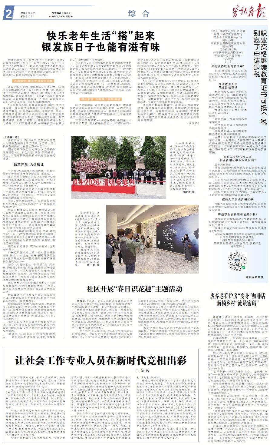 晨练有健身搭子相伴,学艺有兴趣搭子同行,居家有互助搭子照应……如今在西安,“搭子”不再是年轻人的专属词汇,越来越多的老年人跳出传统养老模式,以“搭子”为纽带,结识志同道合的伙伴,把平淡的晚年生活过得热闹又精彩,走出了一条接地气、有温度的银发新生活之路。兴趣做伴 晚年生活玩出花样 清晨的街心花园,微风拂面,鸟语花香。65岁的张师傅和他的毽子搭子们早已围成一圈,彩色的毽子在空中来回翻飞,脚尖轻踢、脚跟巧接,动作娴熟流畅,欢声笑语不断。这支毽子小队已经组建两年多,从最初张师傅独自一人锻炼,到如今固定有七八位老人结伴,大家每天准时相约。 “以前退休在家,没事就看电视、遛弯,日子过得冷清。自从有了这群搭子,每天都有盼头。”张师傅笑着说,队员们年龄相仿,志趣相投,不光一起踢毽子健身,还会交流养生心得、分享生活琐事,原本孤单的退休时光,变得充实又有趣。除了毽子搭子,太极、广场舞、合唱等各类兴趣小队比比皆是,老人们因爱好相聚,在切磋技艺中收获快乐,在相伴相处中拉近情谊。 在小区里,同样也能找到因兴趣结缘的老年搭子。72岁的梁阿姨,长年受颈椎问题困扰,生活单调乏味。加入社区乒乓球队后,她结识了一群老姐妹,不仅跟着大家学打球、练身体,还凭借自己的健身经验,自创了颈椎康复保健操,带着十几名队员一起练习,从普通学员变成了队伍里的教练员。 如今,各个居民社区里,都有老年自治社团。大家在这里找到专属搭子,一起学书法、画国画、吹乐器,周末还结伴逛城墙、游周边,用兴趣填满闲暇时光,彻底摆脱了“退休即养老”的沉闷,活出了晚年的别样风采。暖心相守 互助搭子温情满满 除了兴趣相伴,实用贴心的互助搭子,更是成为西安老年人晚年生活的暖心依靠。在西安不少社区,低龄老人帮扶高龄老人、独居老人结伴相守的场景随处可见,“搭子式”互助养老,让老年生活多了一份安心与温暖。 75岁的田阿姨和68岁的白阿姨,是同住一个单元的老邻居,两人都是独居老人,年轻时在同一单位工作,退休后往来愈发密切,成了彼此最贴心的生活搭子。田阿姨腿脚不便,常年无法出门,白阿姨视力欠佳,但两人互补互助,配合默契。白阿姨每天上门看望这位“田大姐”,帮她买菜、取药、收拾家务;田阿姨则陪着白阿姨聊天解闷,给她讲身边趣事,平日里互相照应,遇事互相帮忙,不是亲人却胜似亲人。 “有了这个老姐妹搭子,心里踏实多了,再也不用怕突发情况没人管,平时也有人说说话,日子过得暖心。”田阿姨感慨道。像这样的互助搭子,在西安各个社区十分普遍,有的老人组成买菜搭子,结伴逛菜市场,互相帮忙砍价、拎菜;有的组成就医搭子,陪同去医院挂号、检查;还有的组成居家搭子,一起搭伙做饭,凑份子吃饭,告别独自吃饭的冷清,在烟火气中感受陪伴的温暖。 从公园广场到社区课堂,从街头巷尾到居家邻里,各式各样的老年搭子,串联起西安银发族的快乐生活。这种简单纯粹、志趣相投、互帮互助的相处模式,既破解了老年人独居孤单的难题,又丰富了晚年精神文化生活,让老年生活不再单调孤寂。 (龚伟芳)