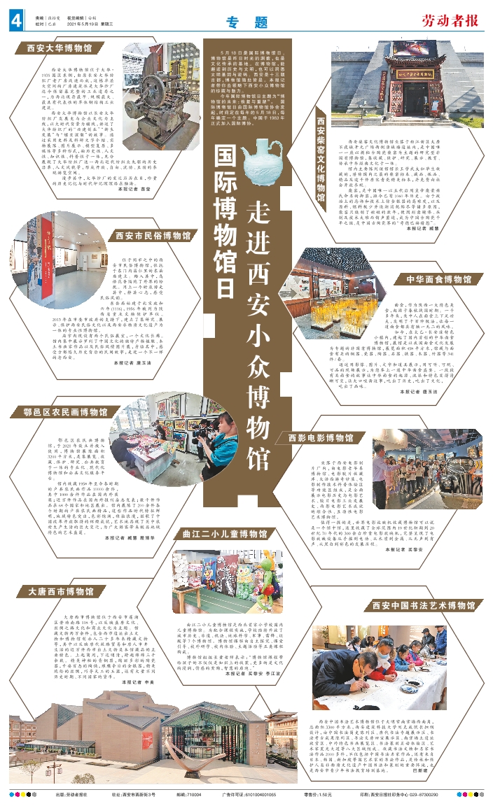 5月18日是国际博物馆日。博物馆是昨日时光的渊薮,也是文化传承的基地。在博物馆,能邂逅到历史与文明,也可以洞悉文明基因与密码。西安是十三朝古都,博物馆随处皆是。本报记者带你去领略下西安小众博物馆的珍藏与魅力。 今年国际博物馆日主题为“博物馆的未来:恢复与重塑”。 国际博物馆日由国际博物馆协会发起,时间定在每年的5月18日,每年确定一个主题。中国于1983年正式加入国际博协。