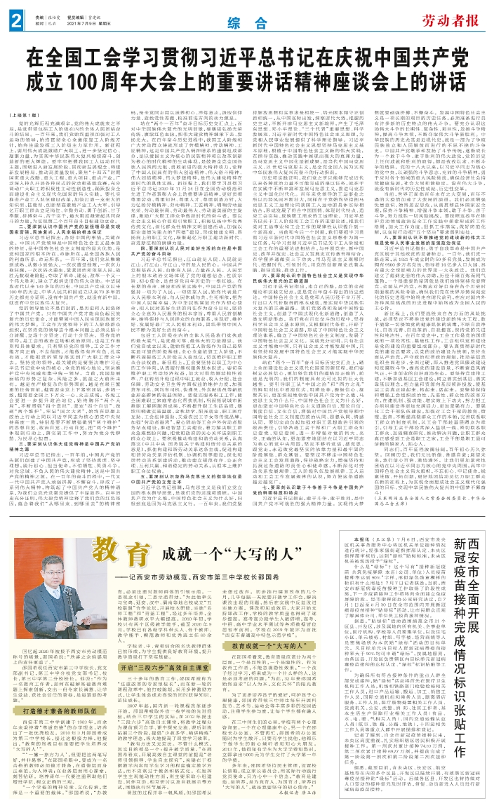 回忆起2020年被授予西安市劳动模范称号的场景,邵国希说:“欣喜之余倍感肩上的责任更重了。” 邵国希现任西安市第三中学校长、党支部副书记,第三中学分校党支部书记、校长,第三中学第二分校校长。他说:“作为一名教育工作者,如何在破解基础教育难题上探索创新,交出一份令家长满意、让学生受益、获社会信任的答卷,是最紧要的考题。” 打造德才兼备的教师队伍 西安市第三中学创建于1903年,百余年来秉持着“尊道贵德”的办学理念,培养出了一批优秀校友。2010年3月邵国希成为第三中学校长,接过这根接力棒,他提出,“教育的终极目标是要把学生培养成‘大写的人’”。 “‘一撇一捺方为人’,但要把这两笔写好,并非易事。”在邵国希眼中,要成为一名合格的教师必须德才兼备,在道德层面身正垂范,为人师表;在业务层面用心探索,刻苦钻研。培养青年一代要注重帮助他们增进学识、树立正确的三观。 “一个学校的精神传承、文化传承,老师是一个重要的载体。”邵国希说,“办教育,必须注重对教师群体的引领示范。一是观念引领,二是示范带动。”为此他牵头与宝鸡、延安、汉中、渭南等地名校成立“五校联盟”合作论坛,开展校本研修,实施“名师工程”和“青蓝工程”,经过多年培养,全体教师教研水平大幅提高。2010年初,学校只有两个区级教学能手,截至2020年9月,学校已有各级学科带头人、骨干教师、教学能手、模范教师和优秀班主任60余人。 学校老、中、青相结合的名优教师群体已然形成,为学生提供良好教育环境,提升教学质量打下坚实基础。 开启“三段六步”高效自主课堂 三十多年的教育工作,邵国希被称为“注重改革的专家型校长”,而在新一轮的课程改革中,他打破陈规,采用多种激励方式,让学生体会成功喜悦的同时获得知识,茁壮成长。 2007年起,国内新一轮课程改革逐步开始。邵国希吸取外省一些学校的先进经验,结合三中学生的实际,在 2012年提出“三段六步”高效自主课堂,将教学过程分为课前预习自学、课中探究交流、课后训练拓展三个阶段,提倡“少教多学、精讲精练”的教学理念,极大地提高了课堂学习效率。 “教有方法又无定法。不管什么模式,其实目的都是一个:提升教学质量。”在邵国希看来,开展高效自主课堂的前提是“老师引领指导、学生自主探究”,关键在于根据教学内容和学生学习的程度确定教学方法,而不应该过于教条和格式化。在发挥学生主观能动性方面,则主要采取小组建设、同伴互助、相互研讨以及自我展示等方式,围绕执行环节展开。 课改的过程并非一帆风顺,但邵国希从未想过放弃。初步推行课堂改革的几个月,几乎每隔一天就要开教学工作会,解决课改出现的问题,然后在实践中反复改进实施方案。课改初见成效后,大家开始支持课改工作,学校的教学质量也得到了逐步提高。高考高分段学生人数倍增,高考、中招、高中学业水平测试等各项数据皆位居省市前列。学校在2019年被评为首批“西安市普通高中特色示范学校”。 教育成就一个“大写的人” 在邵国希看来,教育质量应该分为两个层面,一个是显性的,一个是隐性的。作为教育工作者,不能忽视隐性效果,“一个孩子经过学习,将来成为一个什么样的人,这是必须考虑的问题。”为此,32年来邵国希始终追求“以人为本,文化关怀”的阳光教育。 为了更多培养孩子的爱好,呵护孩子心理健康,邵国希带领三中师生每年开展科技节、艺术节、运动会等丰富多彩的校园活动,注重学生参与度,让每个学生都有融入感。 在三中师生们的心里,学校有两个心理咨询室,一个在心理健康中心,另一个在邵校长办公室。不管再忙,邵国希的办公室随时为学生敞开,只要有学生找他,他都乐于做学生的耐心倾听者和知心大朋友。2013年,他得知有学生为大学学费犯愁时,立即拿出5000元为学生交付了大学第一年的学费。 多年来,邵国希坚持民主管理,设置校长信箱,成立家长委员会,用实际行动践行党员使命,只为心中一个信念,“教育是建造、是培养,是为党育人、为国育才,培养出‘大写的人’,就是我要坚守的初心使命。” 本报记者 唐玉洁