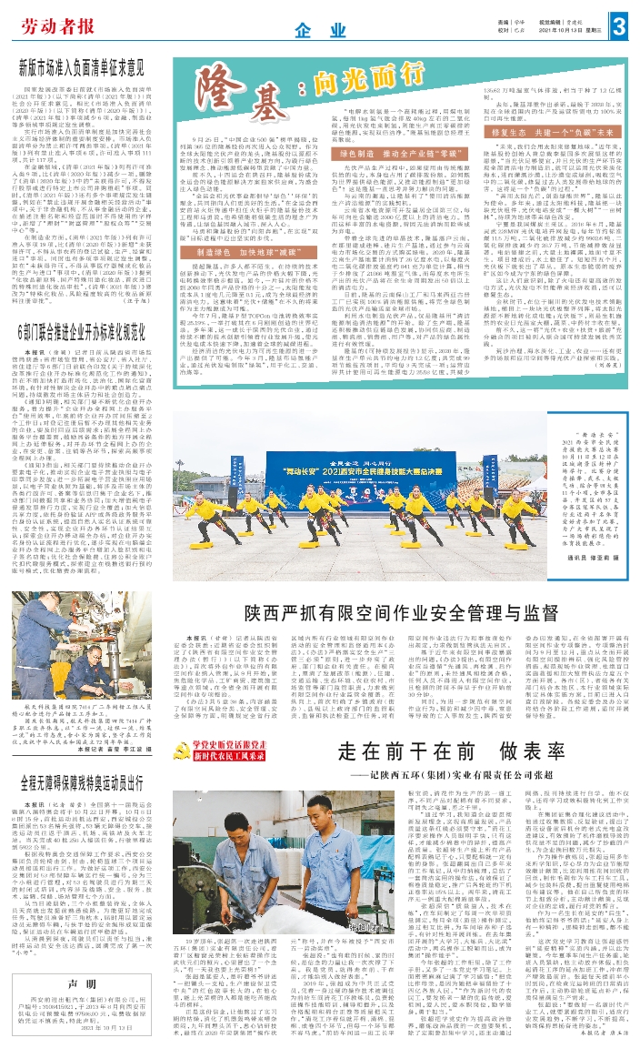 9月25日,“中国企业500强”榜单揭晓,位列第365位的隆基股份再次进入公众视野。作为全球太阳能光伏产业的龙头,隆基股份以源源不断的技术创新引领着产业发展方向,为践行绿色发展理念、推动能源低碳转型贡献了中国力量。 前不久,十四运会在陕召开,隆基股份成为全运会的绿色能源解决方案独家供应商,为盛会注入绿色动能。 “全运会和光伏事业都倡导‘绿色’‘环保’的理念,共同指向人们更美好的生活。”在全运会西安首站火炬传递中担任火炬手的隆基股份技术工程师马勇说,他希望能将低碳生活的理念广为传递,让绿色基因融入城市、深入人心。 马勇和隆基股份的“向阳奔跑”,在实现“双碳”目标进程中迈出坚实的步伐。 制造绿色 加快地球“减碳” 提起隆基,许多人都不陌生。在持续的技术创新推动下,光伏发电产品的价格大幅下降,光电转换效率稳步提高。如今,一片硅片的价格不到2008年同类产品价格的十分之一,太阳能发电成本从1度电几元降至0.1元,成为全球最经济的清洁电力。这意味着“光伏+储能”在不久的将来作为主力能源成为可能。 今年7月,隆基P型TOPCon电池转换效率实现25.19%,一举打破其在6月刚刚创造的世界纪录。多年来,这一成长于陕西的光伏企业,通过持续不断的技术创新引领着行业发展升级,使光伏发电成本快速下降,加速着全球的减碳进程。 经济清洁的光伏电力为可再生能源的进一步产出提供了可能。今年3月,隆基布局氢能产业,通过光伏发电制取“绿氢”,用于化工、交通、冶炼等。 “电解水制氢是一个高耗能过程,用煤电制氢,每制1kg氢气就会排放40kg左右的二氧化碳,用光伏发电来制氢,则能生产真正零碳排的绿色能源,实现双倍洁净。”隆基氢能副总经理王英歌说。 绿色制造 推动全产业链“零碳” 光伏产品生产过程中,如果使用由传统能源供给的电力,本身也占用了碳排放份额。如何既为世界提供绿色能源,又推动能源制造“更加绿色”?这是隆基一直思考并努力解决的问题。 与云南的邂逅,让隆基有了“使用清洁能源生产清洁能源”的实践契机。 云南省水电资源可开发量居全国第三位,每年可向社会输送2000亿度以上的清洁电力。然而这样丰富的水电资源,曾因无法消纳而险些成为弃电。 带着全球先进的单晶技术,隆基落户云南,在那里建成硅棒、硅片生产基地,通过参与云南电力市场化交易的方式购买绿电。2020年,隆基云南生产基地累计消纳了26亿度水电,以每度火电二氧化碳排放强度约841克为单位计算,相当于少排放了21866吨温室气体,而每度水电所生产出的光伏产品将在全生命周期发出50倍以上的清洁电力。 目前,隆基的云南保山工厂和马来西亚古晋工厂已实现100%清洁能源供能,将完全绿色制造的光伏产品输送至全球市场。 利用水电制造光伏产品,仅是隆基用“清洁能源制造清洁能源”的开始。除了生产端,隆基还积极推动供应链绿色发展,协同供应商、制造商、物流商、销售商、用户等,对产品的绿色属性进行有效管理。 隆基的《可持续发展报告》显示,2020年,隆基在生产单元共节约电力约1.2亿度;共完成99项节能技改项目,平均每3天完成一项;运营边界共计使用可再生能源电力25.58亿度,共减少135.62万吨温室气体排放,相当于种了1.2亿棵树。 去年,隆基郑重作出承诺,最晚于2028年,实现在全球范围内的生产及运营所需电力100%来自可再生能源。 修复生态 共建一个“负碳”未来 “未来,我们会用太阳来修复地球。”近年来,隆基股份创始人兼总裁李振国多次展望这样的愿景,“当光伏足够便宜,并且光伏的生产环节实现全部清洁电力制造后,就可以运用光伏来淡化海水,进而灌溉沙漠,让沙漠变成绿洲,吸收空气中的二氧化碳,修复过去人类发展带给地球的伤害。这将是一个‘负碳’的过程。” “善用太阳光芒,创造绿能世界”,隆基以此为使命。多年来,通过太阳能科技,隆基把一块块光伏组件、光伏电站变成“一棵大树”“一亩树林”,持续为地球带来绿色改变。 宁夏是我国煤炭主采区。2018年6月,隆基灵武228MW光伏电站并网发电,每年节约标准煤11.5万吨,二氧化硫排放减少约9902.6吨、二氧化碳排放减少约28.7万吨,节能减排效益显著。电站修建之前,大量土地裸露,地面寸草不生。项目建成后,水土稳住了。短短四五个月,光伏板下就长出了草丛。原本生态脆弱的废弃矿区如今成为宁东的绿色屏障。 这让人们意识到,除了火电还有更高效的发电方式,光伏发电不但能带来经济收益,还可以修复生态。 金秋时节,在位于铜川的光伏发电技术领跑基地,梯田上一块块光伏板整齐列阵,将太阳光源源不断地转化成电能;光伏板下,则是生机盎然的农业日光温室大棚,蔬菜、中药材丰收在望。 前不久,这一将“光伏+农业+扶贫+旅游”充分融合的项目被列入联合国可持续发展优秀实践。 荒沙治理、海水淡化、工业、农业……还有更多的场景和应用空间等待光伏产业探索和实践。 (刘居星)