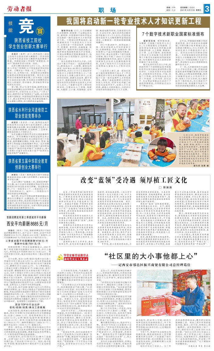 本报讯(独萍)近日,陕西省第二届技工院校学生创业创新大赛暨第二届全国技工院校学生创业创新大赛陕西选拔赛落下帷幕。西安航天技工学校的“筑梦航天·红光行”航天研学项目获得一等奖。 此次大赛由陕西省人社厅主办。来自全省15所技工院校的19个创业创新项目同台比拼。大赛评出一等奖1名、二等奖2名、三等奖3名、优秀奖9名。获奖项目可免除反担保要求获得创业担保贷款。排名前13位的项目将被推荐参加第二届全国技工院校学生创业创新大赛,所有参加全国赛的项目将在入驻园区、培训辅导、资金扶持等方面得到优先支持。 据了解,经过70多年发展,陕西省技工院校发展规模位居全国前列。全省技工院校达到147所,在校学生18万余人。“十四五”期间,陕西将打造“陕西技工”品牌,大力培养支撑中国制造、中国创造的高素质技术技能人才,使无业者有业可就、有业者技能提升、从业者收入增加,助力陕西高质量发展。