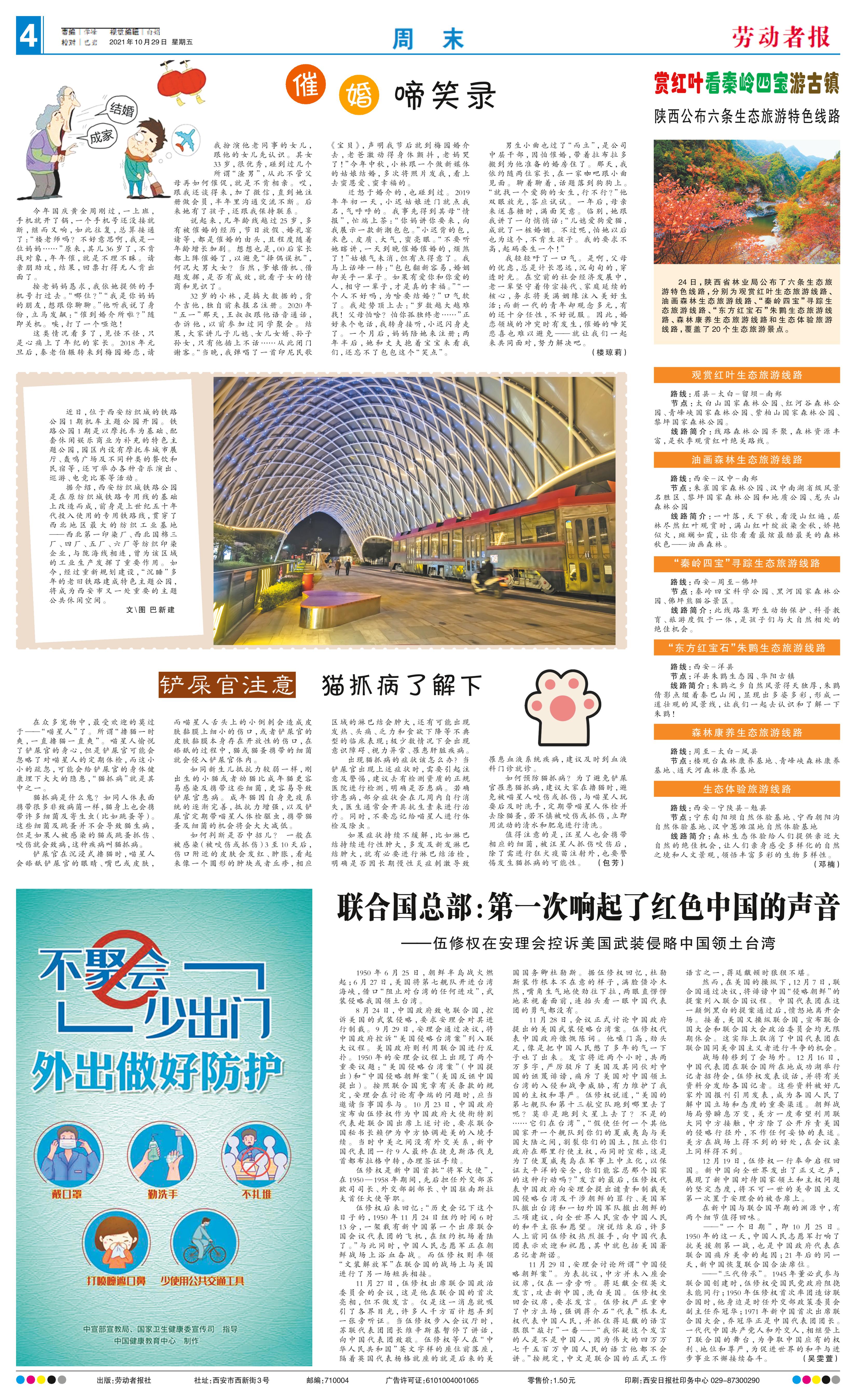 24日,陕西省林业局公布了六条生态旅游特色线路,分别为观赏红叶生态旅游线路、油画森林生态旅游线路、“秦岭四宝”寻踪生态旅游线路、“东方红宝石”朱鹮生态旅游线路、森林康养生态旅游线路和生态体验旅游线路,覆盖了20个生态旅游景点。 观赏红叶生态旅游线路 路线:眉县-太白-留坝-南郑 节点:太白山国家森林公园、红河谷森林公园、青峰峡国家森林公园、紫柏山国家森林公园、黎坪国家森林公园。 线路简介:线路森林公园齐聚,森林资源丰富,是秋季观赏红叶绝美路线。 油画森林生态旅游线路 路线:西安-汉中-南郑 节点:朱雀国家森林公园、汉中南湖省级风景名胜区、黎坪国家森林公园和地质公园、龙头山森林公园 线路简介:一叶落,天下秋,看漫山红遍,层林尽然红叶观赏时,满山红叶绽放染金秋,娇艳似火,斑斓如霞,让你看看最炫最酷最美的森林秋色——油画森林。 “秦岭四宝”寻踪生态旅游线路 路线:西安-周至-佛坪 节点:秦岭四宝科学公园、黑河国家森林公园、佛坪熊猫谷景区。 线路简介:此线路集野生动物保护、科普教育、旅游度假于一体,是孩子们与大自然相处的绝佳机会。 “东方红宝石”朱鹮生态旅游线路 路线:西安-洋县 节点:洋县朱鹮生态园、华阳古镇 线路简介:朱鹮之乡自然风景得天独厚,朱鹮倩影点缀着秦巴山间,显现出多姿多彩,形成一道壮观的风景线,让我们一起去认识和了解一下朱鹮! 森林康养生态旅游线路 路线:周至-太白-凤县 节点:楼观台森林康养基地、青峰峡森林康养基地、通天河森林康养基地 生态体验旅游线路 路线:西安-宁陕县-勉县 节点:宁东旬阳坝自然体验基地、宁西朝阳沟自然体验基地、汉中葱滩湿地自然体验基地 线路简介:森林生态体验给人们提供亲近大自然的绝佳机会,让人们亲身感受多样化的自然之境和人文景观,领悟丰富多彩的生物多样性。 (邓楠)
