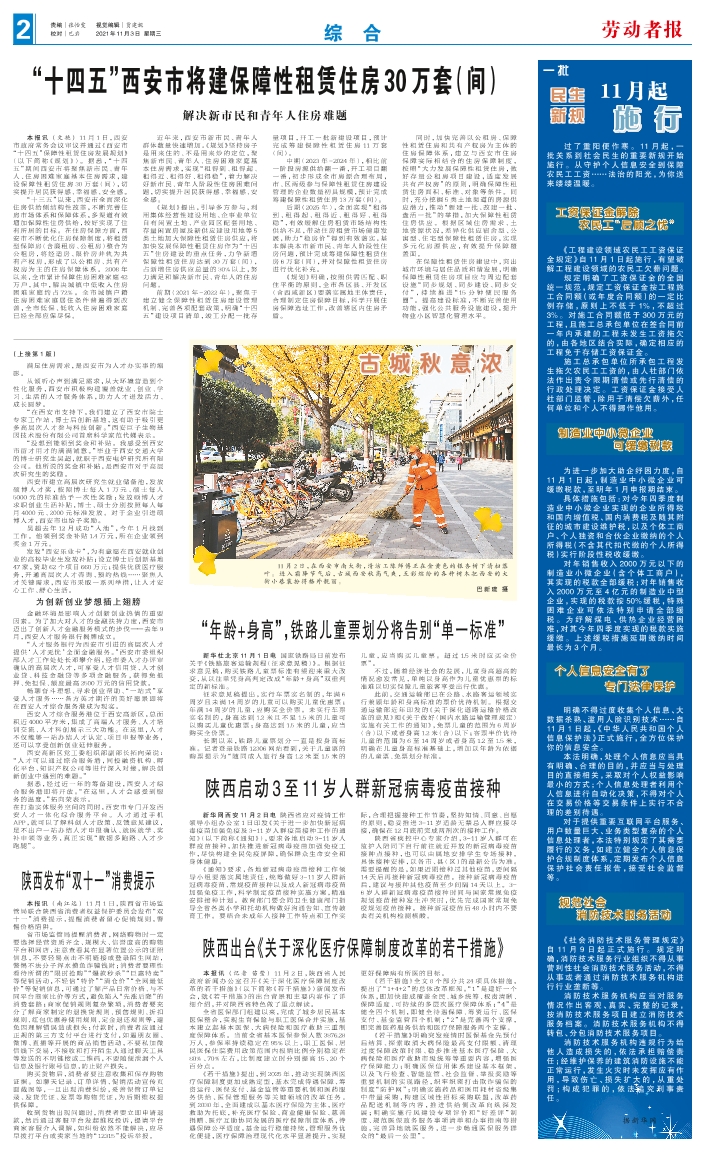 过了重阳便作寒。11月起,一批关系到社会民生的重要新规开始施行。从守护个人信息安全到保障农民工工资……法治的阳光,为你送来缕缕温暖。 工资保证金解除农民工“后顾之忧” 《工程建设领域农民工工资保证金规定》自11月1日起施行,有望破解工程建设领域的农民工欠薪问题。 规定明确了工资保证金的全国统一规范,规定工资保证金按工程施工合同额(或年度合同额)的一定比例存储,原则上不低于1%,不超过3%。对施工合同额低于300万元的工程,且施工总承包单位在签合同前一年内承建的工程未发生工资拖欠的,由各地区结合实际,确定相应的工程免于存储工资保证金。 施工总承包单位所承包工程发生拖欠农民工工资的,由人社部门依法作出责令限期清偿或先行清偿的行政处理决定。工资保证金接受人社部门监管,除用于清偿欠薪外,任何单位和个人不得挪作他用。 制造业中小微企业可缓缴税款 为进一步加大助企纾困力度,自11月1日起,制造业中小微企业可缓缴税款,至明年1月申报期结束。 具体措施包括:对今年四季度制造业中小微企业实现的企业所得税和国内增值税、国内消费税及随其附征的城市建设维护税,以及个体工商户、个人独资和合伙企业缴纳的个人所得税(不含其代扣代缴的个人所得税)实行阶段性税收缓缴。 对年销售收入2000万元以下的制造业小微企业(含个体工商户),其实现的税款全部缓税;对年销售收入2000万元至4亿元的制造业中型企业,实现的税款按50%缓税,特殊困难企业可依法特别申请全部缓税。为纾解煤电、供热企业经营困难,对其今年四季度实现的税款实施缓缴。上述缓税措施延期缴纳时间最长为3个月。 个人信息安全有了专门法律保护 明确不得过度收集个人信息、大数据杀熟、滥用人脸识别技术……自11月1日起,《中华人民共和国个人信息保护法》正式施行,全方位保护你的信息安全。 本法明确,处理个人信息应当具有明确、合理的目的,并应当与处理目的直接相关,采取对个人权益影响最小的方式;个人信息处理者利用个人信息进行自动化决策,不得对个人在交易价格等交易条件上实行不合理的差别待遇。 对于提供重要互联网平台服务、用户数量巨大、业务类型复杂的个人信息处理者,本法特别规定了其需要履行的义务,如建立健全个人信息保护合规制度体系,定期发布个人信息保护社会责任报告,接受社会监督等。 规范社会消防技术服务活动 《社会消防技术服务管理规定》自11月9日起正式施行。规定明确,消防技术服务行业组织不得从事营利性社会消防技术服务活动,不得从事或者通过消防技术服务机构进行行业垄断等。 消防技术服务机构应当对服务情况作出客观、真实、完整的记录,按消防技术服务项目建立消防技术服务档案。消防技术服务机构不得转包、分包消防技术服务项目。 消防技术服务机构违规行为给他人造成损失的,依法承担赔偿责任;经维护保养的建筑消防设施不能正常运行,发生火灾时未发挥应有作用,导致伤亡、损失扩大的,从重处罚;构成犯罪的,依法追究刑事责任。 据新华网