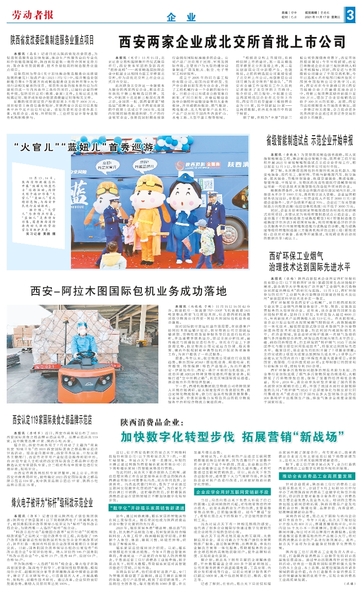本报讯(刘宁)11月15日,北京证券交易所揭牌暨开市仪式隆重举行,西安资本军团的身影再次“前排亮相”——两家精选层挂牌企业中航富士达和同力重工平移至北交所,作为首批北交所上市企业正式开市交易。 此次跻身北交所这一全新资本大舞台的两家西安企业,都是在去年获批于新三板精选层挂牌。其中,中航富士达是新三板深化改革之后,全国第一批、陕西省首家“精选层”挂牌企业。位于西安高新区的中航富士达成立于2002年,是国内射频同轴连接器科研、生产的行业领军企业,也是我国射频连接器行业拥有国际标准最多的企业。公司产品广泛应用于民用、军用及国际市场,主要客户为大型的通信设备制造厂商及航天、航空、电子等军工科研院所。 成立于2005年的同力重工股份有限公司,是国内首家研发、生产非公路自卸车的专业企业,开创了工程机械行业一个全新的细分行业。目前公司已形成非公路宽体自卸车、矿用自卸车、井巷运输设备及非公路特种运输设备等四大业务板块,并形成燃油驱动、燃气驱动、纯电驱动、无人驾驶等产品系列。产品广泛应用于国内外各类矿山、水电工地、大型平基工程等领域。 “根据北交所上市规则,有两种挂牌上市的途径,其一是从精选层平移至北交所直接上市,其二是从创新层公司中新增产生。也就是说,之前的精选层公司直接变成了北交所上市公司,而创新层公司则可视为北交所的‘预备队’。”西安市金融工作局相关工作人员向记者细述了北交所的上市路径。他介绍说,同力股份、中航富士达这两家精选层企业在北交所上市后,西安市目前存量新三板挂牌企业为111家,其中创新层23家——这两项数据,在西北各地市中均居于榜首。 据了解,在较为“丰厚”的新三板公司资源储备背景下,西安市依然提前谋划:今年早些时候,西安已将推进企业在新三板挂牌纳入相关考核指标;同时,西安还与全国股转公司建立了干部交流机制,今年已选派6名市级部门和开发区干部到全国股转公司交流学习;此外,西安市在今年新修订的《西安市鼓励企业上市融资奖励办法》中,将新三板挂牌奖励补贴提升至100万元,增加了企业晋级精选层给予300万元的奖励。近期,西安市还将按照资本市场改革情况,进一步修订相关政策,全力推动更多优秀西安企业通过北京证券交易所成功上市融资。
