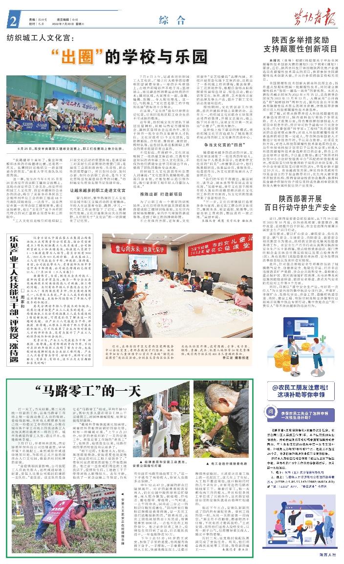 ▲ 经理姜昆和安装工赵勇亮,安装公园指引灯箱▲ 电工老赵仔细接着电路安装工王武安正在挖埋指示牌 打一天工,当天结算,第二天再找一份新的工作,这是马路零工市场上每一位流动务工人员的现状。受疫情影响,当所有人都想着为自己找一份稳定工作的时候,分散在城市各个零工市场上的流动务工人员每天都在做着不一样的工作。城市角落里的零工人生,透过汗水,也能体味幸福。 7月17日,伴着丝丝凉风,西安绿盾环保科技公司经理姜昆,早早带领7名装配工,来到咸阳市咸通绿地项目地,为即将正式开放的渭西办人口文化园,做最后标识标牌的安装。 “受疫情等因素影响,公司装配工人员流失很大,这次咸通绿地工时紧,安装人员是公司临时组建的一支队伍。”姜昆说。这支队伍是由七名“马路零工”组成,平均年龄53岁,其中大多人曾在项目工地上干过建筑工,对园林器械装配、标牌安装驾轻就熟。 “植被科普板装起来比较麻烦,需要把科普板埋到铺好的绿化带,和每一种植被对准。”上午8 点23分,50岁的老张开始了一天的安装工作。老张是零工市场的“老员工”了,他坦言,疫情发生以来,马路市场的零活明显没有以前多了。 “刚下过雨,土黏度太大,挖坑、填埋都很费劲,安装速度也就变慢了,但这活可比工地上省劲多了。”老张对这次接到的安装工作很是满意。他之前一直在咸阳周边的工地找活干,疫情发生后,工地施工干干停停对收入影响很大。去年开始,他找了一家企业晚上当保安,白天有空就在马路市场找零工干,“这一下子就有了两份收入,给家人也能多点保障。” 中午12点47分,游园的群众已陆续离开。41岁的赵勇亮和表哥两人,仍在公园中段的草地边忙碌着,两人配合默契,剥线缆、拧电芯、缠电胶带、穿线管,一气呵成。一上午的功夫,园内近二分之一的标识灯箱完成通电。“园内所有灯箱标识牌都是我哥俩装,早一天完工我们就能接新的活。”赵勇亮说,这次工期他规划的是3天完成,哥俩能拿到4000块,一点也不比在工地挣得少。他之前在甘肃工地上,疫情发生后回到了这边,自己组队找活干,一年也能挣近10万。 下午2 点 51 分,64岁的王武安,加快了手里的速度,他两腿弯曲俯下身子,一手撑地,一手拿着木棍伸入土坑,快速地捣压泥土,让提示牌埋得更稳固。王武安之前是工地上的一名泥瓦工,这几年上了年纪,大工地不愿意用他,就开始和同村的几个老伙计,在家周边的马路市场找零工干。靠着打零工,他一天都有两三百的收入,并且和很多用工单位成了长期合作,这次西安绿盾公司的安装队就是由他帮忙组建的。 临近下午五点,安装队如期完成了园内所有装配任务。拿到工钱的那一刻,大伙一天的疲惫一扫而空。“雇主在不在跟前,都要把活干仔细,下次有活才能再找咱。”王武安说,虽然他们这些人没啥文化,只有一膀子力气,但都懂得老实做人,踏实干事的老理。 历时三天,这支临时装配队圆满完成了安装任务。明天,他们将会再次来到零工市场,等待新的雇主…… 本报记者 唐玉洁