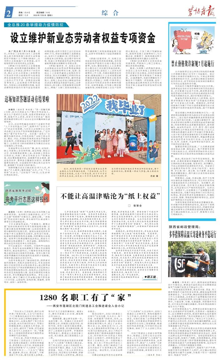 央广网北京7月5日消息 近日,全国总工会印发《加大工会经费投入助力疫情防控与经济社会发展的若干措施》(以下简称《措施》),在全国工会系统施行20条措施,助力疫情防控与促进经济社会发展。 《措施》中由全国总工会直接施行的包括:加快推进城市困难职工帮扶等重点工作落实;改革对下补助方式,确定20亿元对省级工会转移支付资金用于助力疫情防控与促进经济社会发展方向;印发《中华全国总工会办公厅关于进一步规范全民健身等相关工会经费使用管理的通知》,为拓展工会经费使用范围,促进消费帮扶和旅行社等行业复苏提供政策依据;动用全国总工会历史结余4000万元,增加向困难职工送温暖支出,支持9个边境省(区)的市县级工会落实本文件措施,设立维护货车司机、快递小哥等新就业形态劳动者权益和帮助解决困难的专项资金等。 《措施》要求省、市、县级工会加大对新就业形态劳动者等受疫情影响职工送温暖和帮扶力度,包括:县级以上工会要普遍建立疫情防控专项资金,加大对困难职工和临时性生活困难职工等群体的帮扶、慰问资金投入,省级工会必须设立新就业形态劳动者关爱资金并鼓励市县级工会参照执行;加大职工互助保障项目经费投入,增强广大职工的防风险能力;帮助遇困职工和转岗再就业职工创业,安排专项经费用于创业贷款贴息等。 《措施》还要求省、市、县级工会采取系列促进经济发展措施,支持受疫情影响严重的行业和小微企业发展等,包括:督促县级以上工会落实好小微企业工会经费支持返还政策,简化返还手续;县级以上工会加大消费帮扶工作力度,巩固拓展脱贫攻坚成果;鼓励县级以上工会采取增加慰问额度和发放消费券等形式促进消费复苏;开展职工(劳模)疗休养等工会活动时可将活动交符合条件的旅行社、民宿等承接;可为职工购买健身服务等;对租用省级工会房产经营的小微企业、个体工商户等减免房租,鼓励市县级工会参照执行;为小微企业、困难职工、转岗再就业职工创业提供阶段性优惠办公场所等。 《措施》还对基层工会层面落实经费来源,严格执行上级工会规定,提出具体落实措施。 据悉,为保障上述措施的落实,全国总工会允许各级工会按程序动用历史累计结余资金,同时在监督检查、成果报告等方面做出了具体安排。20条措施中,有部分措施是为了解决当下问题的一次性措施,也有一些措施是通过修改相关文件固化成有利于职工权益和经济发展的长期性措施。