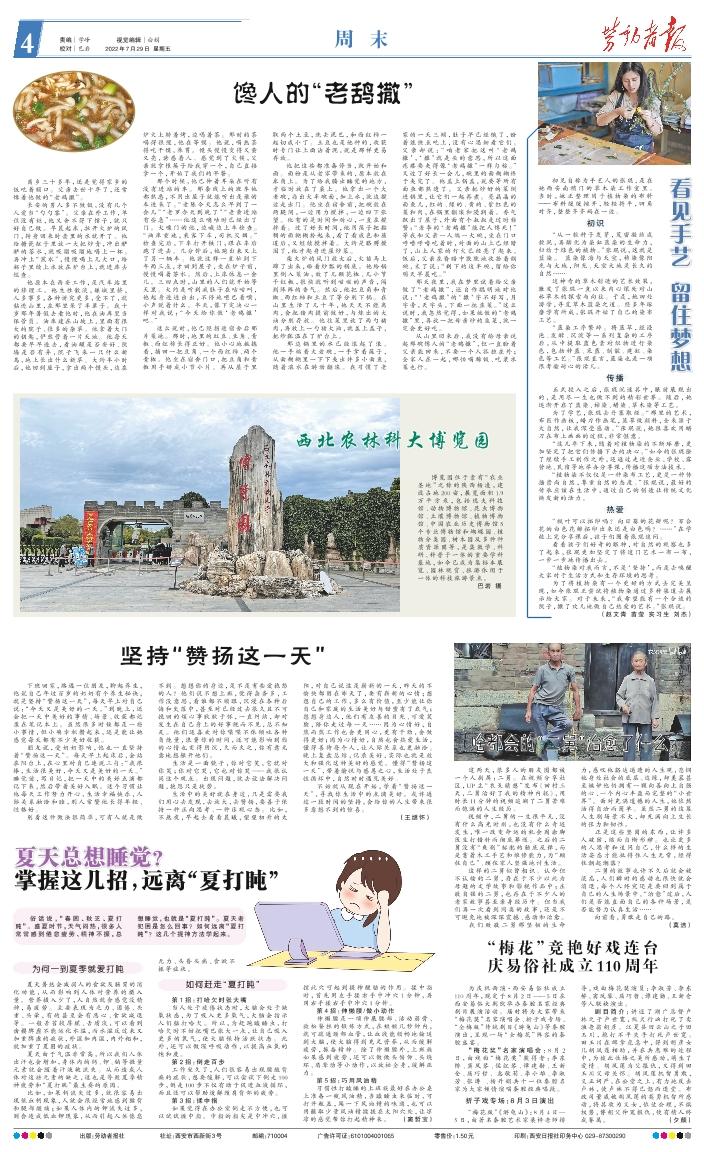 下班回家,路遇一位朋友,聊起养生,他说自己年过百岁的奶奶有个养生秘诀,就是坚持“赞扬这一天”,每天早上对自己说:“今天又是美好的一天。”到晚上,还会把一天中美好的事情、场景、收获都记录在笔记本上。虽然很多时候都是一些小事情,但小确幸积攒起来,还是能让她感觉每天都有不少美好收获。 朋友说,受奶奶影响,他也一直坚持着“赞扬这一天”。每天早上起床后,会站在阳台上,在心里对自己连说三句:“我很棒,生活很美好,今天又是美好的一天。”睡觉前,写日记,把一天中的美好点滴都记下来,然后带着美好入眠。这个习惯让他每天工作努力开心,生活幸福快乐,人际关系融洽和睦,别人常赞他长得年轻、性格好。 别看这种做法很简单,可有人就是做不到。想想你的身边,是不是有些爱抱怨的人?他们说不想上班,觉得杂务多,工作没意思,看谁都不顺眼,沉浸在各种后悔和失落中,甚至对已经过去很久且不可挽回的烦心事耿耿于怀,一直纠结,却对发生在自己身上的好事视而不见,总不知足。他们还喜欢对你喋喋不休倾吐各种负能量,浪费你的时间,还可能影响到你的心情也变得阴沉,久而久之,你有意无意地想躲开他们。 生活是一面镜子,你对它笑,它就对你笑;你对它哭,它也对你哭——我很认同这个观点。出现问题,就去设法解决问题,抱怨只是徒劳。 生活中的美好就在身边,只是需要我们用心去发现,去放大,去赞扬,要善于保持一种正向思考、一种乐观心态。比如,不熬夜,早起去看看晨曦,望望初升的太阳,对自己说这是崭新的一天,昨天的不愉快都留在昨天了,要有崭新的心情;想想自己的工作,多么有价值,至少能让你自己和家庭的生活美好与甜蜜有了底气;想想身边人,他们有友善的目光、可爱笑脸,陪你走过每一天……因为心情好,自然而然工作也会更用心,更有干劲,会做得更好;因为心情好,自然也会热爱生活,懂得善待每个人,让人际关系也更融洽。晚上复盘总结,记录美好,实际也就是放大和强化这种美好的感觉。懂得“赞扬这一天”,带着愉悦与感恩之心,生活处于良性循环中,自然时时遇见美好。 不妨就从现在开始,学着“赞扬这一天”,寻找你生活中的点滴美好。或许通过一段时间的坚持,会给你的人生带来很多意想不到的惊喜。 (王继怀)