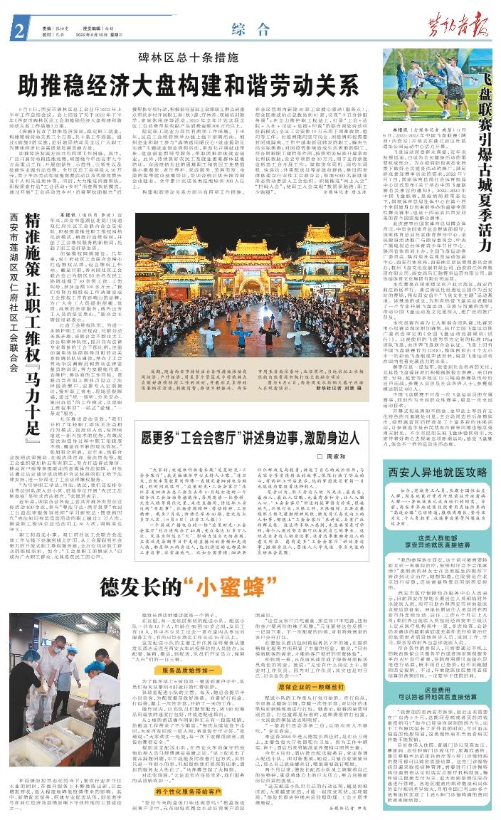 8月8日,西安市碑林区总工会召开2022年上半年工作总结会议。会上印发了关于2022年下半年《西安市碑林区总工会助推稳经济大盘构建和谐劳动关系工作措施》方案。 《措施》包含了助推经济发展,稳定职工就业,构建和谐劳动关系三个方面,共十条工作措施。通过《措施》的实施,更好地团结动员全区广大职工为碑林经济社会高质量发展贡献力量。 助推经济发展方面共有四项工作措施。其中,广泛开展劳动和技能竞赛,将围绕今年西安市九个方面重点工作,开展创新性、示范性、引领性以及技能性主题劳动竞赛。全年区总工会将投入10万元,用于举办劳动和技能竞赛活动以及奖励竞赛先进个人和先进集体等。同时,大力推进消费帮扶。积极探索打造“工会活动+乡村”消费帮扶新模式,通过开展“工会活动进乡村·消费帮扶助振兴”消费帮扶专项行动,积极倡导基层工会和职工群众到重点帮扶乡村开展职工春(秋)游、疗休养、现场培训教学、家庭休闲游等活动,2022年全年计划实现全区工会消费帮扶农副产品消费金额300万元以上。 稳定职工就业方面共有两项工作措施。下半年,区总工会将持续举办线上线下招聘活动。组织企业和职工参与“真情送岗暖民心·就业援助见实效”主题就业创业招聘活动,常态化开展就业帮扶、就业创业指导等服务,帮助困难群体就业创业。此外,持续抓好农民工及就业困难群体技能培训。向因疫情失业的困难职工和农民工免费提供小微餐饮、老年养护、家政服务、美容美发、电商销售等就业技能培训,培训合格后优先推荐到企业就业。全年累计完成各类技能培训300人以上。 构建和谐劳动关系方面共有四项工作措施。在全区范围内新建38家工会爱心驿站(服务点),使全区建成站点总数达到81家,实现“十五分钟服务圈”;在全力维护职工权益上,打造“工会+法院+人社+司法+法援+仲裁”的联合调处劳动纠纷新模式;全区工会安排10万元用于困难救助、慰问等工作。对疫情期问坚守岗位、因疫情防控需要封闭或隔离、工作中感染新冠肺炎的职工,解决生活实际困难;对因疫情影响造成生活困难的职工,符合困难职工建档条件的,按照相关标准开展常态化帮扶救助;设立专项资金20万元,用于支持新就业形态工会开展工作。聚焦货车司机、网约车司机、快递员、外卖配送员等新就业群体,推进四类群体建立行业性工会联合会,吸纳5000名新就业形态劳动者加入工会组织。积极推进“网上入会”“扫码入会”,使职工入会实现“数据多跑路、职工少跑腿”。 全媒体记者 唐玉洁