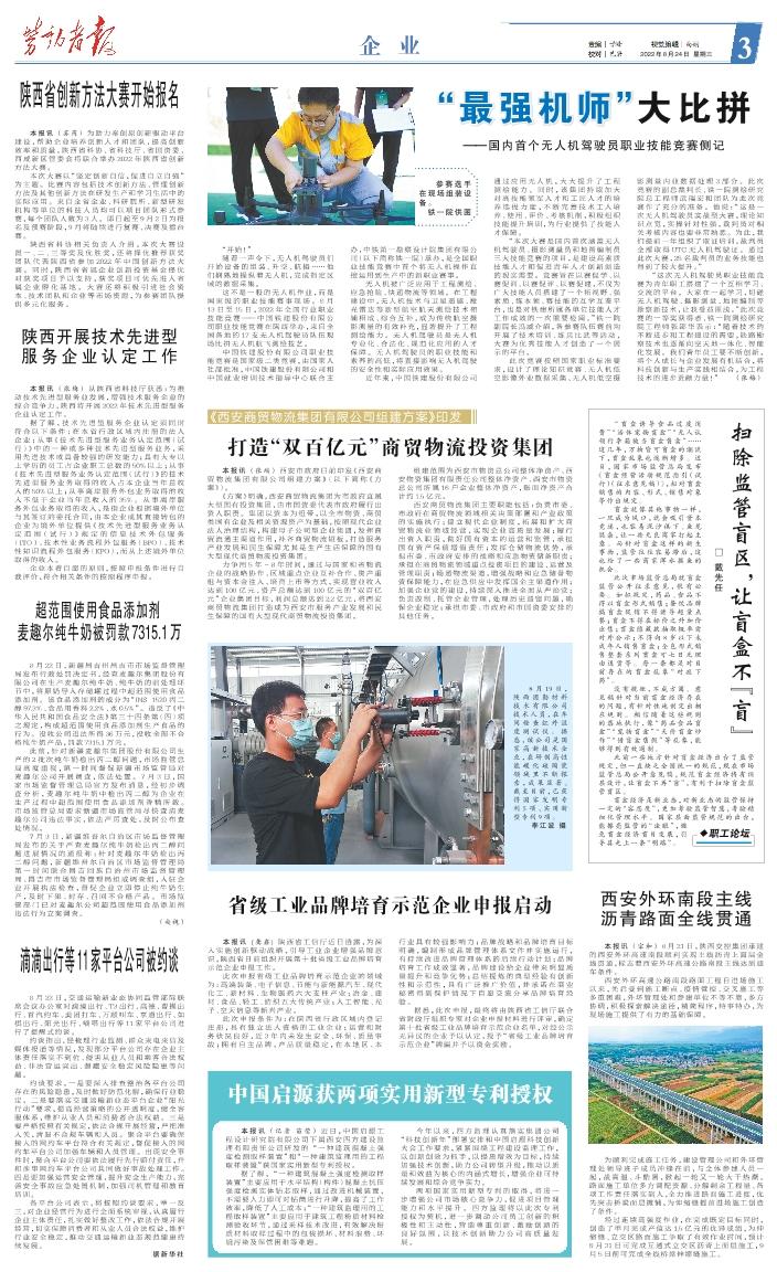 参赛选手在现场组装设备。铁一院供图 “开始!” 随着一声令下,无人机驾驶员们开始设备的组装、升空、航摄……他们娴熟地操纵着无人机,完成指定区域的数据采集。 这不是一般的无人机作业,而是国家级的职业技能赛事现场。8月13日至15日,2022年全国行业职业技能竞赛——中国铁建股份有限公司职业技能竞赛在陕西举办,来自全国各地的17支无人机驾驶员队伍现场比拼无人机航飞测绘技艺。 中国铁建股份有限公司职业技能竞赛是国家级二类竞赛,由国家人社部批准,中国铁建股份有限公司和中国就业培训技术指导中心联合主办,中铁第一勘察设计院集团有限公司(以下简称铁一院)承办,是全国职业技能竞赛中首个将无人机操作直接运用到生产中的新职业赛事。 无人机被广泛应用于工程测绘、应急抢险、快递物流等领域。在工程建设中,无人机技术与卫星遥感、激光雷达等新型航空航天测绘技术相辅相成、综合互补,成为传统航空摄影测量的有效补充,显著提升了工程测绘能力。无人机驾驶员是无人机专业化、合法化、规范化应用的人才保障。无人机驾驶员的职业技能和素养的高低,将直接影响无人机驾驶的安全性和实际应用效果。 近年来,中国铁建股份有限公司通过应用无人机,大大提升了工程测绘能力。同时,该集团持续加大对高技能领军人才和工匠人才的培养选拔力度,不断完善技术工人培养、使用、评价、考核机制,积极组织技能提升培训,为行业提供了技能人才保障。 “本次大赛是国内首次涵盖无人机驾驶员、摄影测量员和地图编制员三大技能竞赛的项目,是建设高素质技能人才和促进青年人才创新创造的现实需要。竞赛旨在以赛促学、以赛促训、以赛促评、以赛促建,不仅为广大技能人员搭建了一个拓视野、强素质、练本领、赛技能的互学互鉴平台,也是对铁建所属各单位技能人才工作成效的一次重要检阅。”铁一院副院长冯威介绍,各参赛队伍赛前均开展了技术培训、练兵比武等活动,大赛为优秀技能人才创造了一个展示的平台。 此次竞赛按照国家职业标准要求,设计了理论知识竞赛、无人机低空影像外业数据采集、无人机低空摄影测量内业数据处理3部分。此次竞赛的副总裁判长、铁一院测绘研究院总工程师武瑞宏和团队为此次竞赛作了充分的准备。他说:“这是一次无人机驾驶员实战型大赛,理论知识点宽,实操针对性强,裁判员对相关考核内容也要非常熟悉。为此,我们提前一年组织了取证培训,裁判员全部取得UTC无人机驾驶证。通过此次大赛,25名裁判员的业务技能也得到了较大提升。” “这次无人机驾驶员职业技能竞赛为青年职工搭建了一个互相学习、交流的平台。大家在一起学习,切磋无人机驾驶、摄影测量、地图编制等勘察新技术,让我受益匪浅。”此次竞赛的一等奖获得者、铁一院测绘研究院工程师张邵华表示:“随着技术的不断进步和工程建设的需要,铁路勘察技术也逐渐向空天地一体化、智能化发展。我们青年员工要不断创新,将个人成长与企业发展有机结合,将科技创新与生产实践相结合,为工程技术的进步贡献力量!” (张梅)