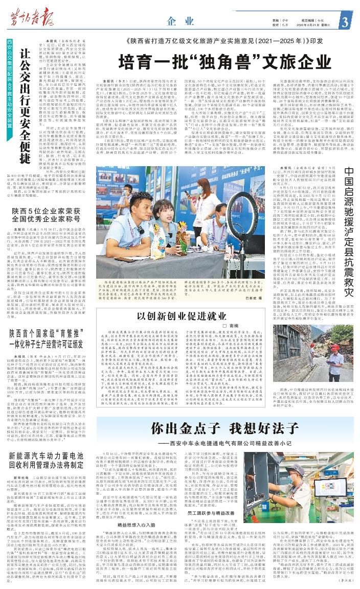 本报讯(沈谦)9月16日,由中国企业联合会、中国企业家协会主办的2022年全国企业家活动日暨中国企业家年会在内蒙古自治区包头市举行。大会表彰了190名2021—2022年度全国优秀企业家,我省5位企业家荣获全国优秀企业家称号。 近年来,陕西产业发展加速转型升级,步入高质量发展轨道,一批企业创新开拓能力日益增强,优秀企业带头人不断涌现。此次我省获得全国优秀企业家称号的是:陕西投资集团有限公司党委书记、董事长袁小宁;陕西建工控股集团有限公司党委书记、董事长张义光;陕西交通控股集团有限公司党委书记、董事长张文琪;中国葛洲坝集团第三工程有限公司党委书记、董事长胡义重;陕西龙华煤焦电集团有限责任公司董事长高杰。 获得全国优秀企业家称号的5位企业家表示,将进一步发挥优秀企业家敢为人先的改革创新精神,引导和激励更多企业家投身企业改革发展,适应新时代要求,谋求更大发展空间,迎难而上,再创佳绩,将企业做优做强做大,不断推动企业高质量发展,为稳住经济大盘贡献力量。