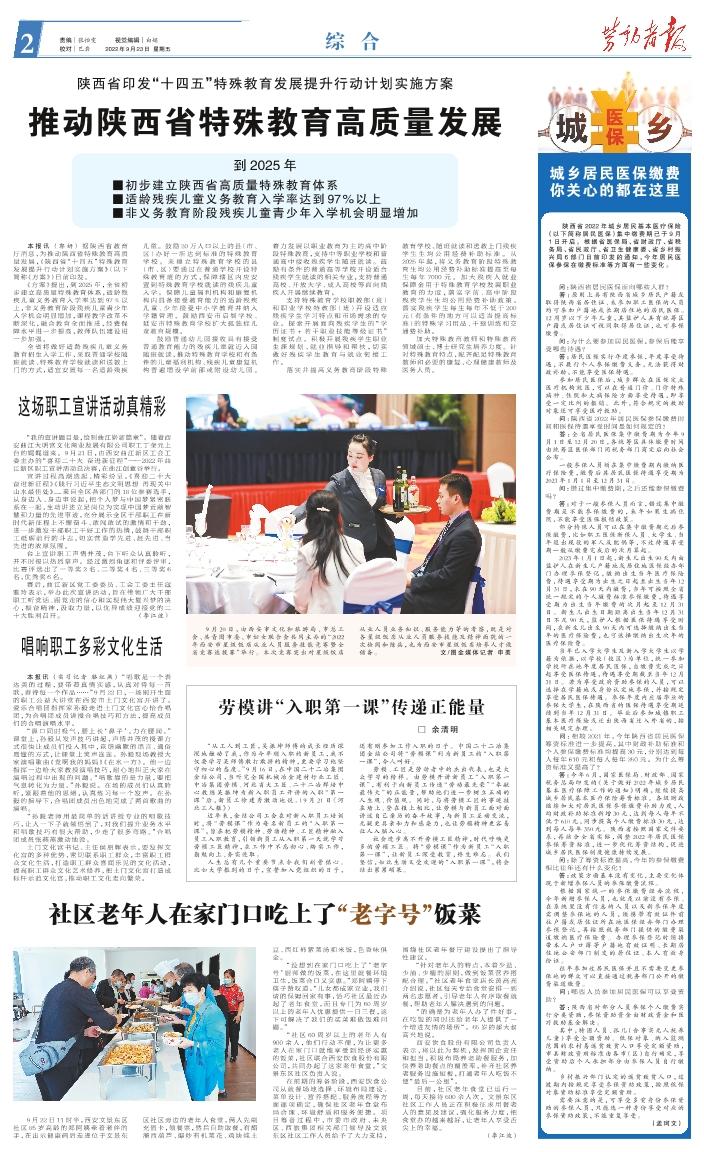 到2025年 ■初步建立陕西省高质量特殊教育体系 ■适龄残疾儿童义务教育入学率达到97%以上 ■非义务教育阶段残疾儿童青少年入学机会明显增加 本报讯(郭妍) 据陕西省教育厅消息,为推动陕西省特殊教育高质量发展,《陕西省“十四五”特殊教育发展提升行动计划实施方案》(以下简称《方案》)日前印发。 《方案》提出,到2025年,全省初步建立高质量特殊教育体系,适龄残疾儿童义务教育入学率达到97%以上,非义务教育阶段残疾儿童青少年入学机会明显增加,课程教学改革不断深化,融合教育全面推进,经费保障水平进一步提高,教师队伍建设进一步加强。 全省将做好适龄残疾儿童义务教育招生入学工作,采取普通学校随班就读、特殊教育学校就读和送教上门的方式,适宜安置每一名适龄残疾儿童。鼓励20万人口以上的县(市、区)办好一所达到标准的特殊教育学校。未建立特殊教育学校的县(市、区)要通过在普通学校开设特殊教育班的方式,保障辖区内应安置到特殊教育学校就读的残疾儿童入学。保障儿童福利机构和康复机构内具备接受教育能力的适龄残疾儿童、少年接受中小学教育并纳入学籍管理。鼓励西安市启智学校、延安市特殊教育学校扩大孤独症儿童教育规模。 鼓励普通幼儿园接收具有接受普通教育能力的残疾儿童就近入园随班就读,推动特殊教育学校和有条件的儿童福利机构、残疾儿童康复机构普遍增设学前部或附设幼儿园。着力发展以职业教育为主的高中阶段特殊教育,支持中等职业学校和普通高中接收残疾学生随班就读。鼓励有条件的普通高等学校开设适合残疾学生就读的相关专业,支持普通高校、开放大学、成人高校等面向残疾人开展继续教育。 支持特殊教育学校职教部(班)和职业学校特教部(班)开设适应残疾学生学习特点和市场需求的专业。探索开展面向残疾学生的“学历证书+若干职业技能等级证书”制度试点。积极开展残疾学生职业生涯规划、就业指导和帮扶,切实做好残疾学生教育与就业衔接工作。 落实并提高义务教育阶段特殊教育学校、随班就读和送教上门残疾学生生均公用经费补助标准。从2025年起,将义务教育阶段特殊教育生均公用经费补助标准提高至每生每年7000 元。加大残疾人就业保障金用于特殊教育学校发展职业教育的力度,落实学前、高中阶段残疾学生生均公用经费补助政策。落实残疾学生每生每年不低于200元(有条件的地方可以适当提高标准)的特殊学习用品、干预训练和交通费补助。 加大特殊教育教师和特殊教育领域硕士、博士研究生培养力度。针对特殊教育特点,配齐配足特殊教育教师和必要的康复、心理健康教师及医务人员。