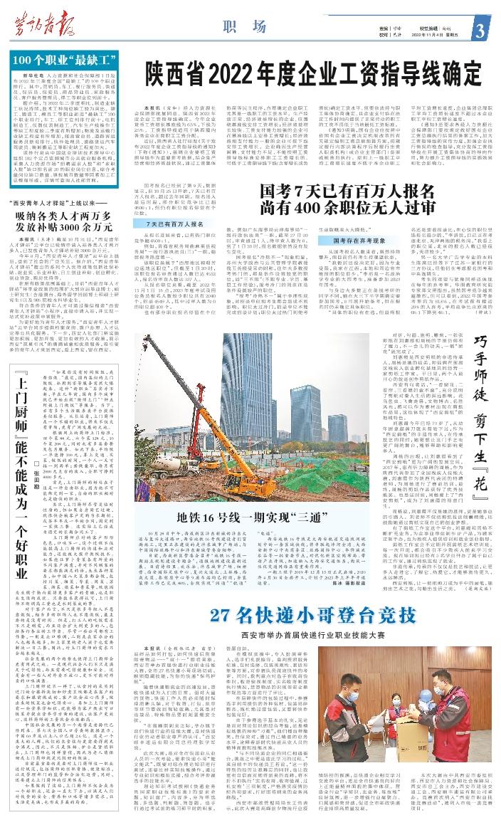 本报讯 (全媒体记者 苗莹)易碎品如何打包,如何快速识别禁限寄物品……“双十一”即将来临,西安市举办首届快递行业职业技能大赛,全市27名快递小哥现场切磋,解锁隐藏技能,为你的快递“保驾护航”。 随着快递物流业的高速发展,寄收快递成为人们的日常。面对大量的货物,快递工作人员必须随时保持清晰头脑,对于收寄、打包、派单等环节要做到驾轻就熟,尤其是对违禁品、特殊物品要时刻紧绷安全弦。 “在高峰期到来之际,举办属于我们快递行业的技能大赛,是对快递行业劳动者职业尊严的认可。”西安顺丰速运有限公司总经理张学军说。 此次大赛,是对全市快递业从业人员的一次考验,要求快递小哥“能文能武”,既要对综合理论知识进行测试,还要比拼实际技能操作,通过专业知识和模拟实操,综合考评参赛选手的技能水平。 理论知识考试按照《快递业务员国家职业技能标准》的要求命题,知识面广,内容多,分为单选题、多选题、判断题、简答题。选手们通过考试前的练习和平时的积累,答题自如。 在模拟实操中,专人扮演寄件人,选手们礼貌接待。裁判按照服务标准、包材选择、包装美观性、素质形象等方面,对参赛队员做寄快件的考评。同时,裁判重点对选手在收寄快件时,收寄验视制度、实名收寄制度执行情况,禁寄物品的识别等安全操作规范等方面进行了评比。 在易碎快件的包装过程中,参赛选手利用提供的各种包材,包装易碎物品,既杜绝过度包装,又要将快件包装完好。 由于参赛选手基本功扎实,无论是面对理论知识的综合考验,还是模拟场景的种种“刁难”,他们都面带微笑,自信应对,通过自己精湛的业务水平,诠释着新时代快递从业人员的精神面貌和技能水准。 “与不同快递企业的同仁相遇擂台,挑战之中更是彼此学习的过程。”来自顺丰的快递员王若说,“这一份特别的经历让我难忘的同时,也让我更有自信面对即将到来的高峰,将不折不扣执行‘实名收寄、收寄验视、过机安检’三项制度,严格落实疫情防控各项要求,打好即将到来的业务高峰战。“ 西安市邮政管理局局长王伟表示,此次大赛是高峰前夕物流行业疫情防控的预演,是快递企业相互学习交流的平台,更是全市快递员向好向上正能量精神面貌的集中体现。营造全行业“学知识、比业务、练技能”良好氛围,进一步增强行业凝聚力、归属感和荣誉感,促进全市邮政快递行业持续高质量发展。 本次大赛由中共西安市委组织部、西安市人力资源和社会保障局、西安市总工会主办,西安市建设交通工会、西安顺丰速运有限公司承办。竞赛首次纳入“西安市职业技能竞赛活动”,被列入市级一类竞赛项目。