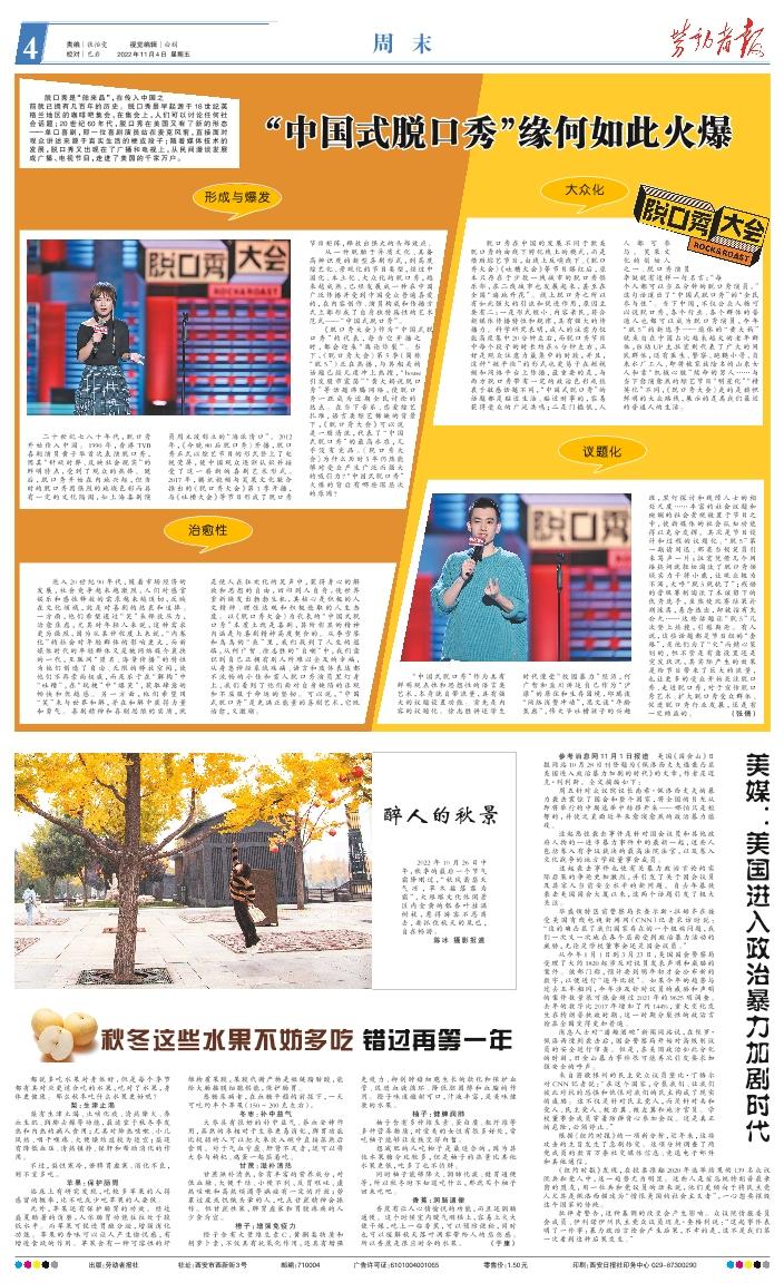 脱口秀是“舶来品”,在传入中国之前就已拥有几百年的历史。脱口秀最早起源于18世纪英格兰地区的咖啡吧集会,在集会上,人们可以讨论任何社会话题;20世纪60年代,脱口秀在美国又有了新的形态——单口喜剧,即一位喜剧演员站在麦克风前,直接面对观众讲述来源于真实生活的梗或段子;随着媒体技术的发展,脱口秀又出现在了广播和电视上,从民间漫谈发展成广播、电视节目,走进了美国的千家万户。 形成与爆发 二十世纪七八十年代,脱口秀开始传入中国。1990 年,香港TVB喜剧演员黄子华首次表演脱口秀,因其“针砭时弊、反映社会现实”的鲜明特点,受到了观众的热捧。随后,脱口秀开始在内地兴起,但当时的脱口秀因强烈的地域色彩而具有一定的文化隔阂,如上海喜剧演员周立波创立的“海派清口”。2012年,《今晚80后脱口秀》开播,脱口秀正式以综艺节目的形式登上了电视荧屏,使中国观众逐渐认识并接受了这一崭新的喜剧艺术形式。2017年,腾讯视频与笑果文化联合推出的《脱口秀大会》第1季开播,与《吐槽大会》等节目形成了脱口秀节目矩阵,释放出强大的头部效应。 从一种脱胎于异质文化、具备高辨识度的新型喜剧形式,到高度综艺化、景观化的节目类型,经过中国化、本土化、大众化的脱口秀,越来越成熟,已经发展成一种在中国广泛传播并受到中国受众普遍喜爱的,在内容创作、演员构成和传播方式上都形成了自身独特属性的艺术范式——“中国式脱口秀”。 《脱口秀大会》作为“中国式脱口秀”的代表,每当它开播之时,都会迎来“舆论炸裂”。当下,《脱口秀大会》第5季(简称“脱5”)正在热播,与其相关的话题已经几度冲上热搜,“house引发股市震荡”“黄大妈说脱口秀”等话题沸腾网络,使脱口秀一跃成为近期全民讨论的热点。在当下音乐、恋爱综艺扎堆,语言类综艺稀缺的背景下,《脱口秀大会》可以说是一股清流,代表了“中国式脱口秀”的最高水准,几乎没有竞品。《脱口秀大会》为什么历时5年仍然能够对受众产生广泛而强大的吸引力?“中国式脱口秀”火爆的背后有哪些深层次的原因? 治愈性 进入20世纪90年代,随着市场经济的发展,社会竞争越来越激烈,人们对感官娱乐和感性释放的需求越来越迫切,反映在文化领域,就是对喜剧的热衷和追捧。一方面,他们希望通过“笑”来释放压力,治愈焦虑,尤其对年轻人来说,这种需求更为强烈,因为从某种程度上来说,“内卷化”的社会对年轻群体的影响更大,而新媒体时代的年轻群体又是被网络媒介裹挟的一代,互联网“匿名、海量传播”的特性为他们创造了自由、无限的释放空间,使他们不再崇尚权威,而是乐于在“解构”中“吐糟”,在“玩梗”中“爆笑”,获取肆意的 畅快和优越感。另一方面,他们希望用“笑”来与世界和解,并在和解中获得力量 和勇气。喜剧精神和喜剧思维的实质,就是使人在狂欢化的笑声中,获得身心的解放和思想的自由,回归到人自身,使世界重新焕发出勃勃生机,其核心是积极的人文精神、理性达观和积极进取的人生态度。以《脱口秀大会》为代表的“中国式脱口秀”本质上就是喜剧,其所彰显的精神内涵是与喜剧精神高度契合的。从李雪琴和鸟鸟的“丧”里,我们找到了人生的退路,从何广智、徐志胜的“自嘲”中,我们意识到自己正拥有别人所难以企及的幸福,从身患神经系统疾病、语言和肢体表达都不流畅的小佳和盲人脱口秀演员黑灯身上,我们看到了他们面对自身缺陷的乐观和不屈服于命运的坚韧。可以说,“中国式脱口秀”是充满正能量的喜剧艺术,它既治愈,又激励。 大众化 脱口秀在中国的发展不同于欧美脱口秀的由线下孵化线上的模式,而是借助综艺节目,由线上反哺线下。《脱口秀大会》《吐槽大会》等节目爆红后,原本只存在于少数一线城市的脱口秀俱乐部,在二线城市也发展起来,甚至在全国“遍地开花”。线上脱口秀之所以有如此强大的引流和促进作用,原因主要有二:一是形式短小、内容亲民,符合新媒体传播特性和规律,具有强大的传播力。科学研究表明,成人的注意力仅能高度集中20分钟左右,而脱口秀节目中每个段子的时长均在6分钟左右,正好是观众注意力最集中的时段,并且,这种“短平快”的形式也更易于在短视频和网络平台上传播,最重要的是,与西方脱口秀带有一定的政治色彩或热衷于敏感话题不同,“中国式脱口秀”的话题都是贴近生活、贴近时事的,容易获得受众的广泛共鸣;二是门槛低,人人 都 可 参与 。 笑果 文化 的 创始 人之一、脱口秀演员李诞就有这样一句名言:“每个人都可以当五分钟的脱口秀演员。”这句话道出了“中国式脱口秀”的“全民参与性”。当下中国,不仅公众人物可以说脱口秀,各个行业、各个群体的普通人也都可以成为脱口秀演员,今年“脱5”的新选手——退休的“黄大妈”就来自在中国占比越来越大的老年群体,B站UP主拉宏则代表了广大的网民群体,还有医生、警察、跑腿小哥、自来水厂工人、即将被家族除名的山东女人和靠“机械心脏”续命的男人……与当下愈演愈烈的综艺节目“明星化”“精英化”不同,《脱口秀大会》走的是旗帜鲜明的大众路线,展示的是离我们最近的普通人的生活。 议题化 “中国式脱口秀”作为具有鲜明观点性和思想性的语言类艺术,本身就自带流量,具有强大的议题