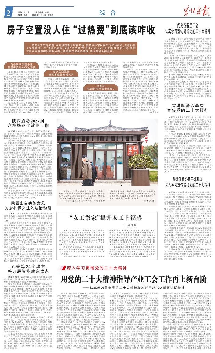 本报讯(张媛)西安市阎良区总工会把学习宣传贯彻党的二十大精神作为当前和今后一个时期的首要政治任务,迅速将党的二十大精神传递到基层、传达到职工群众中去,推动党的二十大精神在基层工会中落地生根。各企业工会干部纷纷畅谈了各自的感想和体会,对未来发展的雄伟蓝图充满信心。 “党的二十大报告中强调,深入实施人才强国战略,要尊重劳动、尊重知识、尊重人才、尊重创造,这是为我们基层工会如何更好地做好新时代工会工作提供了方向。我们要深入学习领会报告精神,立足岗位当好职工的知心人和“娘家人”,坚持开展好劳动竞赛活动,为企业培树先进、选拔人才,为职工当好引路人。”西安嘉业航空科技有限公司工会主席马宝平说。 连日来,阎良区各行各业的劳动模范掀起党的二十大报告学习热潮,以饱满的工作热情、昂扬的精神风貌,投入到工作中。 全国劳动模范杨梅说:“党的二十大报告给我们工作指明了新方向、新思路。充分感受到了党和政府对农业的投入,对农业的重视。报告指出全面推进乡村振兴,坚持农业农村优先发展,巩固拓展脱贫攻坚成果,加快建设农业强国,扎实推动乡村产业、人才、文化、生态组织振兴。我们将响应党的号召,致力于农业的振兴与发展,脚踏实地,不忘初心!”