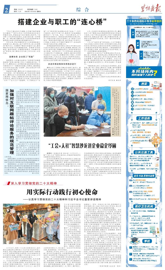 夏季,周华(中)和工会干部为企业职工送清凉 10月16日,党的二十大在北京胜利召开,我怀着无比激动的心情听取了习近平总书记所作的工作报告,报告中提出新时代新征程中国共产党的使命任务,就是团结带领全国各族人民全面建成社会主义现代化强国、实现第二个百年奋斗目标,以中国式现代化全面推进中华民族伟大复兴。 作为70后,我从小生活在军营里,长在红旗下。在成长的过程中,我慢慢地体会到,仅仅几十年前,上辈人还没解决温饱,而实现现代化,是几代中国人梦寐以求的目标。这些年,依靠着先进的技术和不懈的奋斗,我们这个14亿人口、960万平方公里土地的国家逐渐从贫穷落后走向繁荣强盛,我们不仅在军事、工业、农业、科学技术等方面取得了长足的进步,社会文明程度也有了很大的提升。新时代十年的伟大变革,在党史、新中国史、改革开放史、社会主义发展史、中华民族发展史上具有里程碑意义。 “中华民族的伟大复兴”,这个词则显示出了历史的厚重。这几年,我们从历史和政治书上经常看到这样的表述。我们的祖先不仅沐浴过汉唐雄风,还把文明种子散播到世界各地。现在,我们祖国的发展,也正对世界产生越来越大的影响力。我相信,在我们大家的共同努力下,伟大复兴一定会在不久的将来实现,我也期待这一天早日到来。 联系到工作实际,作为工会工作者,团结带领职工群众听党话跟党走,当前最重要的任务,一是发挥工会纽带作用,不断强化对产业工人的思想政治引领。工会作为党联系职工群众的桥梁和纽带,实现广大职工对美好生活的向往是工会的奋斗目标。要贯彻落实好党的二十大精神,努力使思想引领作用更强劲、组织覆盖范围更广泛、维护权益更有力、服务保障更精准、联系一线更深入、倾听渠道更通畅,更好地依靠职工、为了职工、维护职工、服务职工。作为一名基层工会干部,更要着眼于工作中琐碎小事,以职工为中心的工作导向,努力为职工解决切身问题,解决急难愁盼的问题。 要努力提升产业工人的技术技能素质。党的二十大报告指出,建设现代化产业体系,推进新型工业化,加快建设制造强国、质量强国、航天强国、交通强国、网络强国、数字中国。广大产业工人高素质在这里起到的作用不言而喻。提高包括广大产业工人在内的全民族素质,是民族发展的长远大计,是产业工人队伍建设改革的重要目标。财贸工会要更加重视发挥劳模工匠和职业技能带头人的作用,引导全系统职工立足本职,学习工匠精神,钻研业务,岗位成才。积极引导财贸系统所属企业,大力弘扬技能创新和科技创新,努力打造一支爱党报国、敬业奉献、规模宏大、技能精湛、素质优良、结构合理的技术工人队伍。 要着力加大对产业工人合法权益维护。自觉用习近平法治思想引领新时代工会工作法治化,坚持以职工为中心,认真履行工会“维护职工合法权益、竭诚服务职工群众”的基本职责,为职工提供法律服务、法律援助。党的二十大报告指出,全心全意依靠工人阶级,维护职工合法权益,这正是充分调动产业工人劳动热情和创造潜能、实现产业工人队伍建设改革目标的重要支撑和有力保障。近年来,农民工和新业态群体已成为产业工人的重要组成部分,为他们做好权益维护和提供更高水平的服务,才能更好地发挥工会组织的桥梁纽带作用,让职工充分感受到党和政府的关怀。 研读党的二十大报告,让我对未来的工作更加充满信心,我会把信心化作实际行动,努力提高做好群众工作的本领,永葆凝聚职工、服务职工的初心,把更多职工群众吸引到工会组织中来,把工会组织建设成新时代职工最可信赖、最可依靠的职工之家。 (西安市财贸工会主任 周华)