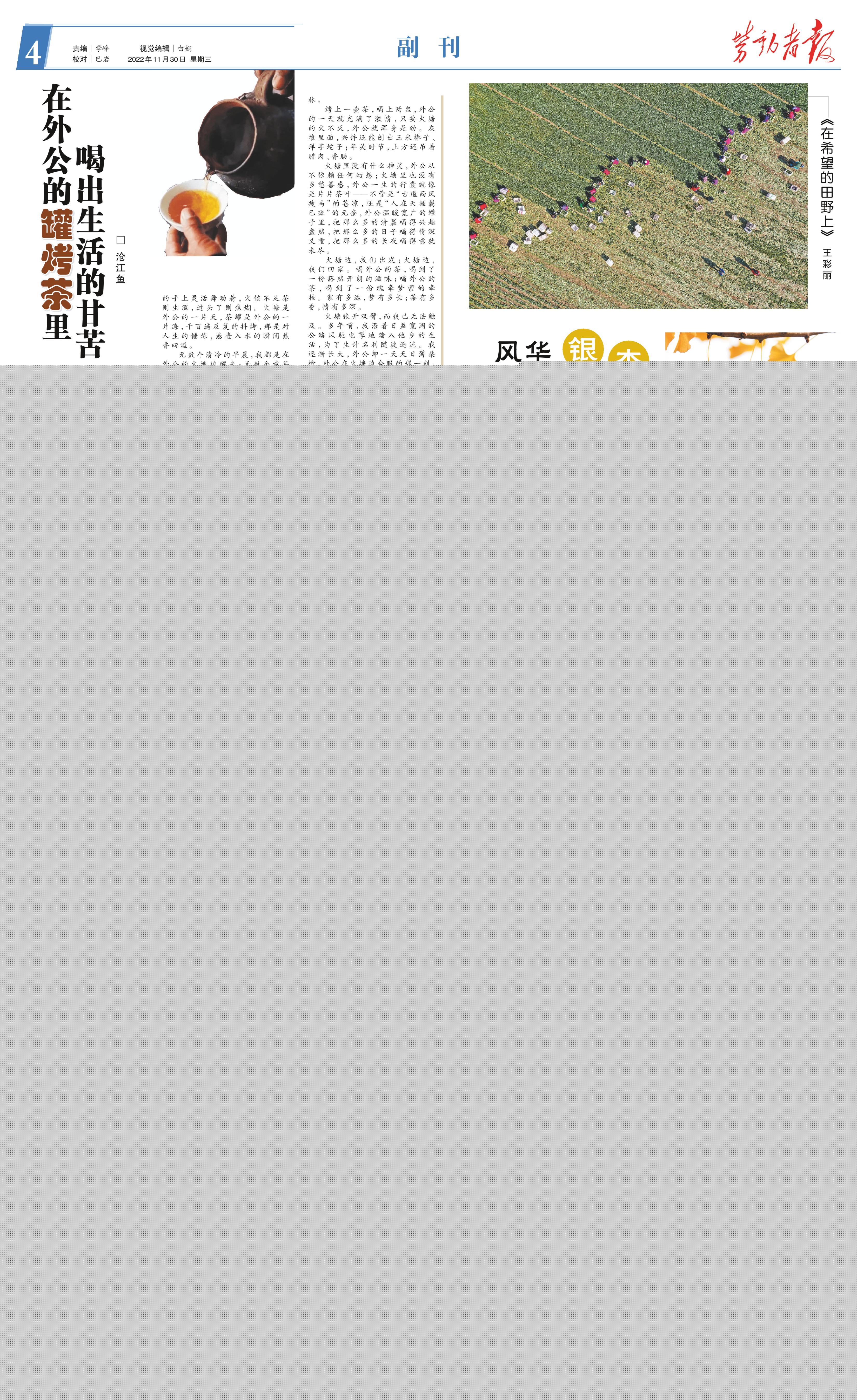 “我在昆明喝过烤茶。把茶叶放在粗陶的烤茶罐里,放在炭火上烤得半焦,倾入滚水,茶香扑鼻。几年前在大理街头看到有烤茶罐卖,犹豫一下没有买。买了,放在煤气灶上烤,也不会有那样的味道。”读到汪曾祺《寻常茶话》里这段话时,我突然很想在火塘边,喝一杯外公烤的茶。 日子永远在火塘里亮着 外公佝偻着身子坐在火塘边烤茶的姿势,是我人生的第一篇日记,深深植入我的血管。外公虔诚的神态,小心翼翼地烤啊抖啊,罐里茶叶的每一个细微变化,他都了如指掌。那只历经炭火千锤百炼的土罐,在外公长满老茧的手上灵活舞动着,火候不足茶则生涩,过头了则焦煳。火塘是外公的一片天,茶罐是外公的一片海,千百遍反复的抖烤,那是对人生的锤炼,悬壶入水的瞬间焦香四溢。 无数个清冷的早晨,我都是在外公的火塘边醒来;无数个童年的记忆,我都是被外公烤茶、喝茶的虔诚情景塞满。当我们用味蕾丈量苦和甜的距离,日子散发出五谷杂粮的气息,胸膛布满了七情六欲的光影。 外公的茶罐永远斟满着希望 呷一口浓酽,外公布满皱纹的额头不期然就舒展开来,外公灰蒙的眼睛突然就亮堂起来。外公说,茶叶的味道就是生活的味道,再大的困难也抵不过一口茶。外公的潜意识里一直坚持一个理念:茶叶是上天给人类的恩赐,它来自大自然,吸纳了阳光雨露的润泽,历经了风霜雨雪的肆虐,接受了锄禾汗滴的洗礼;火塘边,它还要经受烈火的烘烤,翻来覆去的锤炼,才真正登峰造极、独步武林。 烤上一壶茶,喝上两盅,外公的一天就充满了激情,只要火塘的火不灭,外公就浑身是劲。灰堆里面,兴许还能刨出玉米棒子、洋芋坨子;年关时节,上方还吊着腊肉、香肠。 火塘里没有什么神灵,外公从不依赖任何幻想;火塘里也没有多愁善感,外公一生的行囊就像是片片茶叶——不管是“古道西风瘦马”的苍凉,还是“人在天涯鬓已斑”的无奈,外公温暖宽广的罐子里,把那么多的清晨喝得兴趣盎然,把那么多的日子喝得情深义重,把那么多的长夜喝得意犹未尽。 火塘边,我们出发;火塘边,我们回家。喝外公的茶,喝到了一份豁然开朗的滋味;喝外公的茶,喝到了一份魂牵梦萦的牵挂。家有多远,梦有多长;茶有多香,情有多深。 火塘张开双臂,而我已无法触及。多年前,我沿着日益宽阔的公路风驰电掣地踏入他乡的生活,为了生计名利随波逐流。我逐渐长大,外公却一天天日薄桑榆,外公在火塘边合眼的那一刻,我还在灯红酒绿里浮沉。 这些年混迹于城市的喧嚣与浮躁里,外公的火塘一如既往地亮着,在我的心里,在我的血液深处。外公烤茶的声音,钻过钢筋水泥的缝隙,躲过闪烁的红绿灯,潮水般地涌了进来,落在我的茶杯里。只要想起外公的火塘,我的心就不再流浪。 外公的火塘永远亮堂,燃烧着坎坷人生潦草的舞步,燃烧着精致性格硬铮铮的誓言。端起的是一份慈祥,喝下的是一份执着,放下的是一份沉静。所有茶叶最终都要流向茶盅,所有物象最终都要归于泥土,苦是生活,甜是日子,苦涩回甘都是大自然的法则。无论身在何方,不管心系何处,总有个声音在对我呼喊——不能让火塘熄灭。