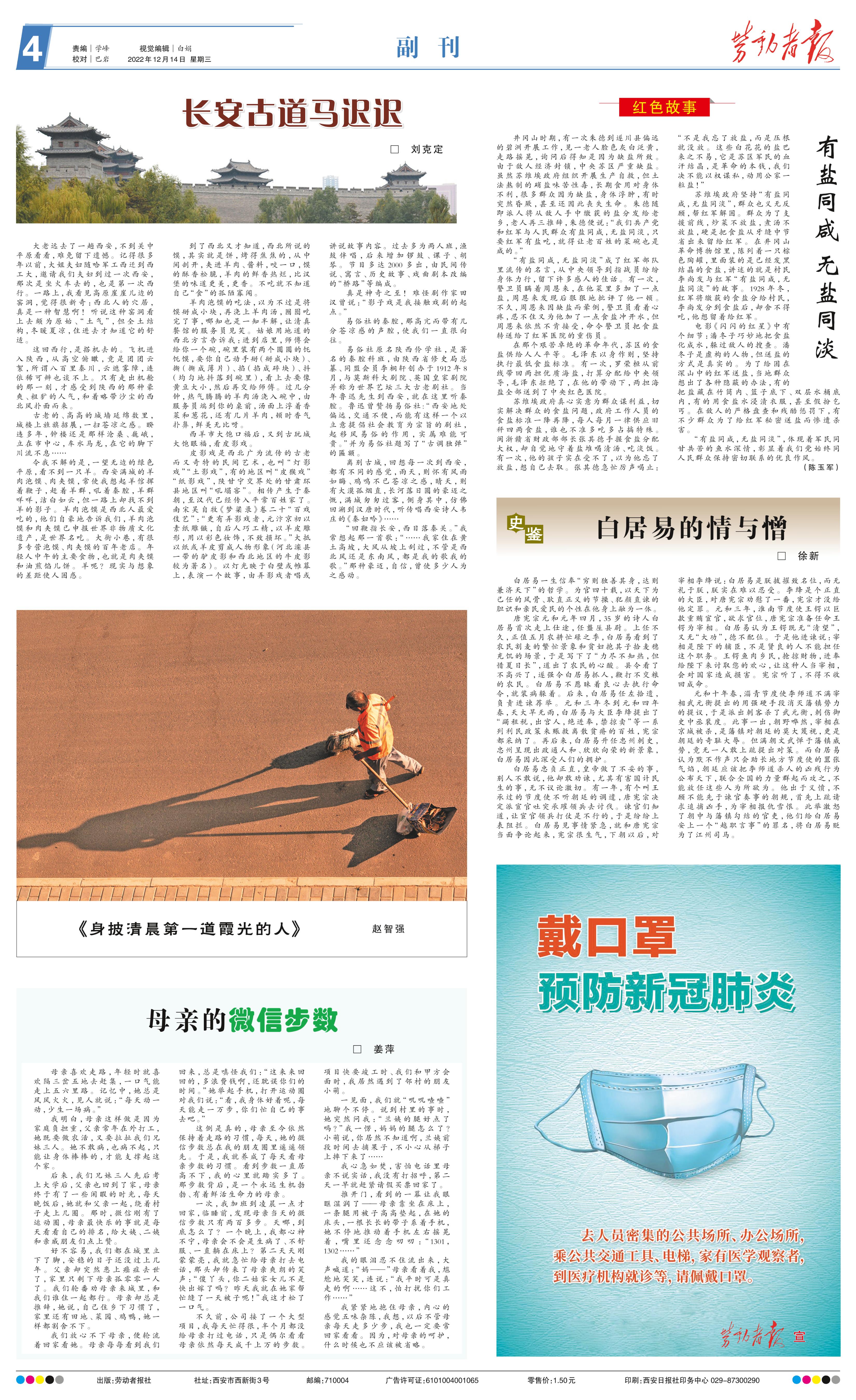 母亲喜欢走路,年轻时就喜欢隔三岔五地去赶集,一口气能走上五六里路。记忆中,她总是风风火火,见人就说:“每天动一动,少生一场病。” 我明白,母亲这样做是因为家庭负担重,父亲常年在外打工,她既要做农活,又要拉扯我们兄妹三人。她不敢病,也病不起,只能让身体棒棒的,才能支撑起这个家。 后来,我们兄妹三人先后考上大学后,父亲也回到了家,母亲终于有了一些闲暇的时光,每天晚饭后,她就和父亲一起,绕着村子走上几圈。那时,微信刚有了运动圈,母亲最快乐的事就是每天看看自己的排名,给大姨、二姨和亲戚朋友们点上赞。 好不容易,我们都在城里立下了脚,安稳的日子还没过上几年。父亲却突然患上癌症去世了,家里只剩下母亲孤零零一人了。我们轮番劝母亲来城里,和我们谁住一起都行。母亲却总是推辞,她说,自己住乡下习惯了,家里还有田地、菜园、鸡鸭,她一样都割舍不下。 我们放心不下母亲,便轮流着回家看她。母亲每每看到我们回来,总是嗔怪我们:“这来来回回的,多浪费钱啊,还耽误你们的时间。”她举起手机,打开运动圈对我们说:“看,我身体好着呢,每天能走一万步,你们忙自己的事去吧。” 这倒是真的,母亲至今依然保持着走路的习惯,每天,她的微信步数总在我的朋友圈里遥遥领先。于是,我就养成了每天看母亲步数的习惯。看到步数一直居高不下,我的心里就踏实多了。那步数背后,是一个永远生机勃勃、有着鲜活生命力的母亲。 一次,我加班到凌晨一点才回家,临睡前,发现母亲当天的微信步数只有两百多步。天哪,到底怎么了?一个晚上,我都心神不宁,母亲会不会是生病了、不舒服、一直躺在床上?第二天天刚蒙蒙亮,我就急忙给母亲打去电话,那头却传来了母亲爽朗的笑声:“傻丫头,你二姑家女儿不是快出嫁了吗?昨天我就在她家帮忙缝了一天被子呢!”我这才松了一口气。 不久前,公司接了一个大型项目,我每天忙得很,半个月都没给母亲打过电话,只是偶尔看看母亲依然每天成千上万的步数。项目快要竣工时、我们和甲方会面时,我居然遇到了邻村的朋友小萌。 一见面,我们就“叽叽喳喳”地聊个不停。说到村里的事时,她突然问我:“兰姨的腿好点了吗?”我一愣,妈妈的腿怎么了?小萌说,你居然不知道啊,兰姨前段时间去摘果子,不小心从梯子上摔下来了…… 我心急如焚,害怕电话里母亲不说实话,我没有打招呼,第二天一早就赶紧请假买票回家了。 推开门,看到的一幕让我眼眶湿润了——母亲靠坐在床上,一条腿用被子高高垫起,在她的床头,一根长长的带子系着手机,她不停地推动着手机左右摇晃着 ,嘴 里 还念 念叨 叨:“1301,1302……” 我的眼泪忍不住流出来,大声喊道:“妈——”母亲看着我,尴尬地笑笑,连说:“我平时可是真走的啊……这不,怕打扰你们工作……” 我紧紧地抱住母亲,内心的感觉五味杂陈,我想,以后不管母亲每天走多少步,我也一定要常回家看看。因为,对母亲的呵护,什么时候也不应该被省略。