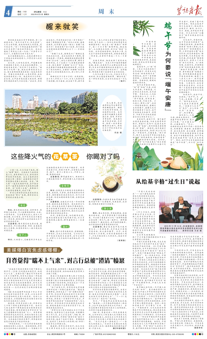 中国传统节日就像一壶老酒,日久而弥香。尤其在新冠疫情肆虐的当下,回顾端午节的来历以及中华传统文化智慧的现实妙用,是温故知新,更是认清形势后的砥砺前行。 感恩端午,心“粽”有爱。5月20日我就收到了今年的粽子,是重庆女友寄来的“好端端粽乐乐”安康礼包,其中一盒香肠蛋黄粽,一盒桂花黄米山药粽。蒸粽品尝,暖暖的感动扑面而来。 端午是仲夏的开端,“端”有“初始”之意,此时太阳直射,万物皆盛,之后便是五谷成熟,成为盘中餐。丰收之后,人们把谷物先抛入山上、江中,“翠叶披覆,彩丝裹身。皎皎玉姿,不染尘埃。以之投江,聊寄心香”,这是一种感恩的祭祀,感谢大自然的赐予,感谢大地生养万物养育了我们,端午节逐渐成为和春节、清明节、中秋节齐名的我国最著名四大传统节日之一。 美食端午,粽香千年。粽子最早出现在春秋时期,当时主要有两种粽子,用菰叶(茭白叶)包黍米成牛角状,称“角黍”;用竹筒装米密封烤熟,称“筒粽”。到晋代,端午食粽子成为全国性风俗,西晋《风土记》记载:“仲夏端午,烹鹜角黍。”到了唐代,粽子已成为端午节的必备食品,姚合的“渚闹渔歌响,风和角粽香”反映了当时食粽之普遍。宋代时,出现了用“艾叶浸米裹之”的艾香粽子。元代的粽子包裹料已从菰叶变革为箬叶,突破了菰叶的季节局限。明代出现用芦苇叶包的粽子,附加料已出现豆沙、猪肉、松子仁、枣子、核桃,品种更加丰富多彩。今天流行的“火腿粽子”最早出现在清代乾隆年间。 文化端午,诗意祝福。端午节是欧阳修眼中“五月榴花妖艳烘,绿杨带雨垂垂重”的动人景致;也是苏轼笔下“彩线轻缠红玉臂,小符斜挂绿云鬟”的古老民俗;还是陆游感叹“粽包分两髻,艾束著危冠”的仪式感;更是屈原“路漫漫其修远兮,吾将上下而求索”的文化传承。从“画鼓喧雷,红旗闪电,夺罢锦标方彻”的热闹龙舟竞渡,到“独炷炉香薰衣润,对潇潇、翠竹都忘暑”的惬意心境,诗词歌赋承载着端午节的美好祝福,凝聚了先人在天人合一、时序更替中与自然和谐相处的情感智慧。又到端午,我们重读这些至美诗句,亦是在那一片葱茏诗意和家国情怀中感受中华传统文化的底蕴和魅力。 防疫端午,沐浴平安。俗语说:“端午节,天气热;五毒醒,不安宁。”每年农历五月,天气湿热多病毒疫疾,一直被古人认为是“恶月”,古人形容此间“ 五 毒 尽出”,蛇虫繁殖, 易咬伤人,人易生病,瘟疫也易流行。中国最早的农事历书《夏小正》记载:“此日蓄采众药,以蠲除毒气。”所以,祛病防疫也是端午节的一项重要内容,饮雄黄酒、佩香囊、挂菖蒲和艾草、拴五色丝线、挂五毒图、挂钟馗像等端午节民俗都有驱除灾害瘟疫、祈求平安健康的寓意,端午节也算是我国最早的“全民卫生防疫节”。因此,端午节大家见面的祝福语是“端午安康”,而不是“端午快乐”。 (木易)