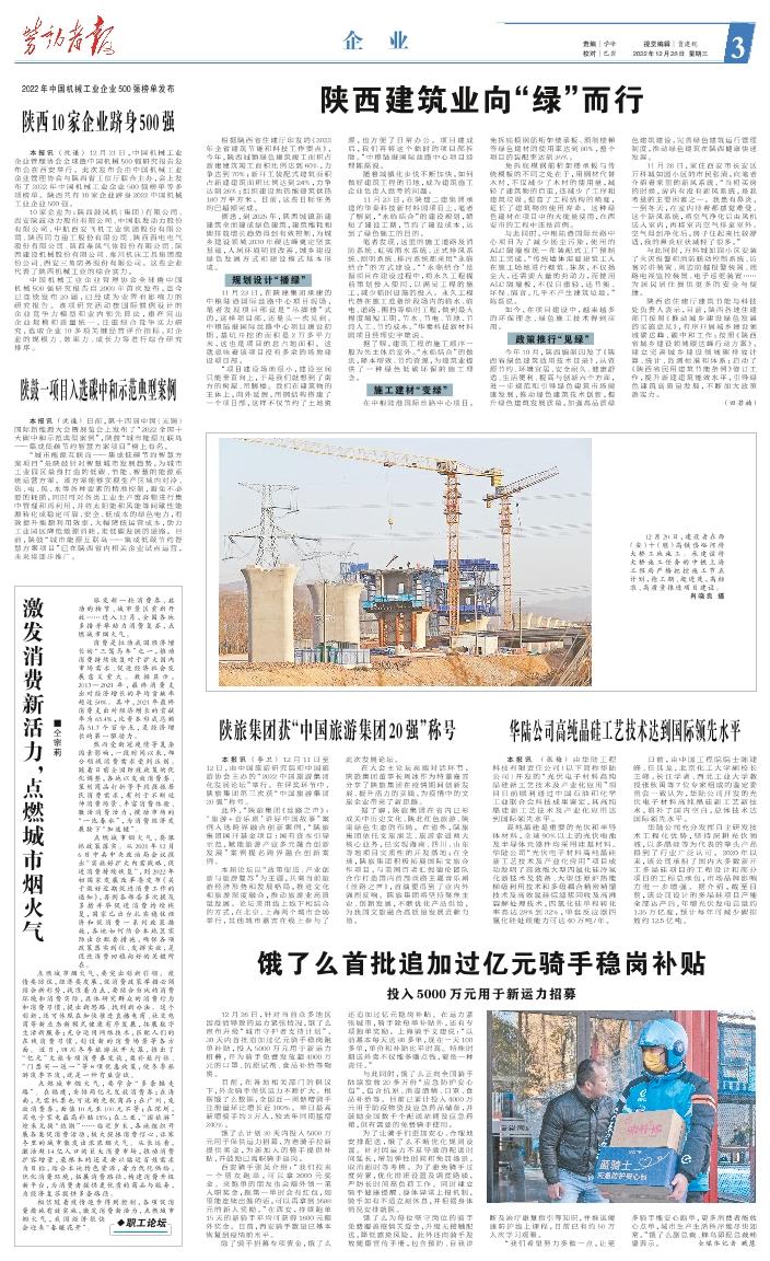 本报讯(沈谦)12月21日,中国机械工业企业管理协会全球暨中国机械500强研究报告发布会在西安举行。此次发布会由中国机械工业企业管理协会与陕西省工信厅联合主办,会上发布了2022年中国机械工业企业500强榜单等多项榜单。陕西共有10家企业跻身2022中国机械工业企业500强。 10家企业为:陕西鼓风机(集团)有限公司、西安陕鼓动力股份有限公司、中国航发动力股份有限公司、中航西安飞机工业集团股份有限公司、陕西同力重工股份有限公司、陕西西电电气股份有限公司、陕西秦风气体股份有限公司、陕西建设机械股份有限公司、秦川机床工具集团股份公司、西安三角防务股份有限公司。这些企业代表了陕西机械工业的综合实力。 中国机械工业企业管理协会全球暨中国机械500 强研究报告自2003年首次发布,迄今已连续发布20 届,已经成为业界有影响力的研究报告。该项研究活动按国际惯例设计的企业竞争力模型和业内领先算法,重在突出企业规模和质量统一,注重综合竞争实力研究,选取企业10多项关键经营评价指标,对企业的规模力、效率力、成长力等进行综合研究排序。