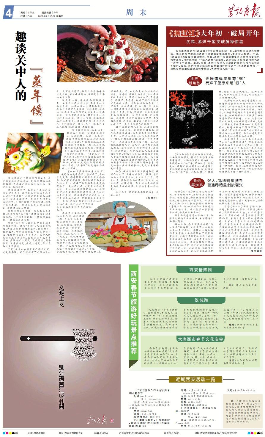 饮食传统之于传统年节的关系,是互相成就的依托寄托,是精神图腾的咏怀释怀,更是挥之不去的情感情结。坚守传统,行稳致远。 很快就过年了,各种关于年俗的说道又扩散开来,其中最为吸睛的是很多地方的“杀年猪”,也就是把自家养的猪杀了,预备着过年吃。在这个互相帮忙的过程中,乡邻们增强了沟通交流,联络了亲情友谊,一定意义上是小型的联欢会,是精神的莫大慰藉。 饮食习惯让关中道一带基本不杀年猪,但咱可有“蒸年馍”这样的预备过年的仪式,一样的手忙脚乱、一样的邻里互帮、一样的欢乐热闹呢。 所谓“蒸年馍”,就是集中准备过年时需要的馍。这些“年馍”,包括自家吃的、待客用的和馈赠亲朋的,种类繁多、数量巨大,所以必须要在年前集中蒸一次,之后分门别类、各尽其用。关中人讲究正月里不搭蒸锅,据说是正月里万事开头,蒸馍会产生蒸汽,汽气同音,新年伊始,不希望造气、生气与着气,所以忌讳正月里蒸馍。 于是,关中人在腊月尾巴那几天里,完成蒸年馍。有了馍就有了吃饭的主心骨。没有馍在笼里,任什么山珍海味都只是点缀,根本吃不饱的,这就是千百年的关中食俗。 说是大工程,首先是年馍的数量大。关中人以面食为主食,面食中一大半就是馍。一家人这一个月需要多少?再加上正月里人来客往,这拜年的、送礼的,过去关中人年节里走亲串友一定要送馍。这几重因素叠加,那肯定是一个比较大的数字。这个大工程,还体现在品种的丰富上。这时候的馍,是形形色色、五彩缤纷的,馒头、包子、花卷乃至各色花馍,琳琅满目、丰富多彩。 有了数量的多、品类的多,那这蒸年馍就一定需要互相帮忙、互相支撑。从这一点来讲,这种乡邻互助实际上也是礼俗的最好安排,半强制性地把原本松散的乡邻聚在一起,从而实现较为顺畅与密切的交流。即便是平日里牙碰舌头的事,在这时候一定会得以消解。一年到头了,有什么误会、有什么矛盾就在这时候化开了吧!别把坏情绪攒到下一年去,咱说说笑笑热热闹闹的多好!于是,“蒸年馍”也是精神层面的大工程呢。 絮叨一下蒸年馍的基本过程。先是要淘麦子磨面。磨好面了,第一步是发面,那时候的天好像比现在冷得多,但咱家里有热炕,那就把若干面盆放在热炕上,之后睡了热炕的面就氤氲得蓬勃了。发好面之后,才是大工程的重头戏。主妇们在蒸年馍的前一阵,就预定下村子里那几位德高望重、手艺精巧的大嫂大婶。等自家的面发好之后,大嫂大婶会如约而至,笑盈盈地来当老师了。当然,还有几位是近门子的妯娌小姑之类,她们也会早早到来,为主家蒸年馍做更多的辅助工作。 这些平日里就很熟稔的女人们,此刻聚在一起,手底下忙活着,嘴也肯定不停,东家长、西家短的,肯定在谈话中占一定分量,这是标配。而其他的内容,就五花八门、不一而足了,叽叽喳喳热热闹闹,直把这蒸年馍的活干得像是小型的狂欢一样。手艺精巧的,先是变戏法一样做出个样品来,再手把手地教其他人;初学的年轻主妇,在照猫画虎之后,一定会大呼小叫地乐出声来。这时候,案板上的家什,除过平日里的菜刀之外,没用过的新梳子、干净剪子、竹签子、勺子等,都成了制作花馍不可或缺的工具。它们在巧妇的手中,上下翻飞、左右开弓,剪、捏、挤、压,直把一团团面团变出花鸟鱼虫的模样来,再点缀上豆子、红枣、芝麻等,这些花馍就更加有模有样。说它是面雕,完全够格。就这样,这些巧妇们说说笑笑,手嘴都不停歇,很快地,那案板上就分门别类地摆上了一大片美丽动人的花馍了。 接下来就是男人烧锅,把摆好花馍的大竹笼搭上锅。灶膛里火焰熊熊,蒸汽很快氤氲满屋,不久就散发出年馍的麦香。大约半天光景,各色花馍以及包子、馒头等都已经出锅,凉在一个个开口可到一米左右的专属竹篮子里。主人会慷慨地把肉包子、菜包子、豆沙包子之类装起来,让帮忙的乡邻带回家去,是分享,也是酬谢。尽管此后主人也要去她们家帮忙,但礼多人不怪,这热热乎乎的包子让邻里姐妹们更亲热了呢。次日后日,村子里继续着这样的情景,各家各户的厨房里都会上演这样热闹的景象,那是一年到头光景的展示,更是对来年的美好希冀。 如今,关中道的人还在蒸着年馍,规模已经小了,品种也不多了。据说,专门的加工作坊有定制,专业化生产了。笔者以为,蒸年馍在内的民俗,该鼓呼,也该传承,也该发扬。当乡村的民俗礼俗更加被重视的时候,乡村的景象一定会更好。 快过年了,哪里有蒸年馍的场景,去瞅一瞅! (张同武)