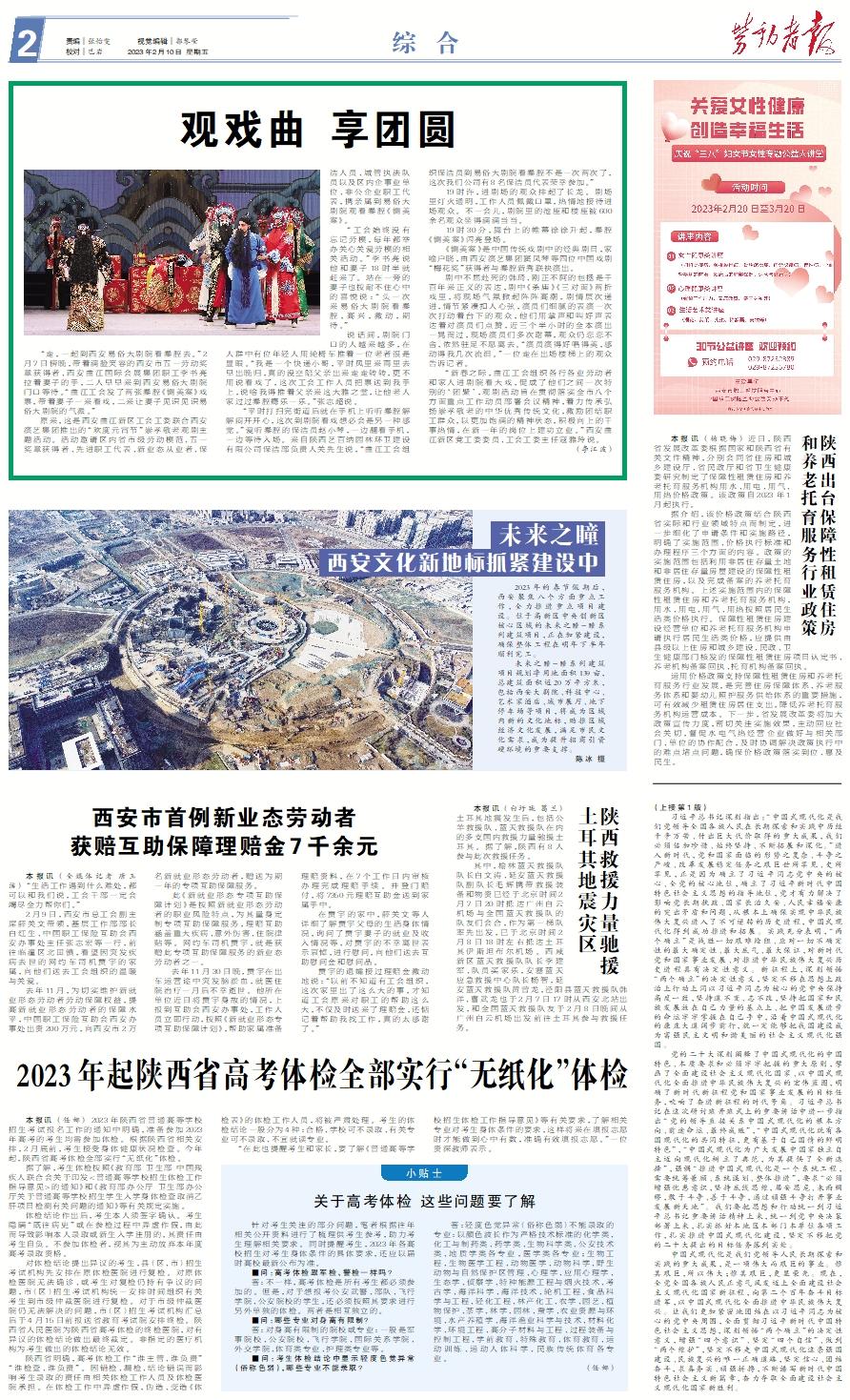“走,一起到西安易俗大剧院看秦腔去。”2月7日傍晚,带着满脸笑容的西安市五一劳动奖章获得者、西安曲江国际会展集团职工李书亮拉着妻子的手,二人早早来到西安易俗大剧院门口等待。“曲江工会发了两张秦腔《铡美案》戏票,带着妻子一来看戏,二来让妻子见识见识易俗大剧院的气派。” 原来,这是西安曲江新区工会工委联合西安演艺集团推出的“欢度元宵节”崇孝敬老观剧主题活动。活动邀请区内省市级劳动模范、五一奖章获得者、先进职工代表、新业态从业者、保洁人员、城管执法队员以及区内企事业单位、非公企业职工代表,携亲属到易俗大剧院观看秦腔《铡美案》。 “工会始终没有忘记劳模,每年都举办关心关爱劳模的相关活动。”李书亮说他和妻子18时半就赶来了。站在一旁的妻子也按耐不住心中的喜悦说:“头一次来易俗大剧院看秦腔,高兴,激动,期待。” 说话间,剧院门口的人越来越多,在人群中有位年轻人用轮椅车推着一位老者很是显眼。“我是一个快递小哥,平时风里来雨里去早出晚归,真的没空陪父亲出来走走转转,更不用说看戏了,这次工会工作人员把票送到我手上,说啥我得推着父亲来这大雅之堂,让他老人家过过秦腔瘾乐一乐。”张志超说。 “平时打扫完街道后就在手机上听听秦腔解解闷开开心,这次到剧院看戏想必会是另一种感觉。”爱听秦腔的保洁员赵小琴,一边翻看手机,一边等待入场。来自陕西艺百纳园林环卫建设有限公司保洁部负责人关先生说,“曲江工会组织保洁员到易俗大剧院看秦腔不是一次两次了,这次我们公司有8名保洁员代表荣幸参加。” 19时许,进剧场的观众排起了长龙。剧场里灯火通明,工作人员佩戴口罩,热情地接待进场观众。不一会儿,剧院里的池座和楼座被600余名观众坐得满满当当。 19时30分,舞台上的帷幕徐徐升起,秦腔《铡美案》闪亮登场。 《铡美案》是中国传统戏剧中的经典剧目,家喻户晓,由西安演艺集团窦凤琴等四位中国戏剧“梅花奖”获得者与秦腔新秀联袂演出。 剧中不屈赴死的韩琦、刚正不阿的包拯是千百年来正义的表达,剧中《杀庙》《三对面》两折戏里,将现场气氛掀起阵阵高潮,剧情层次递进,情节紧凑扣人心弦,演员们细腻的表演一次次打动着台下的观众,他们用掌声和叫好声表达着对演员们点赞,近三个半小时的全本演出一晃而过,现场演员们多次谢幕,观众仍恋恋不舍,依然驻足不愿离去。“演员演得好唱得美,感动得我几次流泪。”一位走在出场楼梯上的观众告诉记者。 “新春之际,曲江工会组织各行各业劳动者和家人进剧院看大戏,促成了他们之间一次特别的‘团聚’,观剧活动旨在贯彻落实全市八个方面重点工作动员部署会议精神,着力传承弘扬崇孝敬老的中华优秀传统文化,激励团结职工群众,以更加饱满的精神状态,积极向上的干事热情,在新一年的岗位上建功立业。”西安曲江新区党工委委员、工会工委主任寇雅玲说。(李江波)