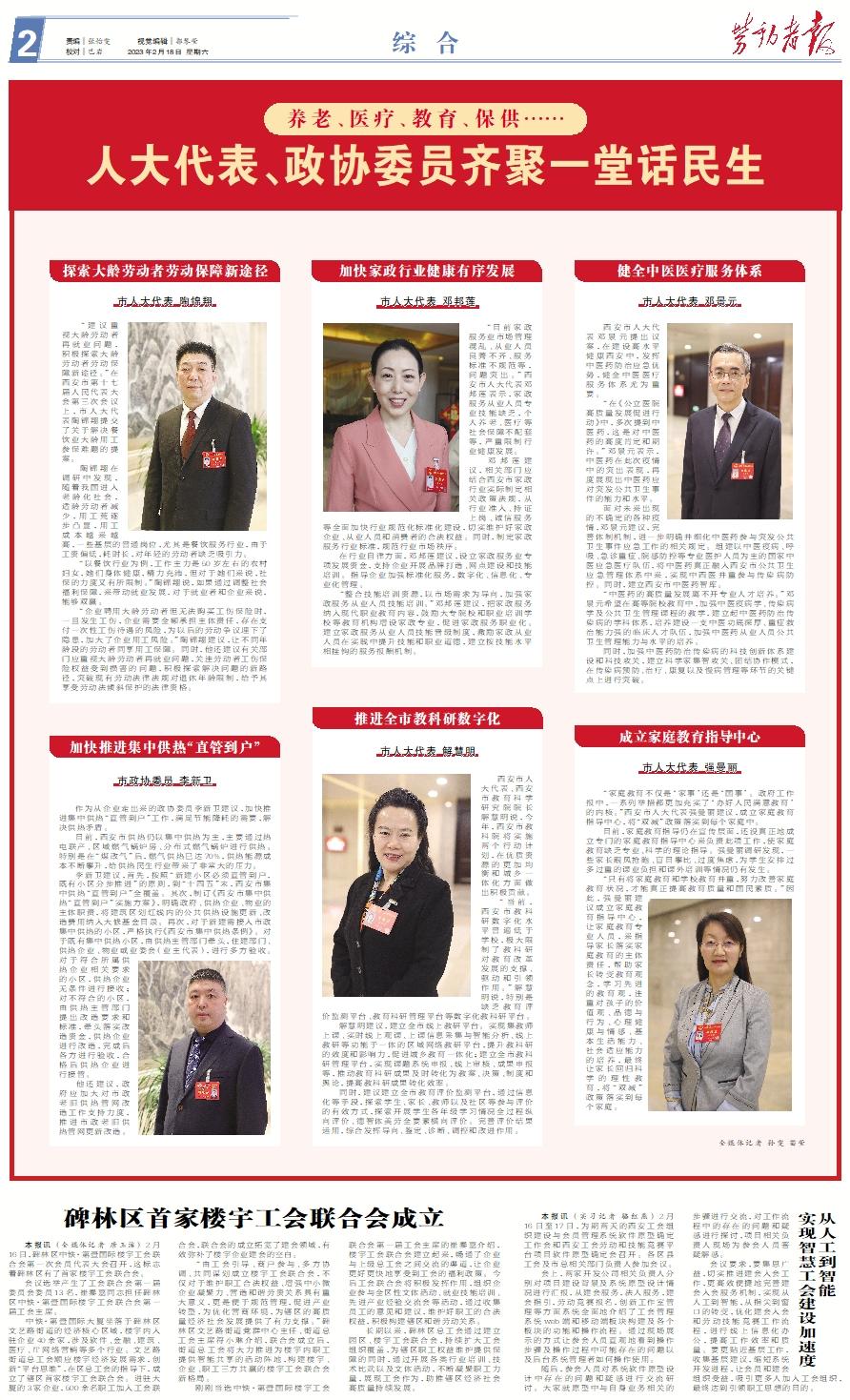 探索大龄劳动者劳动保障新途径市人大代表 陶锦翔 “建议重视大龄劳动者再就业问题,积极探索大龄劳动者劳动保障新途径。”在西安市第十七届人民代表大会第三次会议上,市人大代表陶锦翔提交了关于解决餐饮业大龄用工参保难题的提案。 陶锦翔在调研中发现,随着我国进入老龄化社会,适龄劳动者减少,用工荒逐步凸显,用工成本越来越高,一些基层的普通岗位,尤其是餐饮服务行业,由于工资偏低,耗时长,对年轻的劳动者缺乏吸引力。 “以餐饮行业为例,工作主力是50岁左右的农村妇女,她们身体健康,精力充沛,但对于她们来说,社保的力度又有所限制。”陶锦翔说,如果通过调整社会福利保障,来带动就业发展,对于就业者和企业来说,能够双赢。 “企业聘用大龄劳动者但无法购买工伤保险时,一旦发生工伤,企业需要全额承担主体责任,存在支付一次性工伤待遇的风险,为以后的劳动争议埋下了隐患,加大了企业用工风险。”陶锦翔建议,让不同年龄段的劳动者同享用工保障。同时,他还建议有关部门应重视大龄劳动者再就业问题,关注劳动者工伤保险权益受到损害的问题,积极探索解决问题的新路径,突破现有劳动法律法规对退休年龄限制,给予其享受劳动法倾斜保护的法律资格。加快家政行业健康有序发展市人大代表 邓邦莲 “目前家政服务业市场管理混乱、从业人员良莠不齐、服务标准不规范等,问题突出。”西安市人大代表邓邦莲表示,家政服务从业人员专业技能缺乏,个人养老、医疗等社会保障不配套等,严重限制行业健康发展。 邓邦莲建议,相关部门应结合西安市家政行业实际制定相关政策法规,从行业准入、持证上岗、诚信服务等全面加快行业规范化标准化建设,切实维护好家政企业、从业人员和消费者的合法权益。同时,制定家政服务行业标准,规范行业市场秩序。 在行业自律方面,邓邦莲建议,设立家政服务业专项发展资金,支持企业开展品牌打造、网点建设和技能培训。指导企业加强标准化服务,数字化、信息化、专业化管理。 “整合技能培训资源,以市场需求为导向,加强家政服务从业人员技能培训。”邓邦莲建议,把家政服务纳入现代职业教育内容,鼓励大专院校和职业培训学校等教育机构增设家政专业,促进家政服务职业化。建立家政服务从业人员技能晋级制度,激励家政从业人员在实践中提升技能和职业道德,建立按技能水平相挂钩的服务报酬机制。健全中医医疗服务体系市人大代表 邓景元 西安市人大代表邓景元提出议案,在建设高水平健康西安中,发挥中医药防治应急优势,健全中医医疗服务体系尤为重要。 “在《公立医院高质量发展促进行动》中,多次提到中医药,这是对中医药的高度肯定和期许。”邓景元表示,中医药在此次疫情中的突出表现,再度展现出中医药应对突发公共卫生事件的能力和水平。 面对未来出现的不确定的各种疫情,邓景元建议,完善体制机制,进一步明确并细化中医药参与突发公共卫生事件应急工作的相关规定。组建以中医疫病、呼吸、急诊重症、院感防控等专业医护人员为主的国家中医应急医疗队伍,将中医药真正融入西安市公共卫生应急管理体系中来,实现中西医并重参与传染病防控。同时,建立西安市中医药智库。 “中医药的高质量发展离不开专业人才培养。”邓景元希望在高等院校教育中,加强中医疫病学、传染病学及公共卫生管理课程的教学,建立起中医药防治传染病的学科体系,培养建设一支中医功底深厚、重症救治能力强的临床人才队伍,加强中医药从业人员公共卫生管理能力与水平的培养。 同时,加强中医药防治传染病的科技创新体系建设和科技攻关,建立科学家集智攻关、团结协作模式,在传染病预防、治疗、康复以及慢病管理等环节的关键点上进行突破。加快推进集中供热“直管到户”市政协委员 李新卫 作为从企业走出来的政协委员李新卫建议,加快推进集中供热“直管到户”工作,满足节能降耗的需要,解决供热矛盾。 目前,西安市供热仍以集中供热为主,主要通过热电联产、区域燃气锅炉房、分布式燃气锅炉进行供热。特别是在“煤改气”后,燃气供热已达70%,供热能源成本不断攀升,给供热民生行业带来了非常大的压力。 李新卫建议,首先,按照“新建小区必须直管到户,既有小区分步推进”的原则,到“十四五”末,西安市集中供热“直管到户”全覆盖。其次,制订《西安市集中供热“直管到户”实施方案》,明确政府、供热企业、物业的主体职责,将建筑区划红线内的公共供热设施更新、改造费用纳入大修基金目录。再次,对于新建需接入市政集中供热的小区,严格执行《西安市集中供热条例》。对于既有集中供热小区,由供热主管部门牵头,住建部门、供热企业、物业或业委会(业主代表),进行多方验收。对于符合所属供热企业相关要求的小区,供热企业无条件进行接收;对不符合的小区,由供热主管部门提出改造要求和标准,牵头落实改造资金,供热企业进行改造,完成后各方进行验收,合格后供热企业进行接管。 他还建议,政府应加大对市政老旧供热管网改造工作支持力度,推进市政老旧供热管网更新改造。推进全市教科研数字化市人大代表 解慧明 西安市人大代表、西安市教育科学研究院院长解慧明说,今年,西安市教科院将实施两个行动计划,在优质资源的更加均衡和城