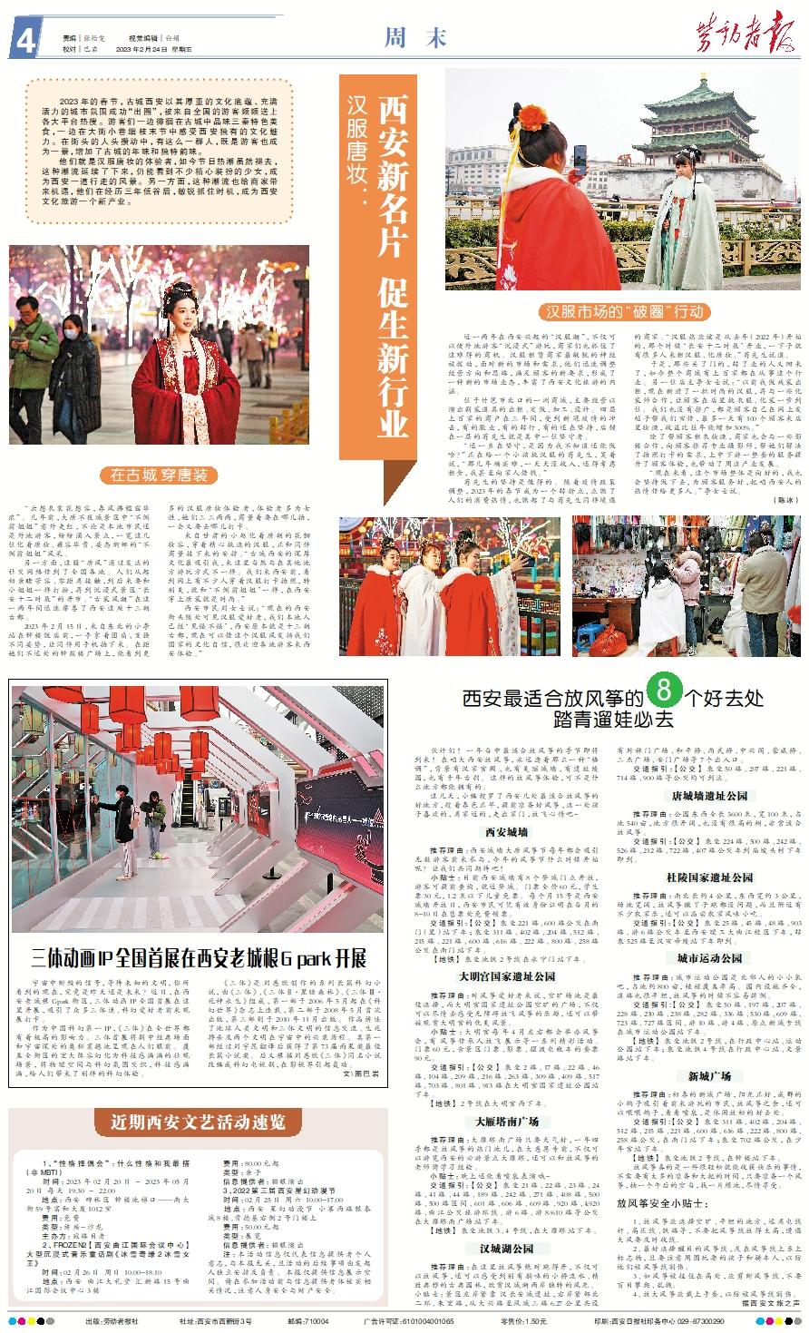 2023年的春节,古城西安以其厚重的文化底蕴、充满活力的城市氛围成功“出圈”,被来自全国的游客频频送上各大平台热搜。游客们一边徘徊在古城中品味三秦特色美食,一边在大街小巷细枝末节中感受西安独有的文化魅力。在街头的人头攒动中,有这么一群人,既是游客也成为一景,增加了古城的年味和独特韵味。 他们就是汉服唐妆的体验者,如今节日热潮虽然褪去,这种潮流延续了下来,仍能看到不少精心装扮的少女,成为西安一道行走的风景。另一方面,这种潮流也给商家带来机遇,他们在经历三年低谷后,敏锐抓住时机,成为西安文化旅游一个新产业。在古城 穿唐装 “云想衣裳花想容,春风拂槛露华浓”。几年前,大唐不夜城景区中“不倒翁姐姐”意外走红,不论是本地市民还是外地游客,纷纷涌入景点,一览这几位化着唐妆、雍容华贵、姿态婀娜的“不倒翁姐姐”风采。 另一方面,这股“唐风”通过发达的社交网络传到了全国各地。人们从起初亲睹芳容、零距离接触,到后来要和小姐姐一样打扮,再到沉浸式景区“长安十二时辰”的开市。“古装风潮”在这一两年间迅速席卷了西安这座十三朝古都。 2023年2月15日,来自东北的小李站在钟楼饭店前,一手拿着团扇,变换不同姿势,让同伴用手机拍下来。在距她们不远处的钟鼓楼广场上,能看到更多的汉服唐妆体验者,体验者多为女性,她们三三两两,商量着要在哪儿拍,一会又要去哪儿打卡。 来自甘肃的小赵化着唐朝的花钿妆容,穿着精心挑选的汉服,正和同伴商量接下来的安排。“古城西安的深厚文化最吸引我,来这里当然与在其他地方游玩方式不一样。我们来西安前,看到网上有不少人穿着汉服打卡拍照,特别美,就和‘不倒翁姐姐’一样,在西安穿上唐装就是时尚。” 西安市民刘女士说:“现在的西安街头随处可见汉服爱好者,我们本地人已经‘见怪不怪’,西安原本就是十三朝古都,现在可以借这个汉服风发扬我们国家的文化自信,很欢迎各地游客来西安体验。”汉服市场的“破圈”行动 近一两年在西安兴起的“汉服潮”,不仅可以使外地游客“沉浸式”游玩,商家们也抓住了这难得的商机。汉服租赁商家最敏锐的神经被拨动,面对新的市场和需求,他们迅速调整经营方向和思路,满足顾客的新要求,形成了一种新的市场业态,丰富了西安文化旅游的内涵。 位于竹笆市北口的一洲商城,主要经营以演出剧装道具的出租、定做、加工、设计。四层上百家的商户在三年间,受到新冠疫情的冲击,有的歇业,有的转行,有的还在坚持,店铺在一层的苟先生就是其中一位坚守者。 “还一直在坚守,是因为我不知道还能做啥?”正在给一个小孩挑汉服的苟先生,笑着说,“那几年确实难,一天天没收入,还得考虑租金,我甚至向家人借钱。” 苟先生的坚持是值得的。随着疫情政策调整,2023年的春节成为一个转折点,点燃了人们的消费热情,也燃起了与苟先生同样境遇的商家。“汉服热应该是从去年(2022年)开始的,那个时候‘长安十二时辰’开业,一下子就有很多人来租汉服、化唐妆。”苟先生说道。 于是,那些关了门的,转了业的人又回来了,如今整个商城有上百家都在从事这个行业。另一位店主李女士说:“以前我做戏装出租,现在新进了一批时尚的汉服,再与一些化装师合作,让顾客在店里挑衣服、化装一步到位。我们也没有推广,都是顾客自己在网上发帖子帮我们宣传,最多一天有100个顾客来店里妆造,收益比往年能增加300%。” 除了帮顾客租衣妆造,商家也会与一些影楼合作,向顾客推荐专业摄影师,帮她们解决了拍照打卡的需求,上中下游一整套的服务提升了顾客体验,也带动了周边产业发展。 “现在来看,这个市场整体是向好的,我也会坚持做下去,为顾客服务好,把咱西安人的热情传给更多人。”李女士说。 (陈冰)