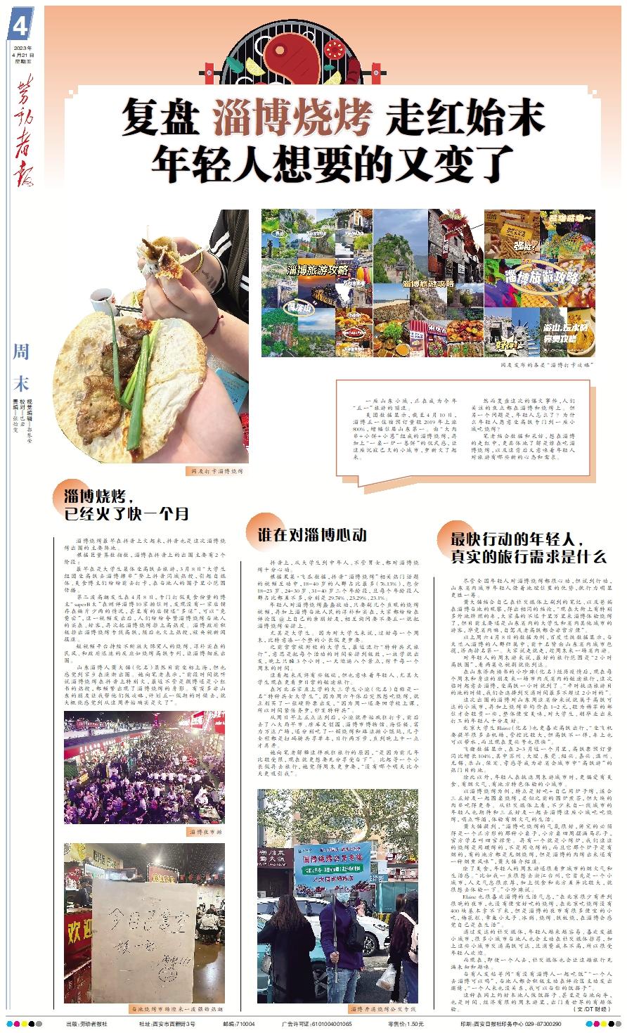 一座山东小城,正在成为今年“五一”旅游的顶流。 美团数据显示,截至4月10日,淄博五一住宿预订量较2019年上涨800%,增幅位居山东第一。由“大肉串+小饼+小葱”组成的淄博烧烤,再加上“一桌一炉一卷饼”的仪式感,让这座沉寂已久的小城市,重新火了起来。 然而复盘这次的爆火事件,人们关注的焦点都在淄博和烧烤上。但另一个问题是,年轻人怎么了?为什么年轻人愿意坐高铁专门到一座小城吃烧烤? 笔者结合数据和采访,想在淄博的走红中,更具体地了解是谁在吃淄博烧烤,以及这背后又意味着年轻人对旅游有哪些新的心态和需求。淄博烧烤,已经火了快一个月 淄博烧烤最早在抖音上火起来,抖音也是这次淄博烧烤出圈的主要阵地。 根据巨量算数指数,淄博在抖音上的出圈主要有2个阶段: 最早在是大学生集体坐高铁去旅游,3月8日“大学生组团坐高铁去淄博撸串”登上抖音同城热搜,引起自媒体、美食博主们纷纷前去打卡,在当地人的圈子里小范围传播。 第二波高潮发生在4月8日,专门打假美食份量的博主“superB太”在测评淄博10家摊位时,发现没有一家店铺存在缺斤少两的情况,甚至有的店铺还“多送”,可以“免费尝”,这一视频发出后,人们纷纷夸赞淄博烧烤当地人的实在、好客,再次把淄博烧烤推上高热度。淄博政府积极推出淄博烧烤专线高铁,随后也火上热搜,被央视新闻报道。 短视频平台持续不断放大馋哭人的烧烤、淳朴实在的民风、和政府迅速的反应如烧烤高铁专列,让淄博彻底出圈。 山东淄博人萧大锤(化名)虽然目前坐标上海,但也感觉到家乡在逐渐出圈。她向笔者表示,“前段时间就听说淄博烧烤在抖音上特别火,最近不管是微博还是小红书的热搜,都频繁出现了淄博烧烤的身影。有蛮多非山东的朋友让我帮他们做攻略,计划五一假期的时候去,就大概能感觉到从这周开始确实是火了”。谁在对淄博心动 抖音上,从大学生到中年人、不管男女,都对淄博烧烤十分心动。 根据果集·飞瓜数据,抖音“淄博烧烤”相关热门话题的视频互动中,18-40岁的人群占比最多(76.13%),包含18-23岁、24-30岁、31-40岁三个年龄段,且每个年龄段人群占比都差不多,分别是29.74%、23.29%、23.1%。 年轻人对淄博烧烤蠢蠢欲动,只要刷几个直观的烧烤视频,再加上淄博当地人民的淳朴和实在,大家都纷纷在评论区 @上自己的亲朋好友,相互询问要不要五一就把淄博烧烤安排上。 尤其是大学生。因为对大学生来说,过好每一个周末,比特意凑一个整的小长假更重要。 之前常常被封校的大学生,最近流行“特种兵式旅行”,意思是把每个活动的时间安排到极致,一放学就出发,晚上只睡3个小时,一天逛遍八个景点,榨干每一个周末的时间。 这看起来或许有些极端,但也意味着年轻人、尤其大学生现在更看重日常的短途旅行。 在河北石家庄上学的大三学生小迪(化名)自称是一名“特种兵女大学生”,因为周六午休后突然想吃烧烤,就立刻买了一张硬卧票出发,“因为周一还要回学校上课,所以时间紧任务重,秒变特种兵”。 从周日早上五点达到后,小迪就开始疯狂打卡,前后去了八大局早市、唐库文创园、淄博市博物馆、海岱楼、富力万达广场,还分别吃了一顿烧烤和路边摊小馄炖,几乎全程都是扫码骑共享单车,日行两万步,直到晚上十一点才离开。 她向笔者解释这样疯狂旅行的原因,“是因为前几年比较受限,现在就更想要充分享受当下”。比起等一个小长假再去旅行,她觉得周末更重要,“没有哪个明天比今天更吸引我”。最快行动的年轻人,真实的旅行需求是什么 尽管全国年轻人对淄博烧烤都很心动,但说到行动,山东省内城市年轻人借着地理位置的优势,执行力明显更胜一筹。 萧大锤结合自己在社交媒体上刷到的笔记、以及爸妈在淄博当地的观察,得出相同的结论,“现在大街上有特别多外地牌照的车,大家真的不远千里万里来淄博体验烧烤了,但目前主要还是山东省内的大学生和省内其他城市的游客,毕竟省内嘛,自驾或者高铁都会非常方便”。 以上周六4月8日的数据为例,百度迁徙数据显示,当天迁入淄博的人群归属中,前十名皆由山东省内城市包揽,济南排名第一。大家说走就走,趁周末来一场省内游。 对年轻人的周末游来说,最好的旅行范围是“2小时高铁圈”,看两集电视剧就能到达。 在山东济南读书的小珍珠(化名)经历疫情后,现在每个周末和身边的朋友来一场市内或省内的短途旅行,这次临时起意去淄博,坐高铁一小时就到了。“平时挑选旅游目的地的时候,我们会选择到交通时间最多不超过2小时的”。 这次出圈的淄博对山东周边省份来说就属于高铁可达的小城市,再加上烧烤串均价在1-2元,较为稀罕的部位才会较贵一些,整体便宜美味,对大学生、刚毕业出来打工的年轻人十分友好。 北京大学生Elaine(化名)也更喜欢高铁出行,“坐飞机要提早很多去机场,管控比较大,但高铁不一样,车上也可以带水,而且现在复兴号也很快”。 飞猪数据显示,在2-3月近一个月里,高铁票预订量同比增长104%,其中苏州、大理、东莞、绍兴、嘉兴、温州、无锡、乐山、保定、孝感等成为非省会城市中“高铁游”的热门目的地。 除此以外,年轻人在挑选周末游城市时,更偏爱有美食、有烟火气、有地方特色体验的小城市。 以淄博烧烤为例,特点是好吃+自己用炉子烤,适合三五好友一起围桌烧烤,类似之