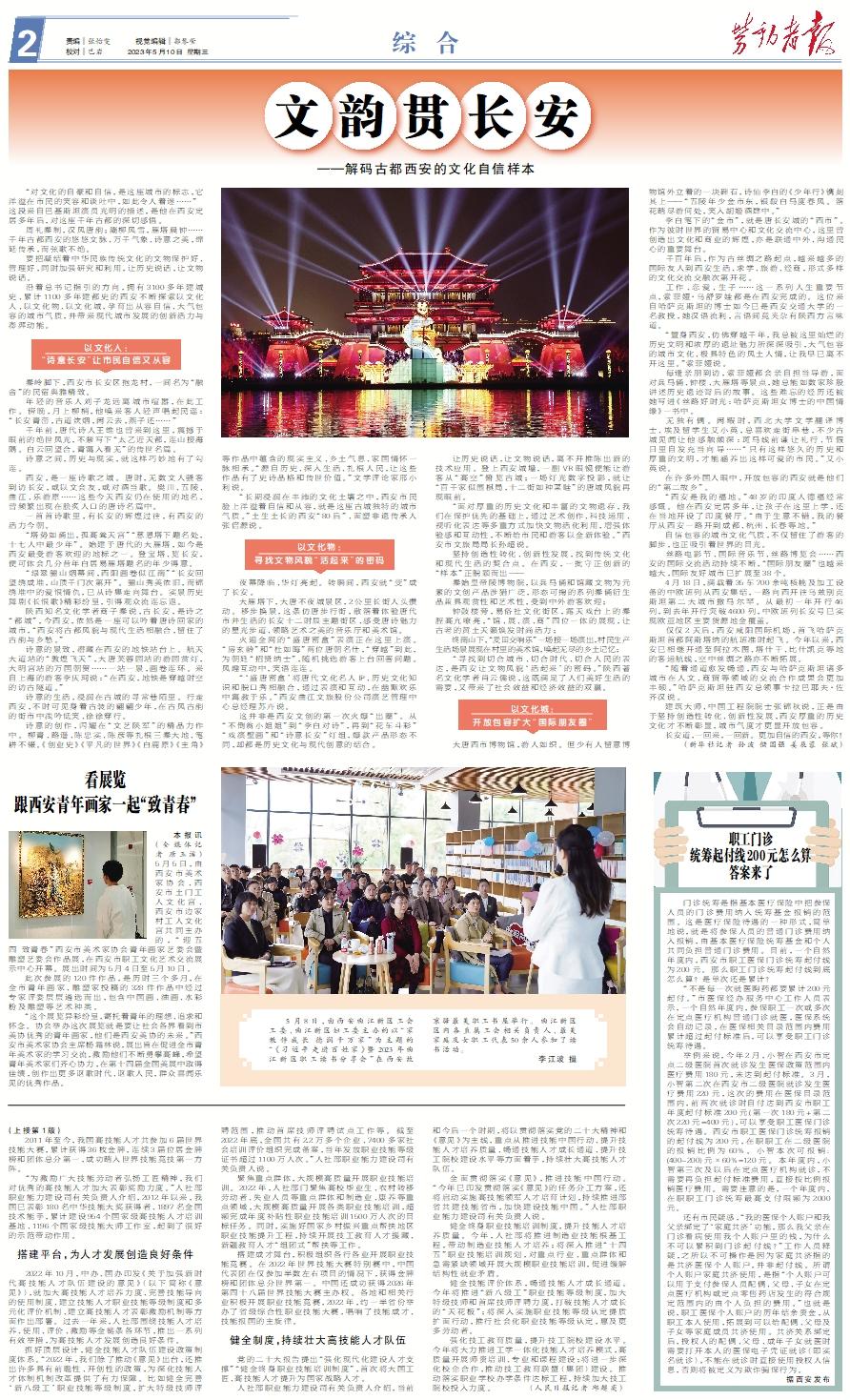 “对文化的自豪和自信,是这座城市的标志,它洋溢在市民的笑容和谈吐中,如此令人着迷……”这段来自巴基斯坦演员光明的描述,是他在西安定居多年后,对这座千年古都的深切感悟。 周礼秦制,汉风唐韵;灞柳风雪,雁塔晨钟……千年古都西安的悠悠文脉、万千气象、诗意之美,绵延传承,而弦歌不绝。 要把凝结着中华民族传统文化的文物保护好、管理好,同时加强研究和利用,让历史说话,让文物说话。 沿着总书记指引的方向,拥有3100多年建城史、累计1100多年建都史的西安不断探索以文化人、以文化物、以文化城,孕育出从容自信、大气包容的城市气质,并带来现代城市发展的创新活力与澎湃动能。以文化人:“诗意长安”让市民自信又从容 秦岭脚下,西安市长安区抱龙村,一间名为“融舍”的民宿典雅精致。 年轻的音乐人刘子龙远离城市喧嚣,在此工作。傍晚,月上柳梢,他唤来客人轻声唱起民谣:“长安青峦,古道炊烟,闲云去,燕子还……” 千年前,唐代诗人王维也曾来到这里,震撼于眼前的绝世风光,不禁写下“太乙近天都,连山接海隅。白云回望合,青霭入看无”的传世名篇。 诗意之间,历史与现实,就这样巧妙地有了勾连。 西安,是一座诗歌之城。唐时,无数文人骚客到访长安,或以文会友,或对酒当歌。樊川、五陵、曲江、乐游原……这些今天西安仍在使用的地名,曾频繁出现在脍炙人口的唐诗名篇中。 一首首诗歌里,有长安的辉煌过往,有西安的活力今朝。 “塔势如涌出,孤高耸天宫”“慈恩塔下题名处,十七人中最少年”。始建于唐代的大雁塔,如今是西安最受游客欢迎的地标之一。登宝塔、览长安,便可体会几分昔年白居易雁塔题名的年少得意。 “绿翠骊山烟幕间,西阳画卷似江南”“长安回望绣成堆,山顶千门次第开”。骊山秀美依旧,而锦绣堆中的爱恨情仇,已从诗集走向舞台。实景历史舞剧《长恨歌》精彩纷呈,引得观众流连忘返。 陕西知名文化学者商子秦说,古长安,是诗之“都城”,今西安,依然是一座可以吟着唐诗回家的城市,“西安将古都风貌与现代生活相融合,留住了古韵与乡愁。” 诗意的景致,潜藏在西安的地铁站台上。航天大道站的“敦煌飞天”,大唐芙蓉园站的游园赏灯,大明宫站的万国朝贺……一站一景,画卷连环。来自上海的游客李庆珂说:“在西安,地铁是穿越时空的访古隧道。” 诗意的生活,浸润在古城的寻常巷陌里。行走西安,不时可见身着古装的翩翩少年,在古风古韵的街市中浅吟低笑、徐徐穿行。 诗意的创作,闪耀在“文艺陕军”的精品力作中。柳青、路遥、陈忠实、陈彦等扎根三秦大地、笔耕不辍。《创业史》《平凡的世界》《白鹿原》《主角》等作品中蕴含的现实主义、乡土气息、家国情怀一脉相承。“源自历史、深入生活、扎根人民,让这些作品有了史诗品格和传世价值。”文学评论家邢小利说。 “长期浸润在丰沛的文化土壤之中,西安市民脸上洋溢着自信和从容,就是这座古城独特的城市气质。”土生土长的西安“80后”、面塑非遗传承人张倍源说。以文化物:寻找文物风貌“活起来”的密码 夜幕降临、华灯亮起。转瞬间,西安就“变”成了长安。 大雁塔下,大唐不夜城景区,2公里长街人头攒动。移步换景,这条仿唐步行街,散落着体验唐代市井生活的长安十二时辰主题街区、感受唐诗魅力的星光步道、领略艺术之美的音乐厅和美术馆。 火遍全网的“盛唐密盒”表演正在这里上演。“房玄龄”和“杜如晦”两位唐朝名仕,“穿越”到此,为朝廷“招贤纳士”,随机挑选游客上台回答问题。风趣互动中,笑语连连。 “‘盛唐密盒’将唐代文化名人IP、历史文化知识和脱口秀相融合,通过表演和互动,在幽默欢乐中寓教于乐。”西安曲江文旅股份公司演艺管理中心总经理苏卉说。 这并非是西安文创的第一次火爆“出圈”。从“不倒翁小姐姐”到“李白对诗”,再到“花车斗彩”“戏演壁画”和“诗意长安”灯组,爆款产品形态不同,却都是历史文化与现代创意的结合。 让历史说话,让文物说话,离不开推陈出新的技术应用。登上西安城墙,一副VR眼镜便能让游客从“高空”俯览古城;一场灯光数字投影,就让“百千家似围棋局,十二街如种菜畦”的唐城风貌再现眼前。 “面对厚重的历史文化和丰富的文物遗存,我们在保护优先的基础上,通过艺术创作、科技运用、视听化表达等多重方式加快文物活化利用,增强体验感和互动性,不断给市民和游客以全新体验。”西安市文旅局局长孙超说。 坚持创造性转化、创新性发展,找到传统文化和现代生活的契合点。在西安,一批守正创新的“样本”正脱颖而出—— 秦始皇帝陵博物院,以兵马俑和馆藏文物为元素的文创产品涉猎广泛,形态可掬的系列秦俑衍生品兼具观赏性和艺术性,受到中外游客欢迎; 钟鼓楼旁,易俗社文化街区,露天戏台上的秦腔高亢嘹亮,“馆、展、演、商”四位一体的展现,让古老的黄土天籁焕发时尚活力; 终南山下,“麦田交响乐”一场接一场演出,村民生产生活场景展现在村里的美术馆,唤起无尽的乡土记忆; “寻找到切合城市、切合时代、切合人民的表达,是西安让文物风貌‘活起来’的密码。”陕西著名文化学者肖云儒说,这既满足了人们美好生活的需要,又带来了社会效益和经济效益的双赢。以文化城:开放包容扩大“国际朋友圈” 大唐西市博物